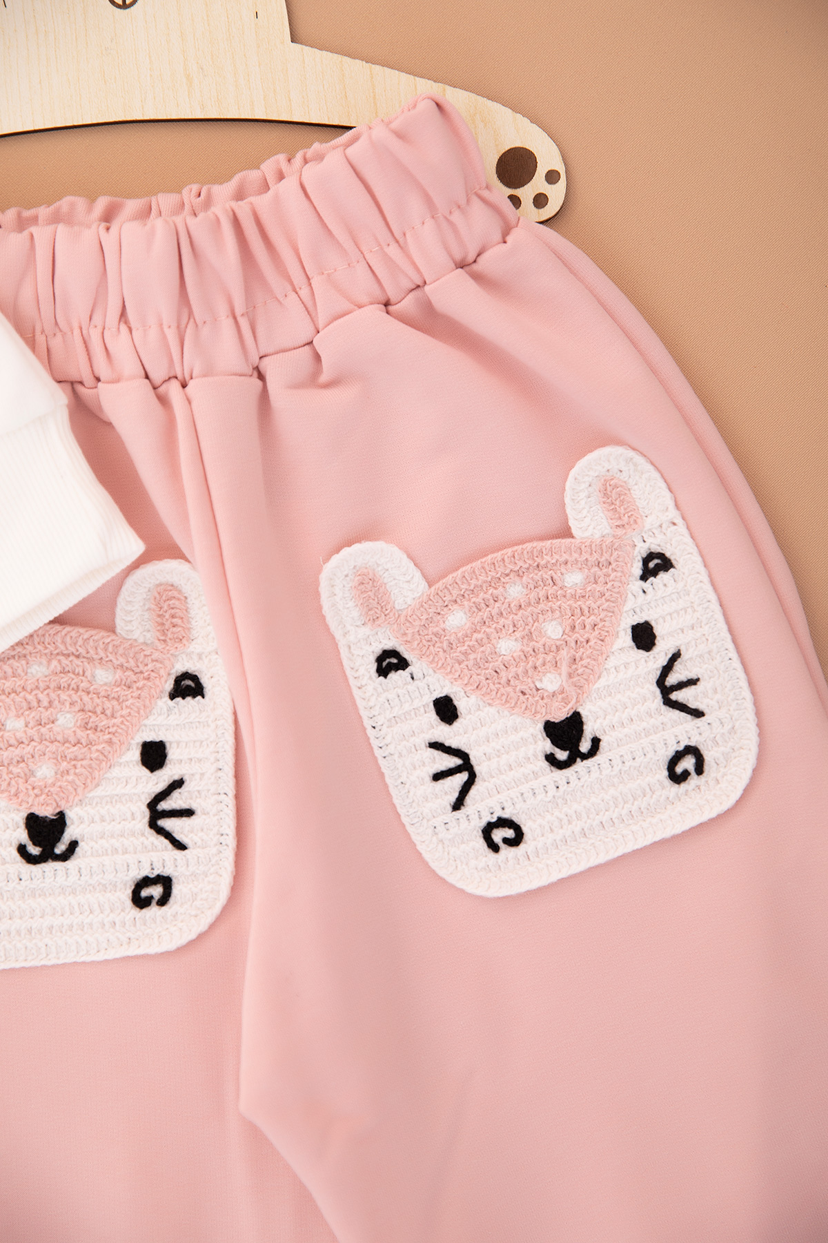 Kız Çocuk Süzene Kedi Nakışlı Cepli Takım - 11611 (5-9 Yaş)