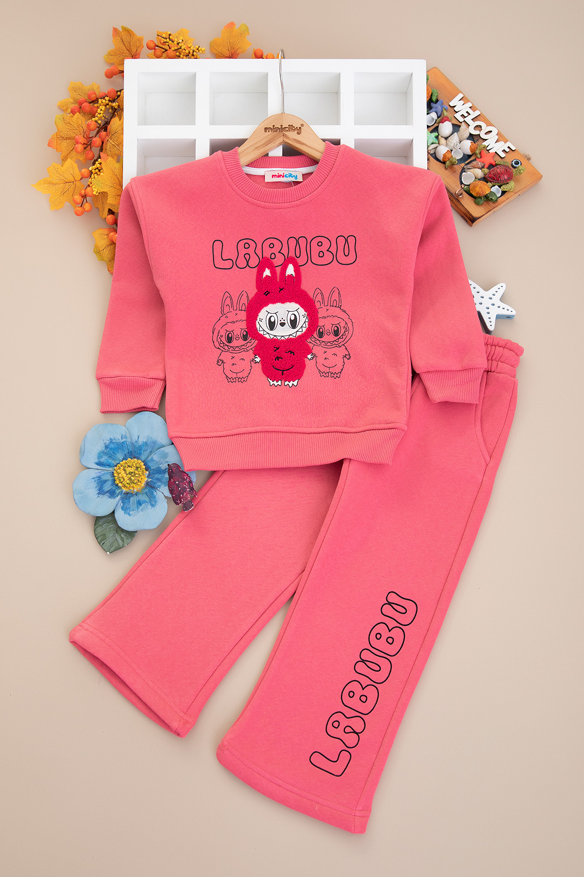Kız Çocuk Süzene Labubu Nakışlı Takım - 5039 (3-10 Yaş)
