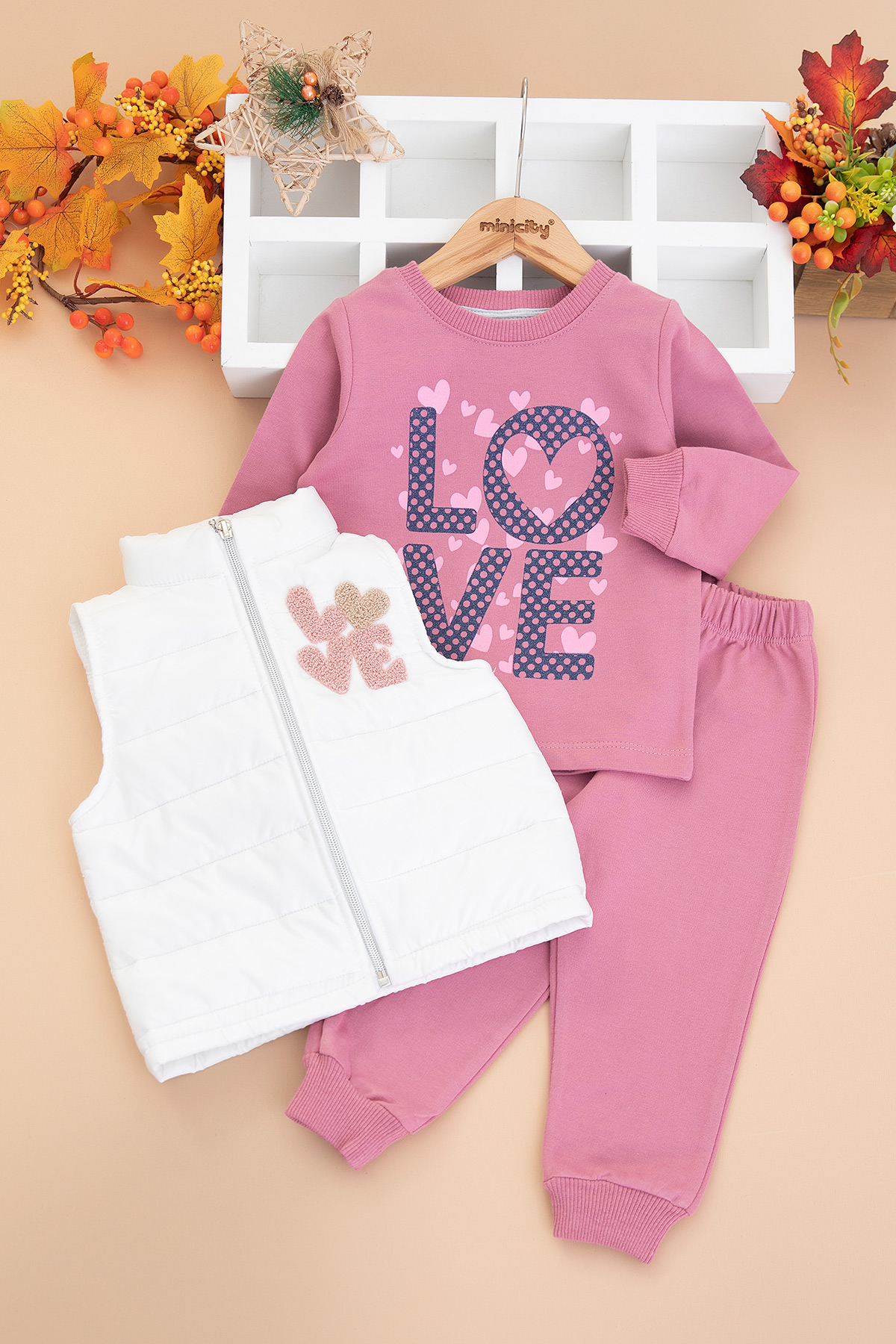 Kız Çocuk Süzene Love Nakışlı Yelekli Takım - 334 (1-4 Yaş)