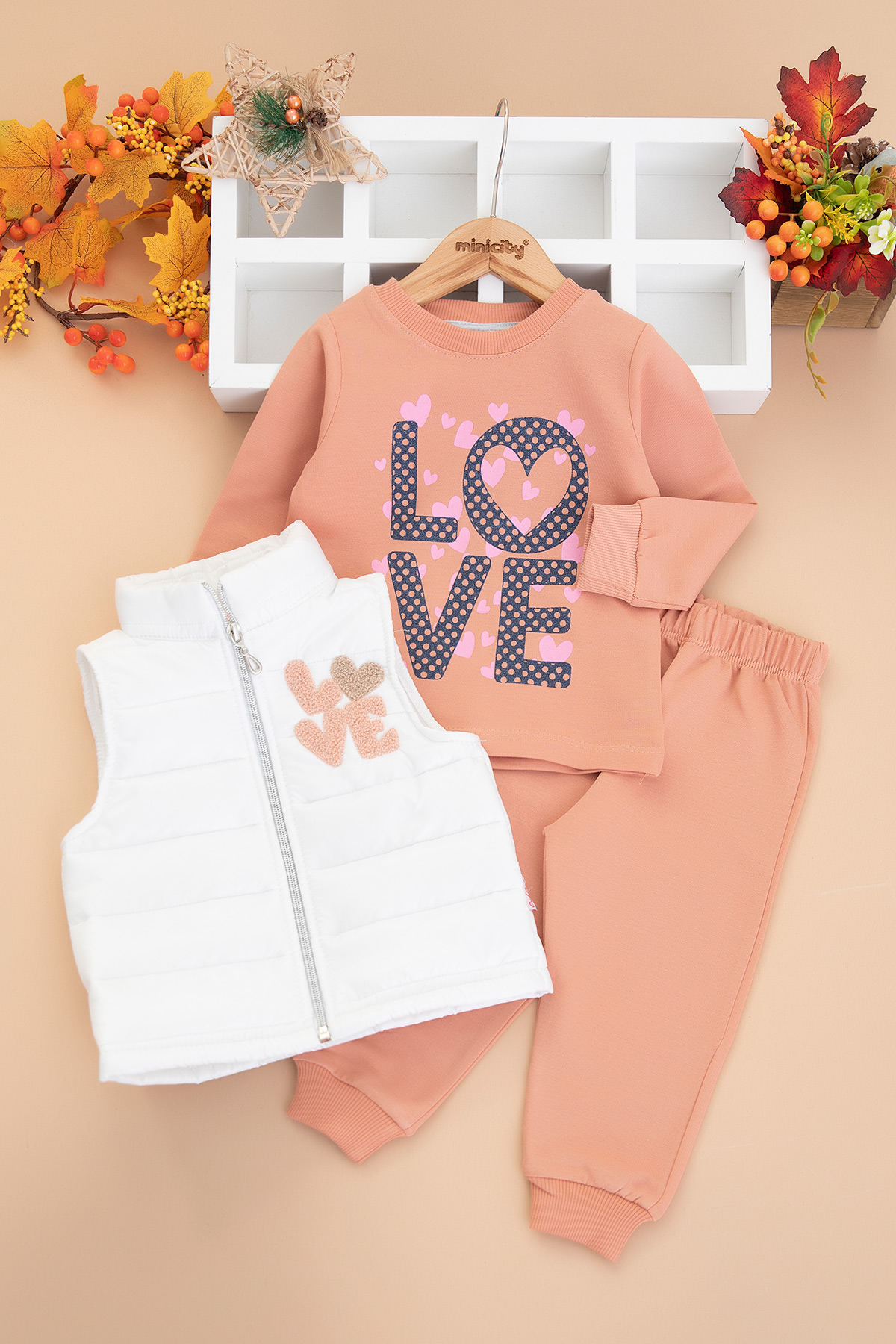 Kız Çocuk Süzene Love Nakışlı Yelekli Takım - 334 (1-4 Yaş)