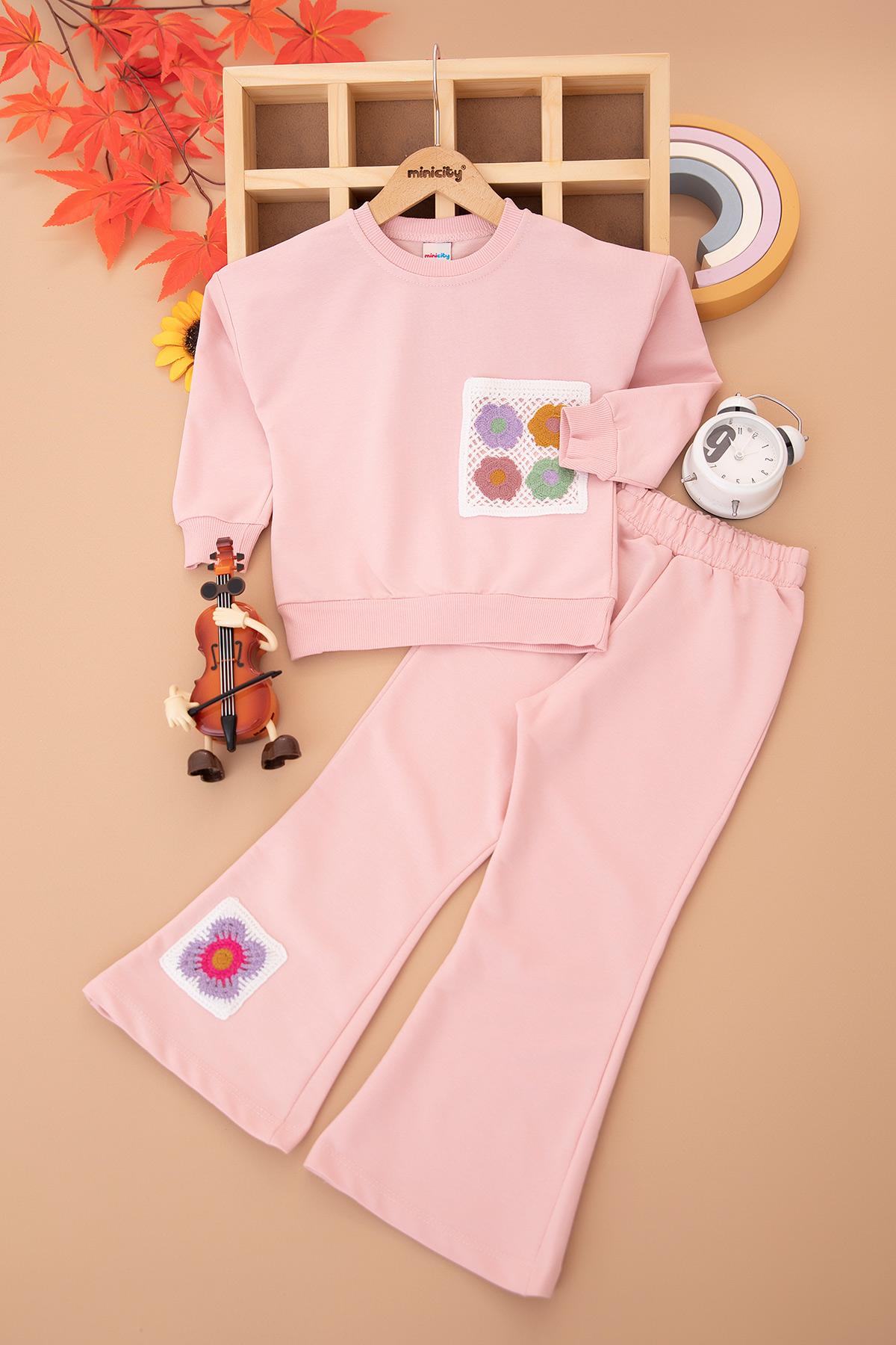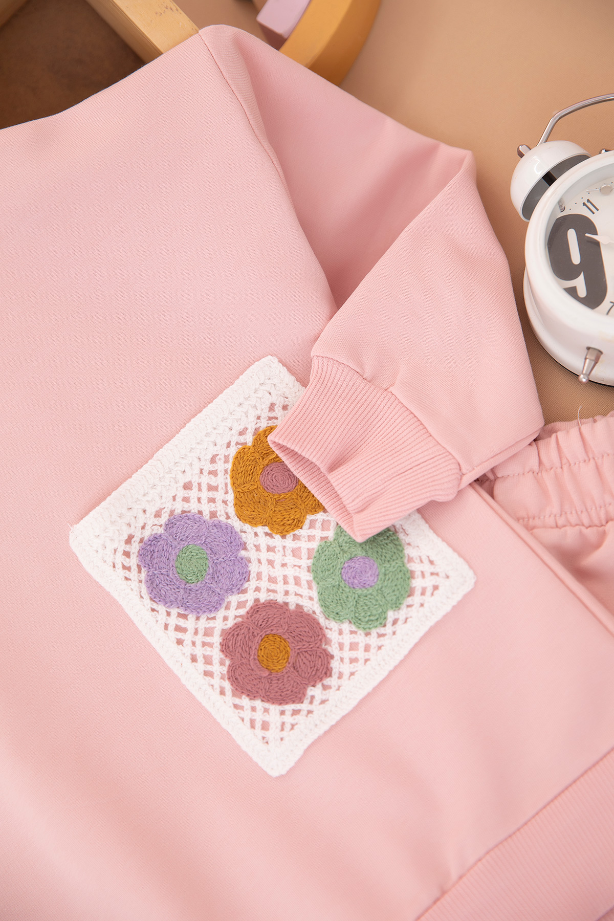 Kız Çocuk Süzene Nakışlı Cepli Takım - 11572 (5-9 Yaş)
