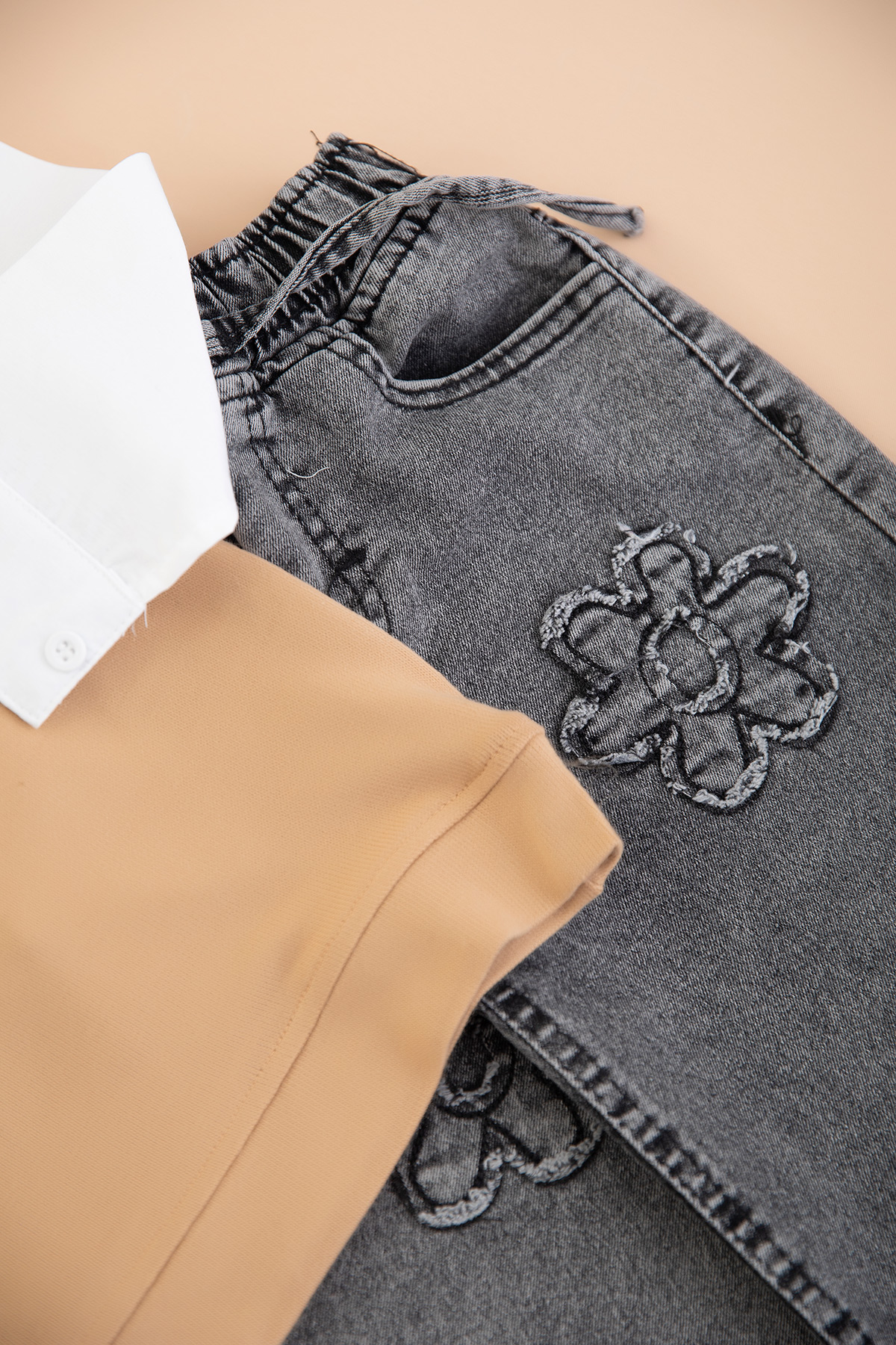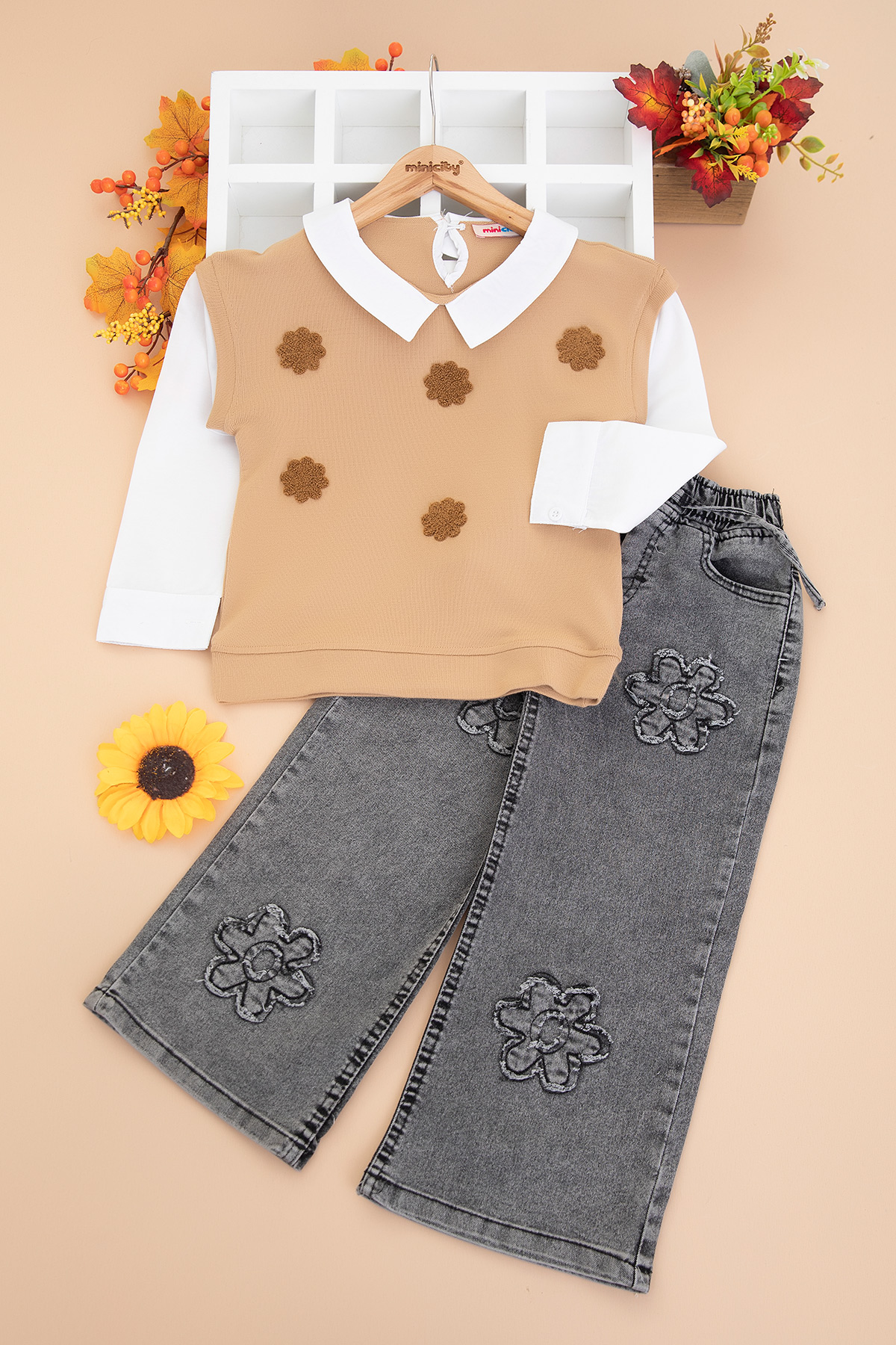 Kız Çocuk Süzene Papatya Nakışlı Takım - 70340 (5-12 Yaş)
