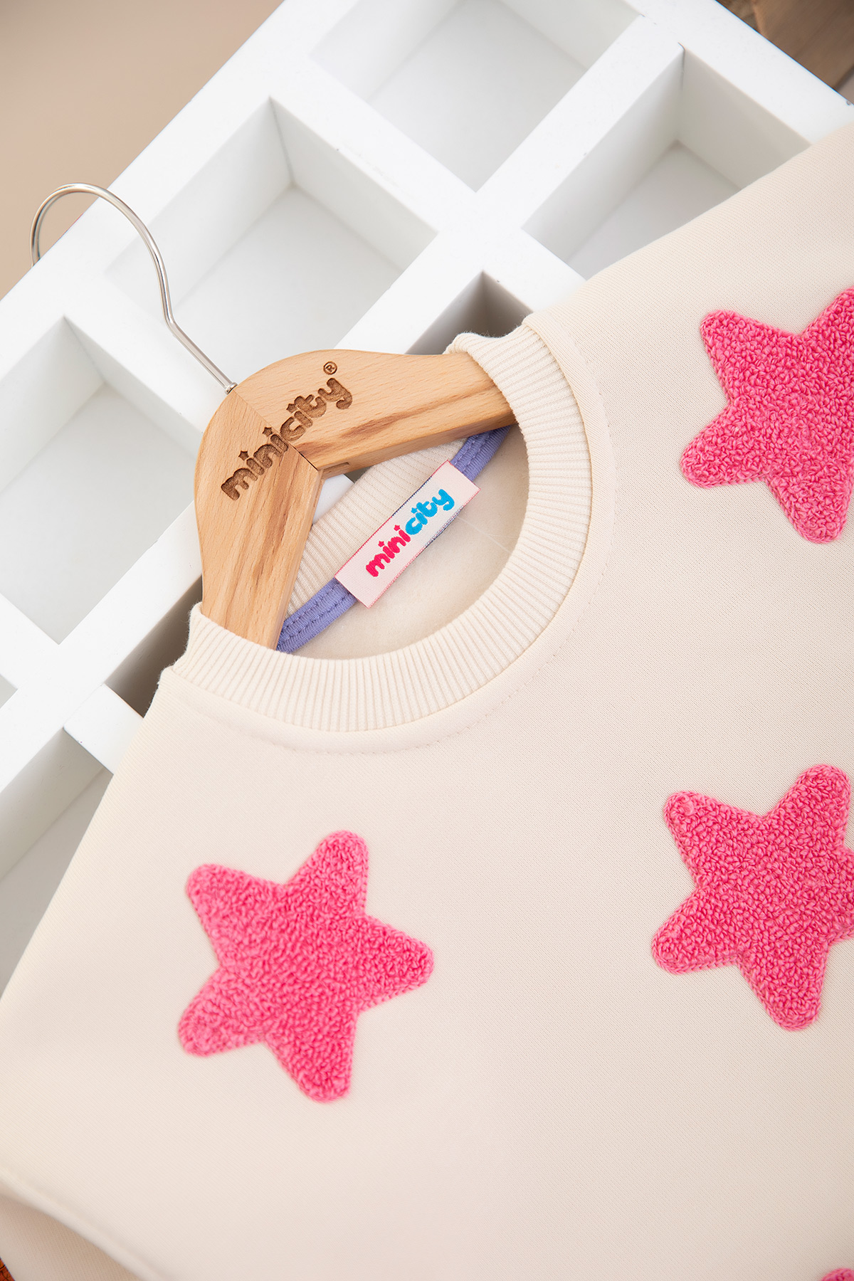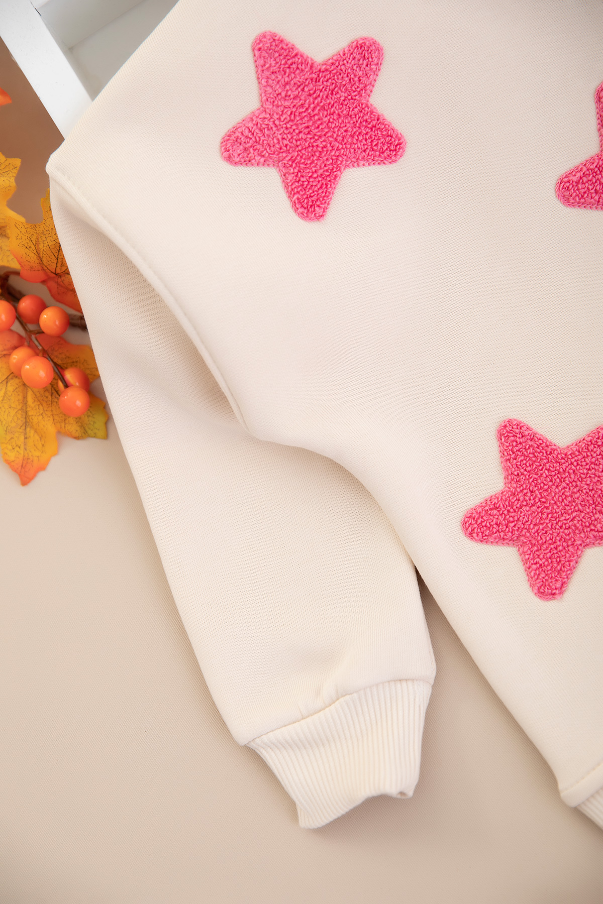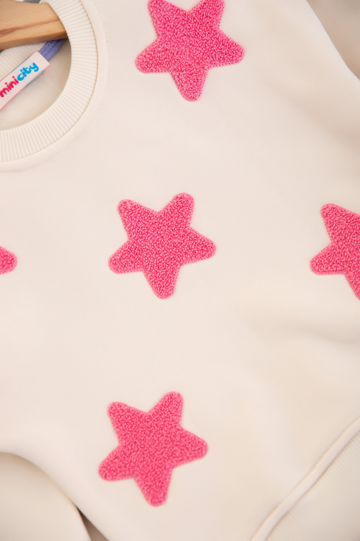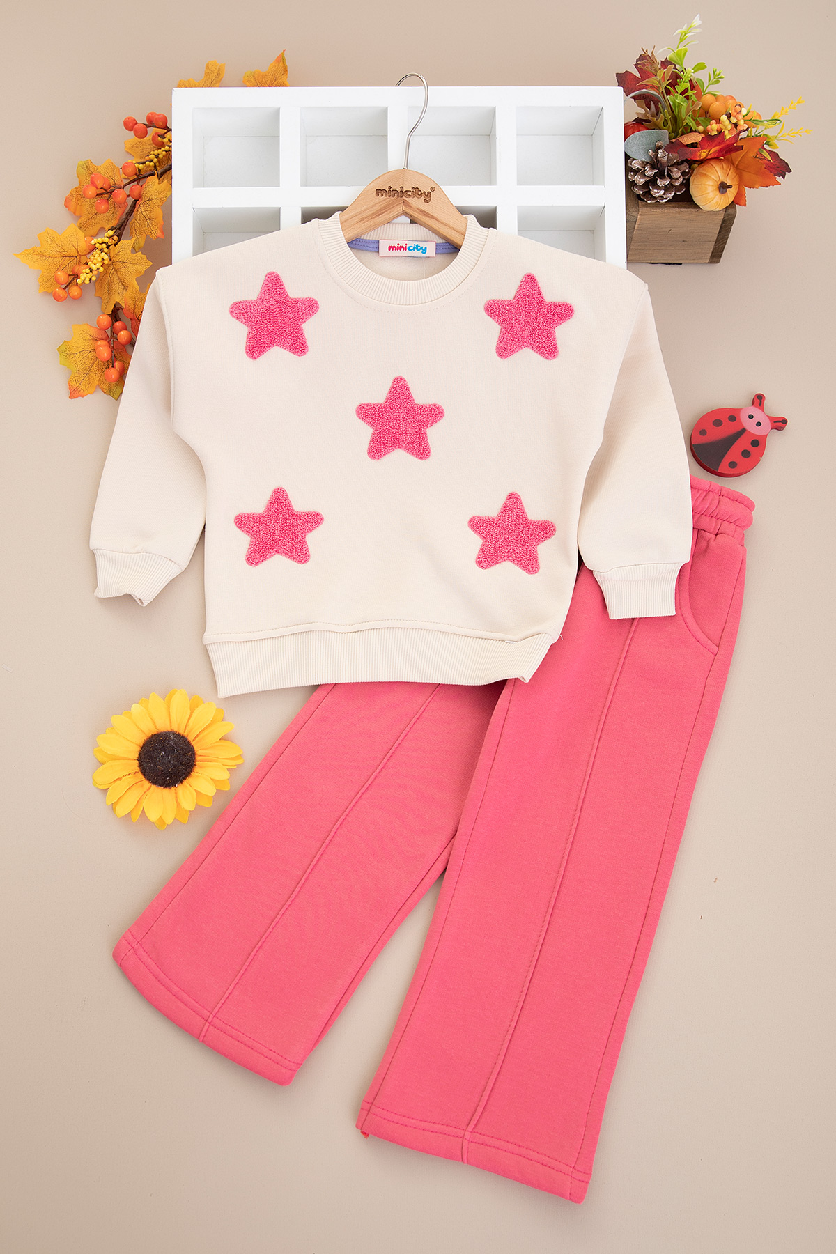 Kız Çocuk Süzene Yıldız Nakışlı Üçip Takım - 5060 (3-10 Yaş)