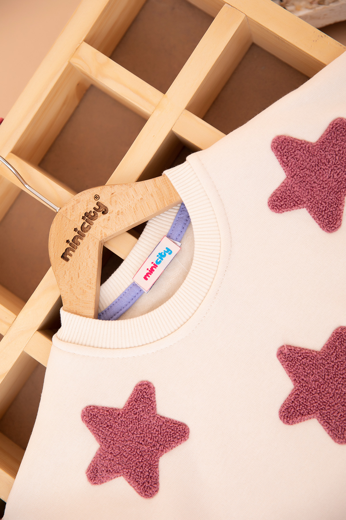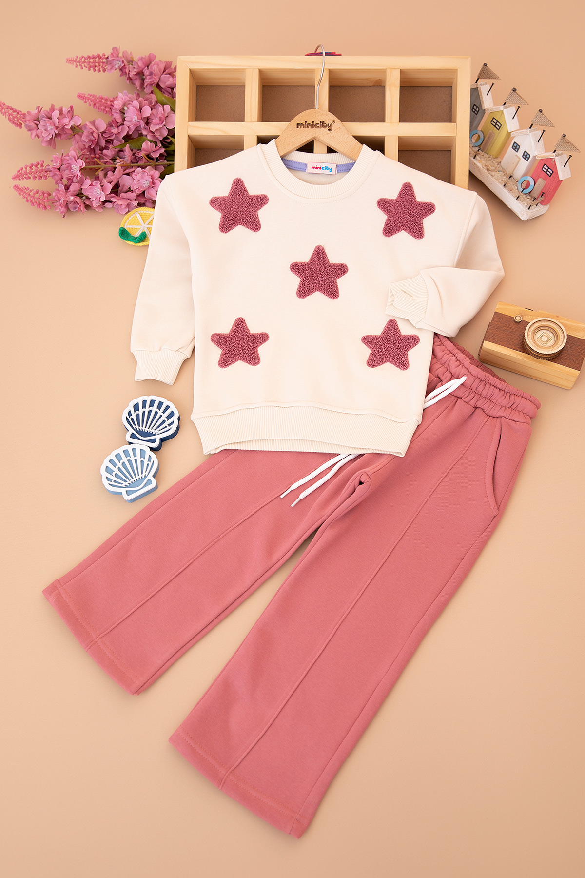 Kız Çocuk Süzene Yıldız Nakışlı Üçip Takım - 5060 (3-10 Yaş)
