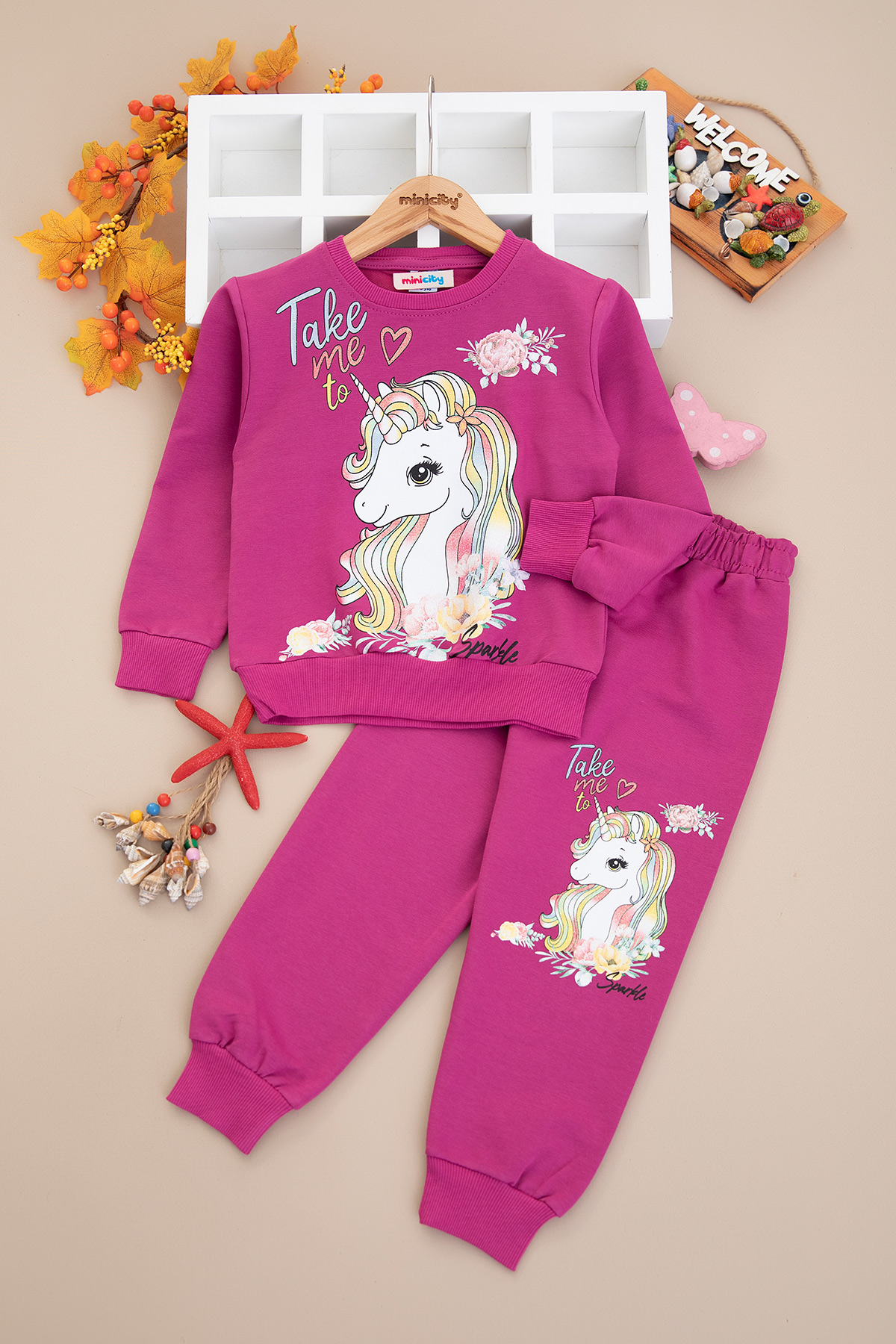 Kız Çocuk Take Me Unicorn Baskılı Takım - 3603 (4-10 Yaş)