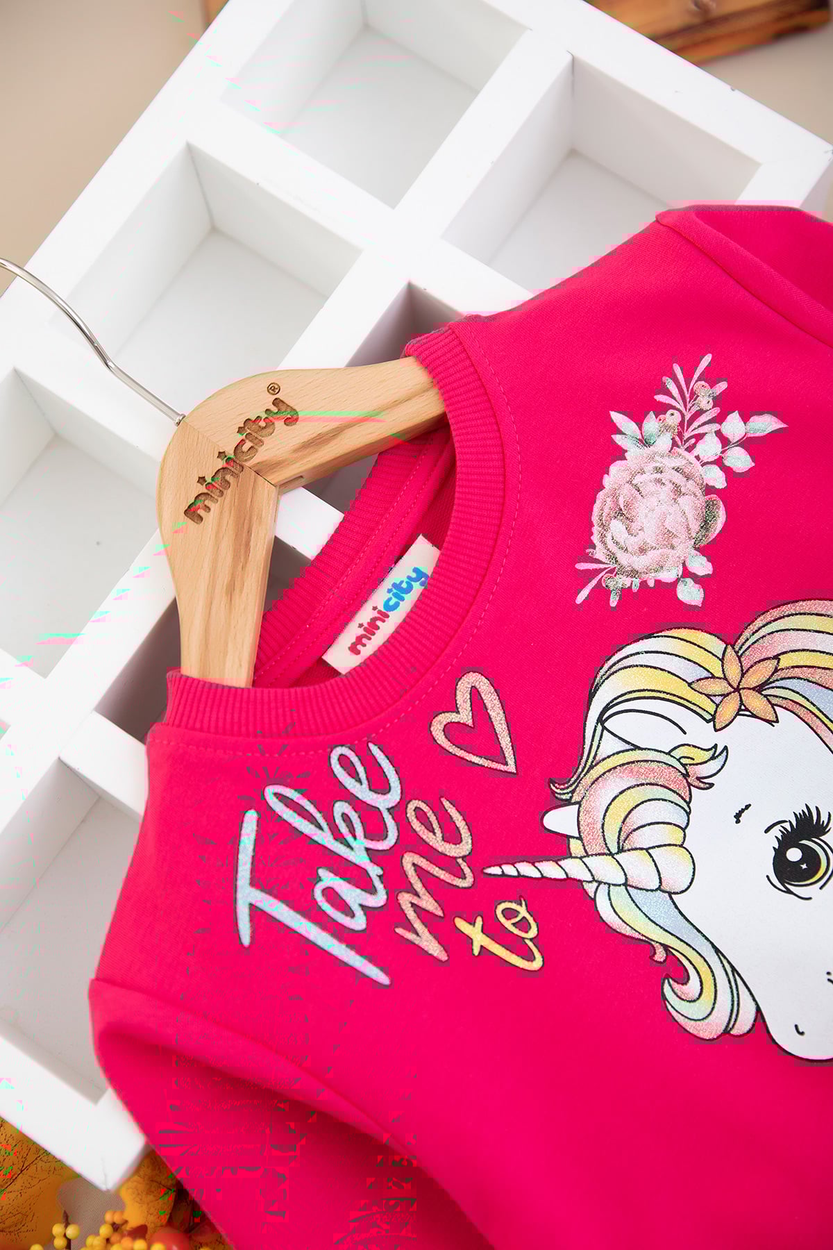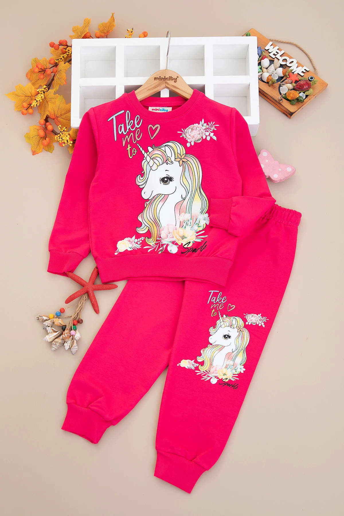 Kız Çocuk Take Me Unicorn Baskılı Takım - 3603 (4-10 Yaş)