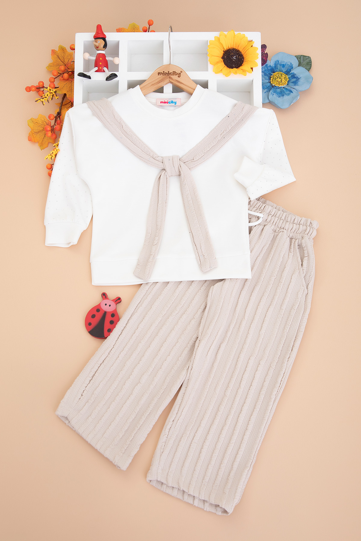 Kız Çocuk Taş Aksesuarlı Fularlı Takım - 5126 (4-11 Yaş)