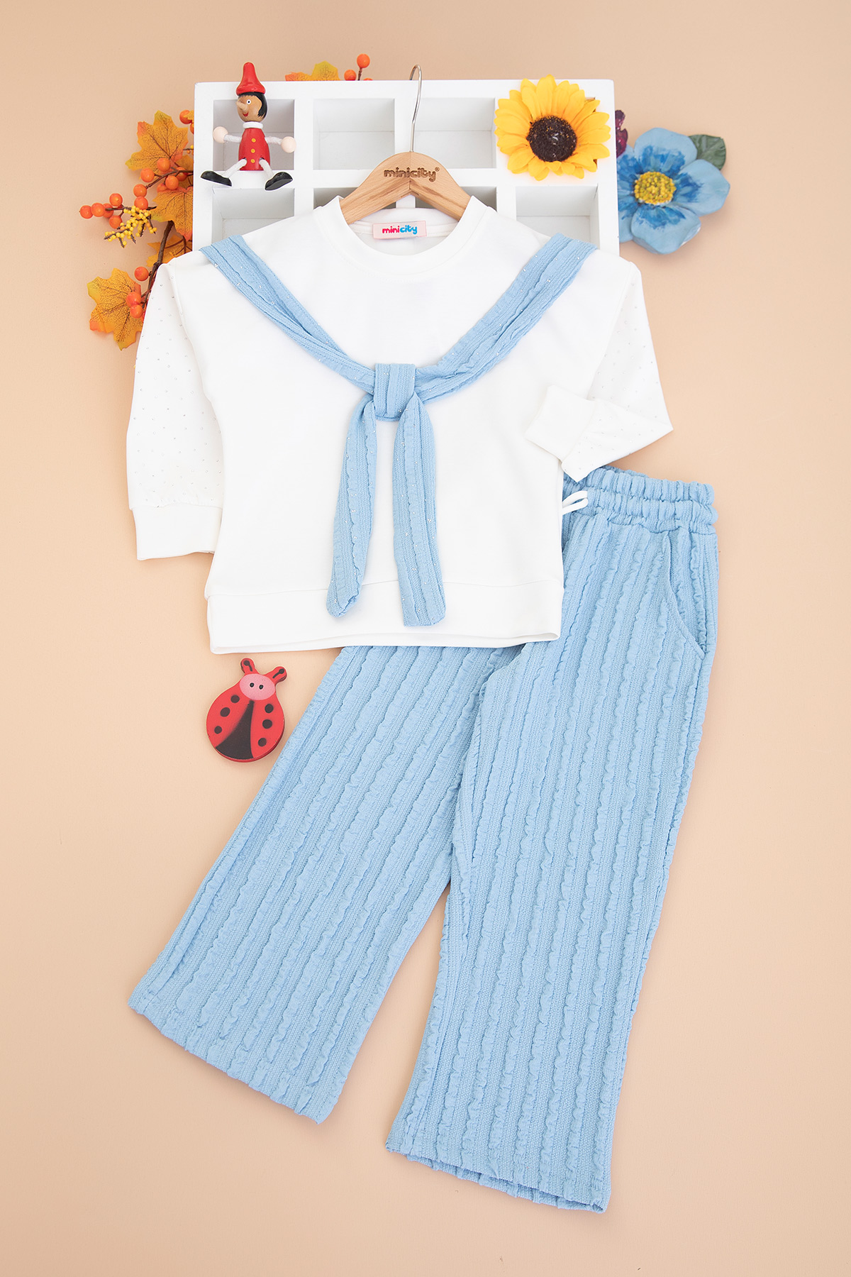 Kız Çocuk Taş Aksesuarlı Fularlı Takım - 5126 (4-11 Yaş)