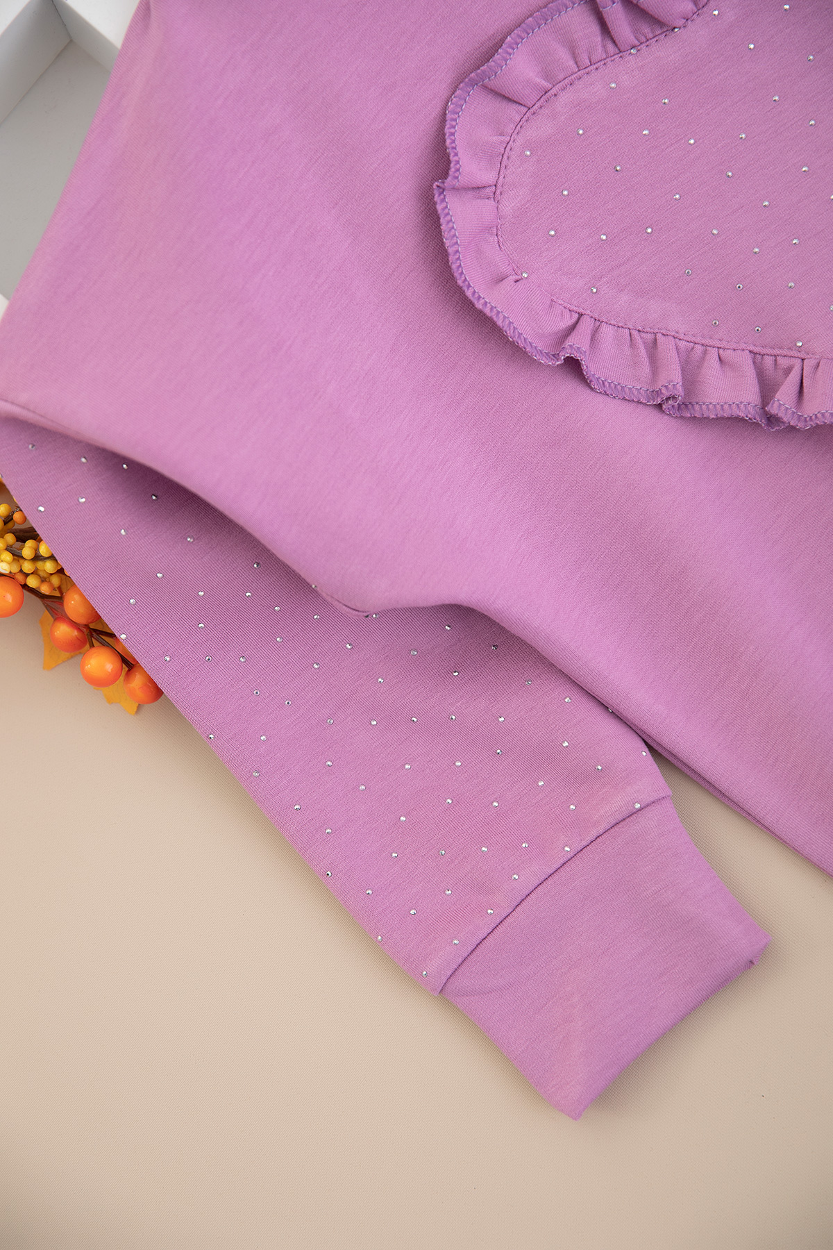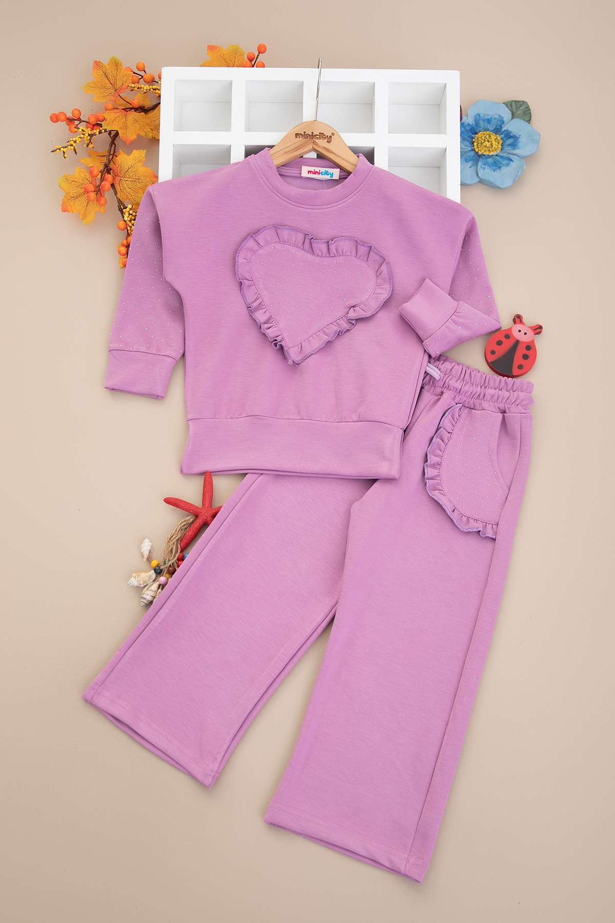 Kız Çocuk Taş Aksesuarlı Kalpli Takım - 5102 (4-11 Yaş)