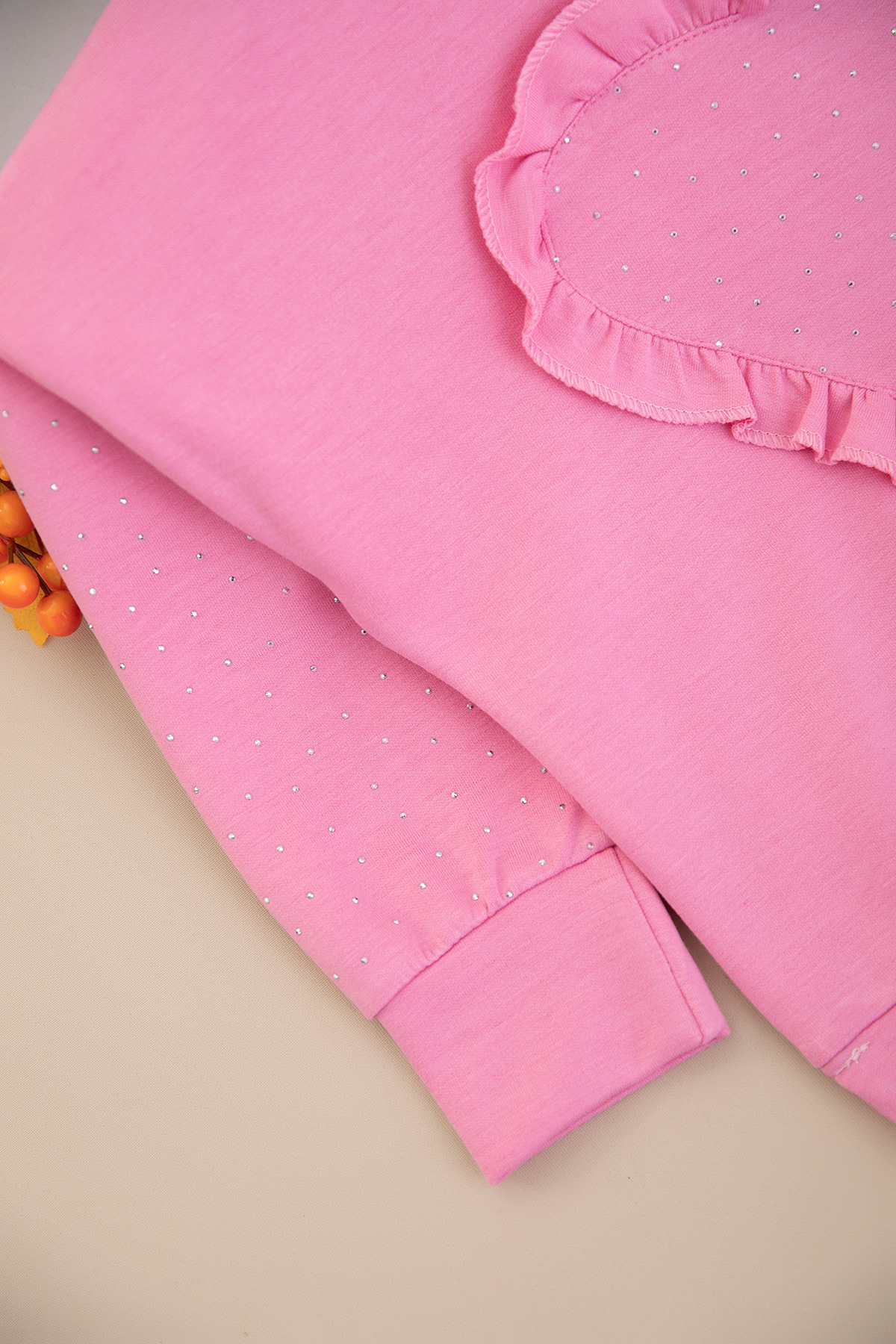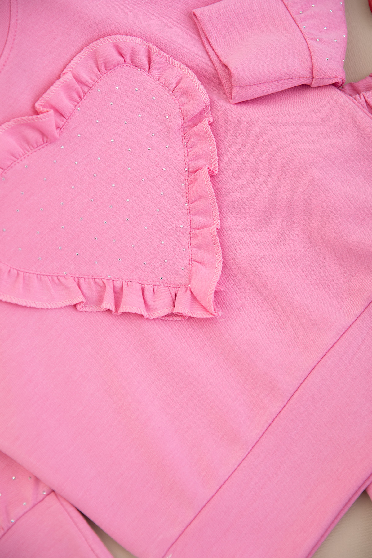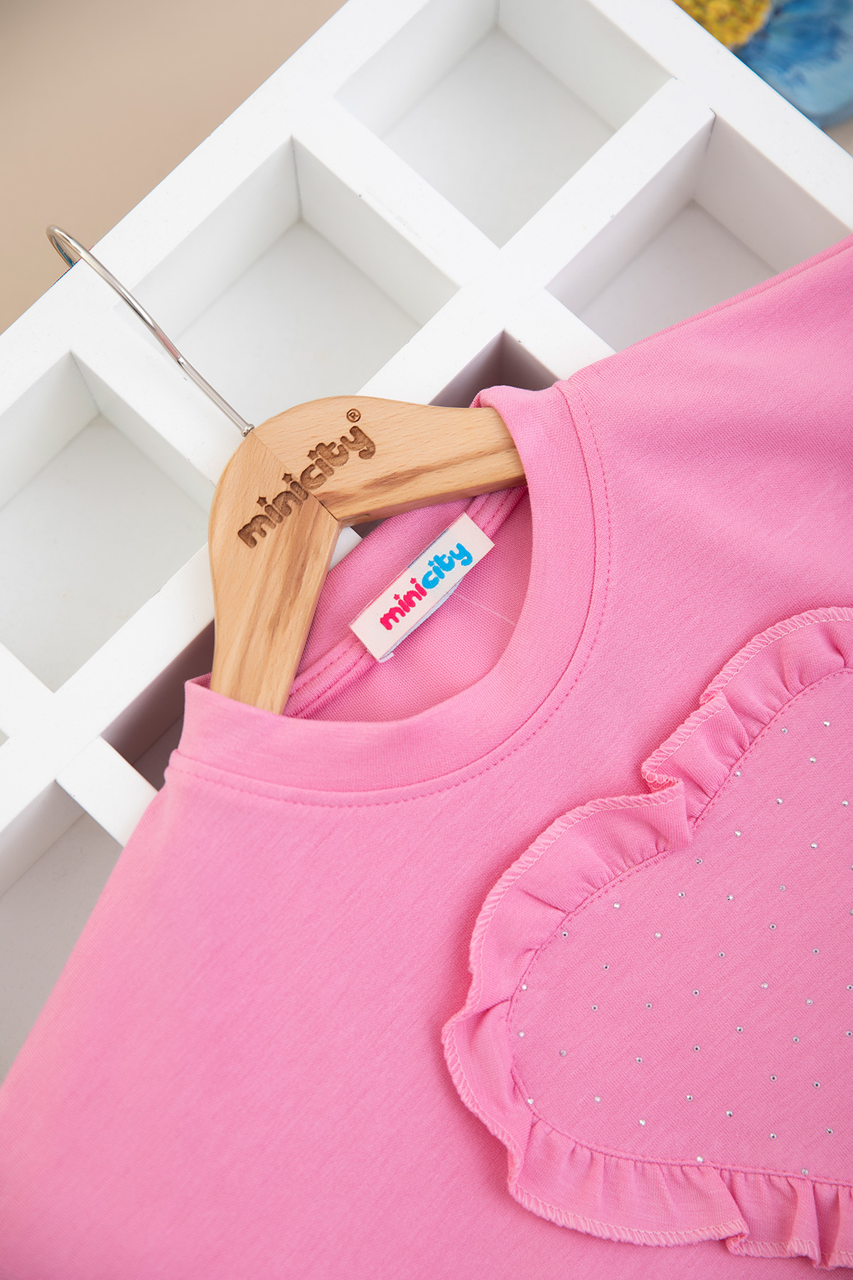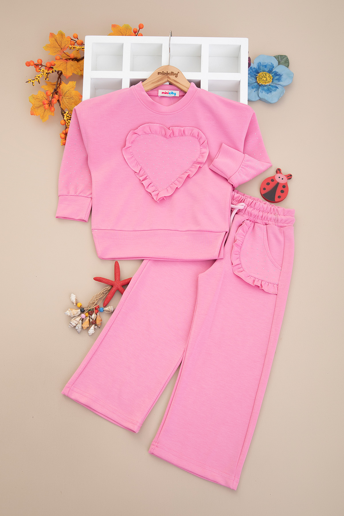 Kız Çocuk Taş Aksesuarlı Kalpli Takım - 5102 (4-11 Yaş)