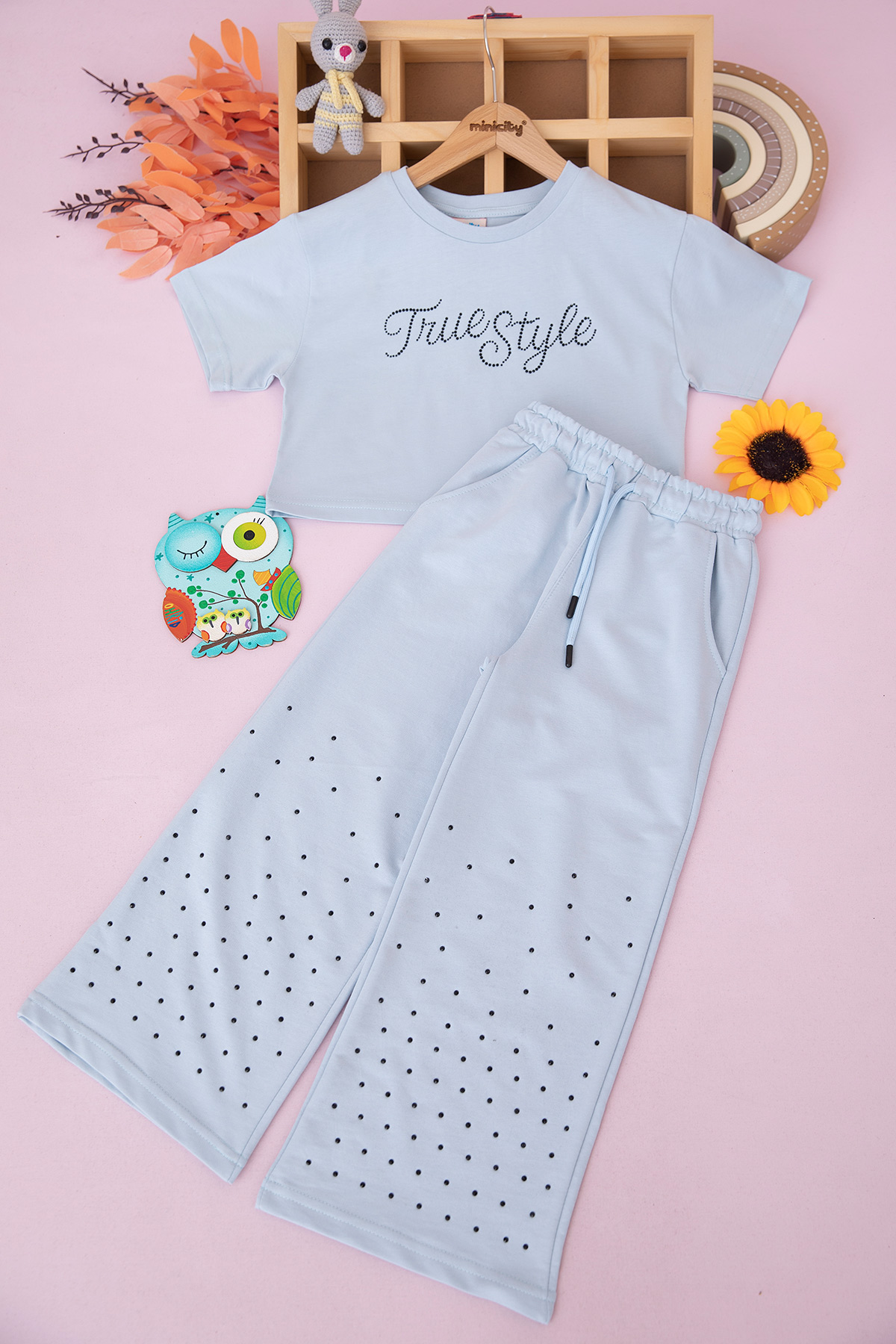 Kız Çocuk Taş Baskılı Çift Paça Takım - 8574 (11-14 Yaş)