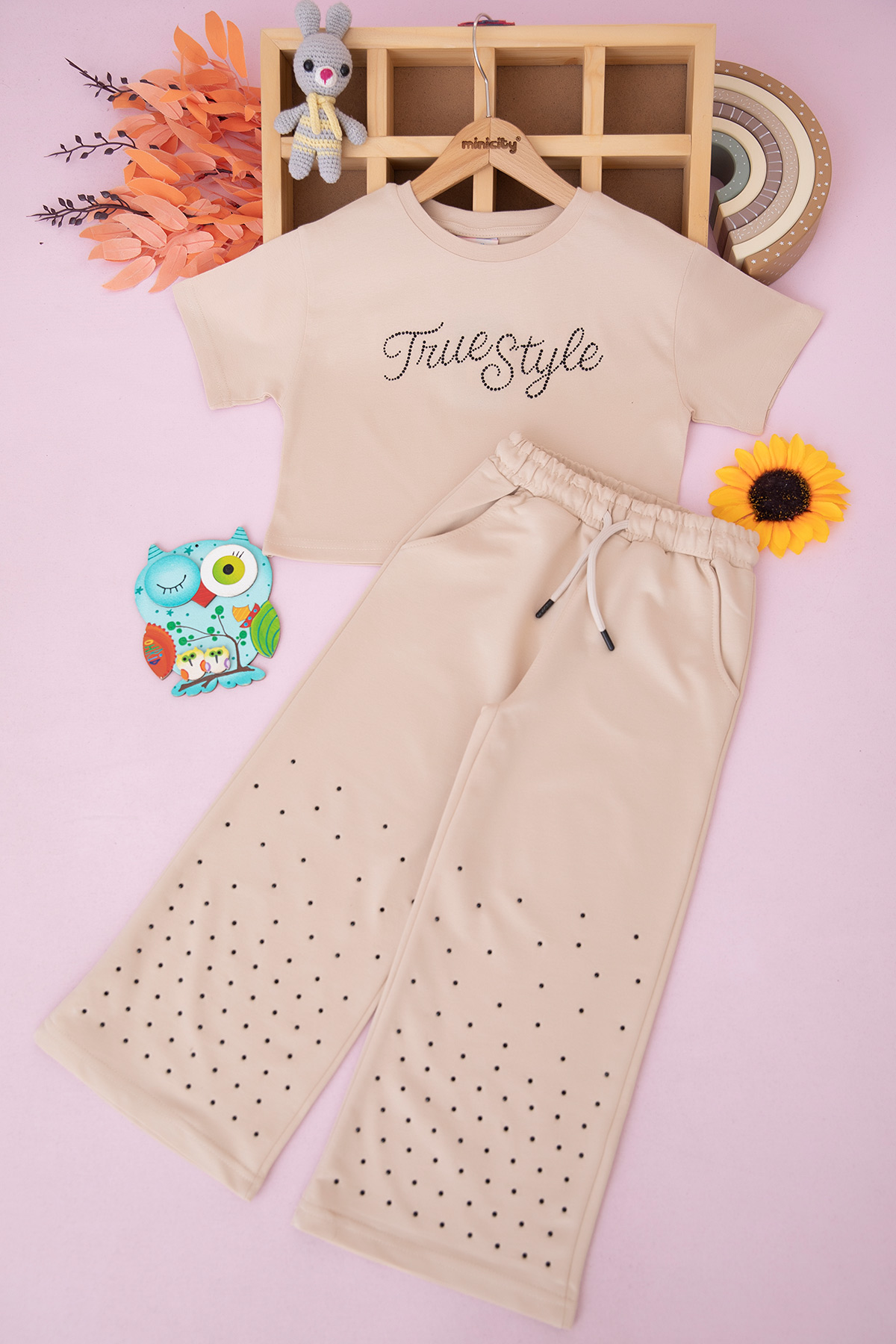 Kız Çocuk Taş Baskılı Çift Paça Takım - 8574 (7-10 Yaş)
