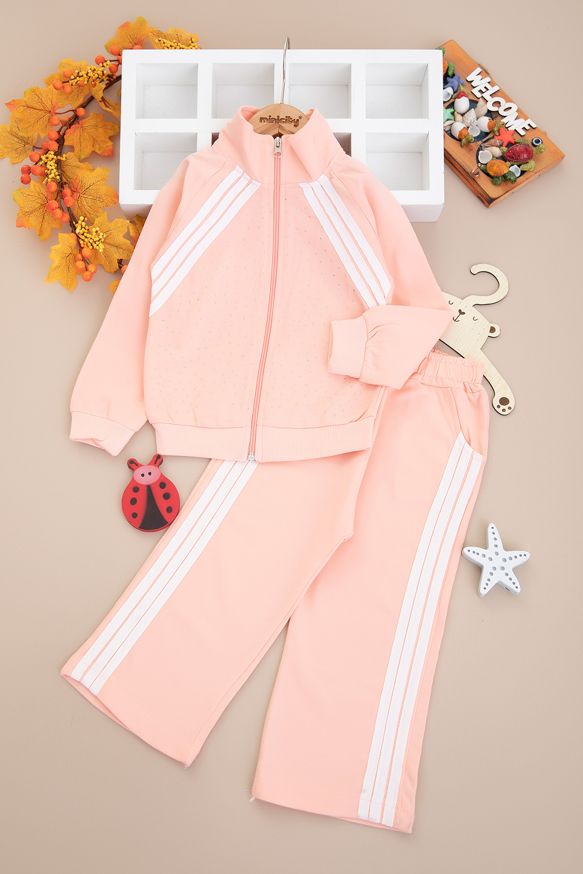 Kız Çocuk Taş Baskılı Fermuarlı Takım - 40680 (2-5 Yaş)
