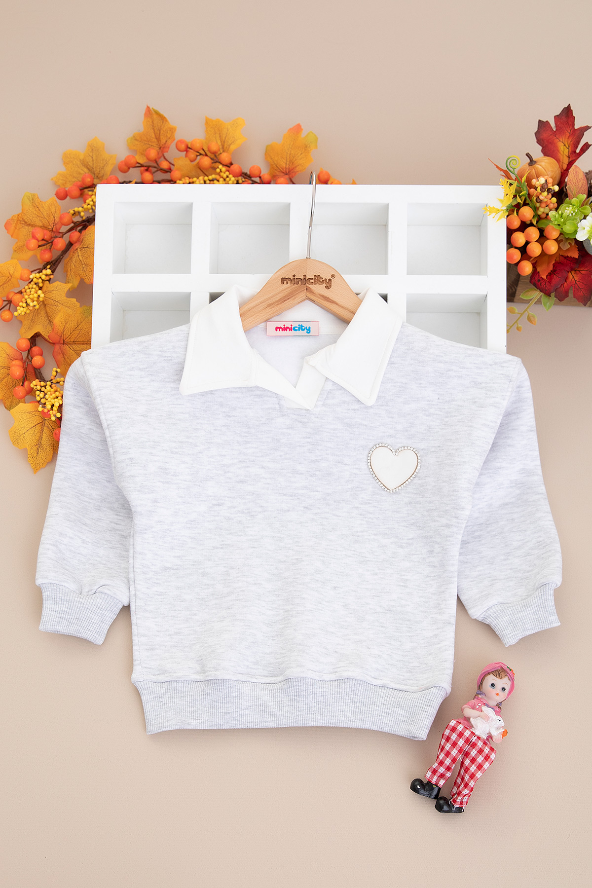 Kız Çocuk Taş Kalp Baskılı Üçip Sweat - 4119 (8-12 Yaş)