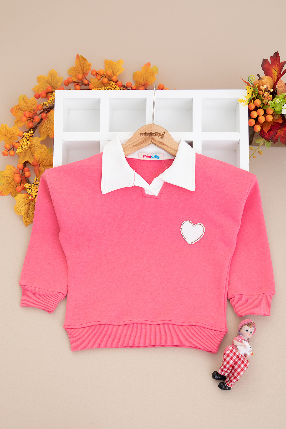 Kız Çocuk Taş Kalp Baskılı Üçip Sweat - 4119 (8-12 Yaş)
