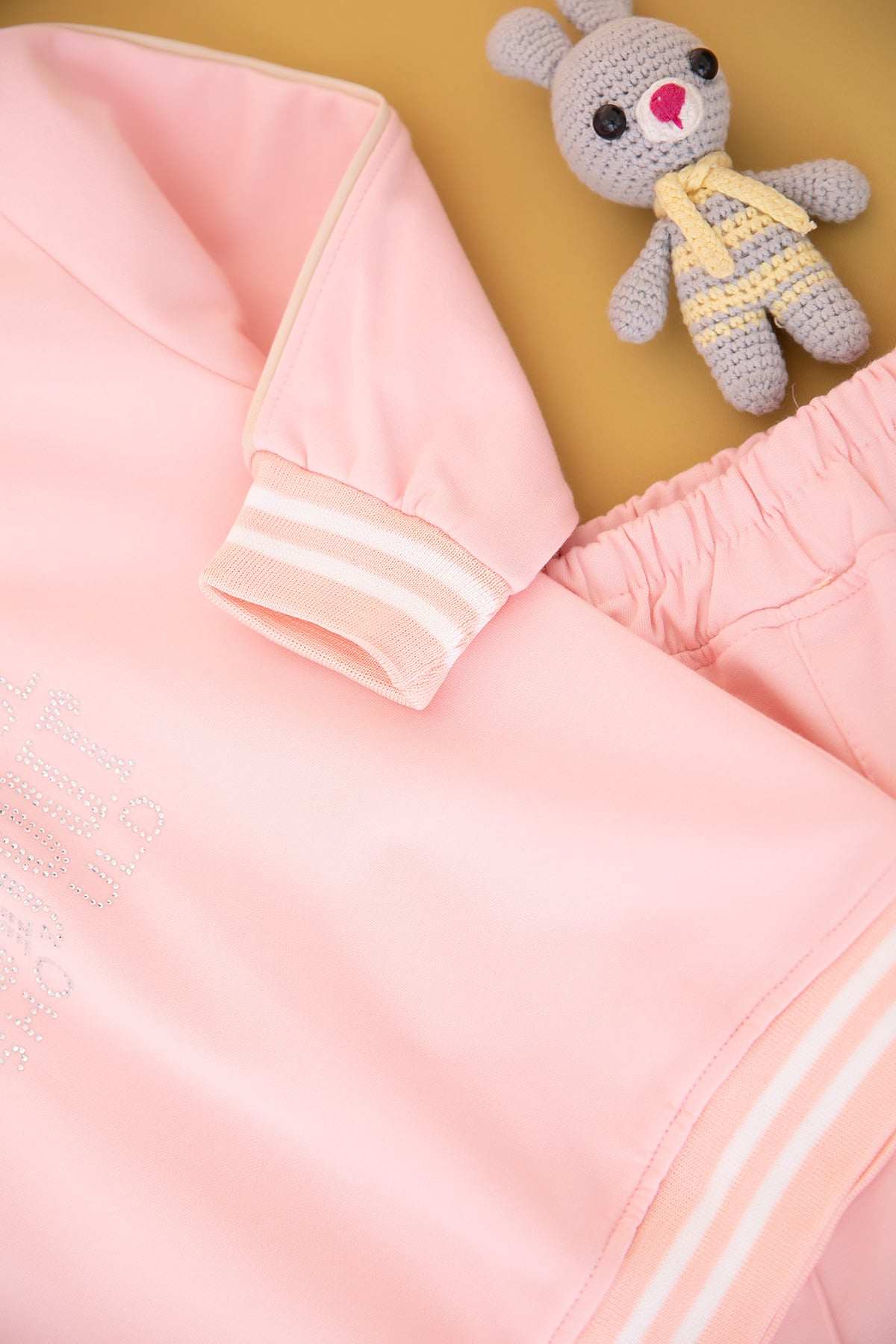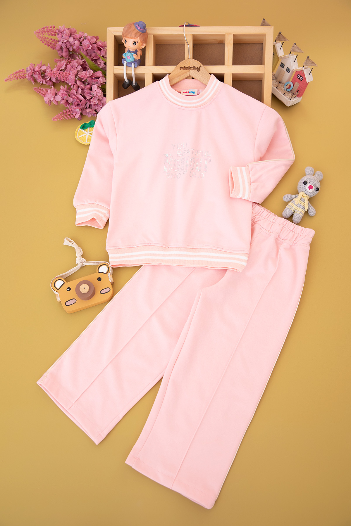 Kız Çocuk Taşlı Bonjour Nakışlı Takım - 70715 (5-12 Yaş)