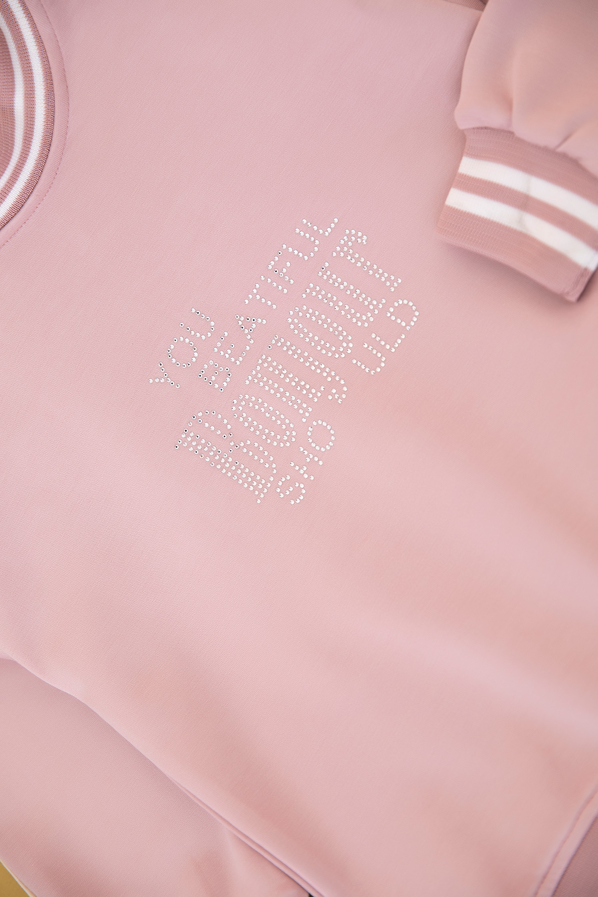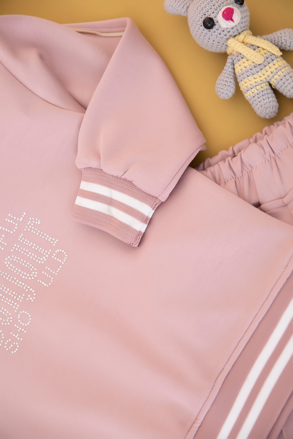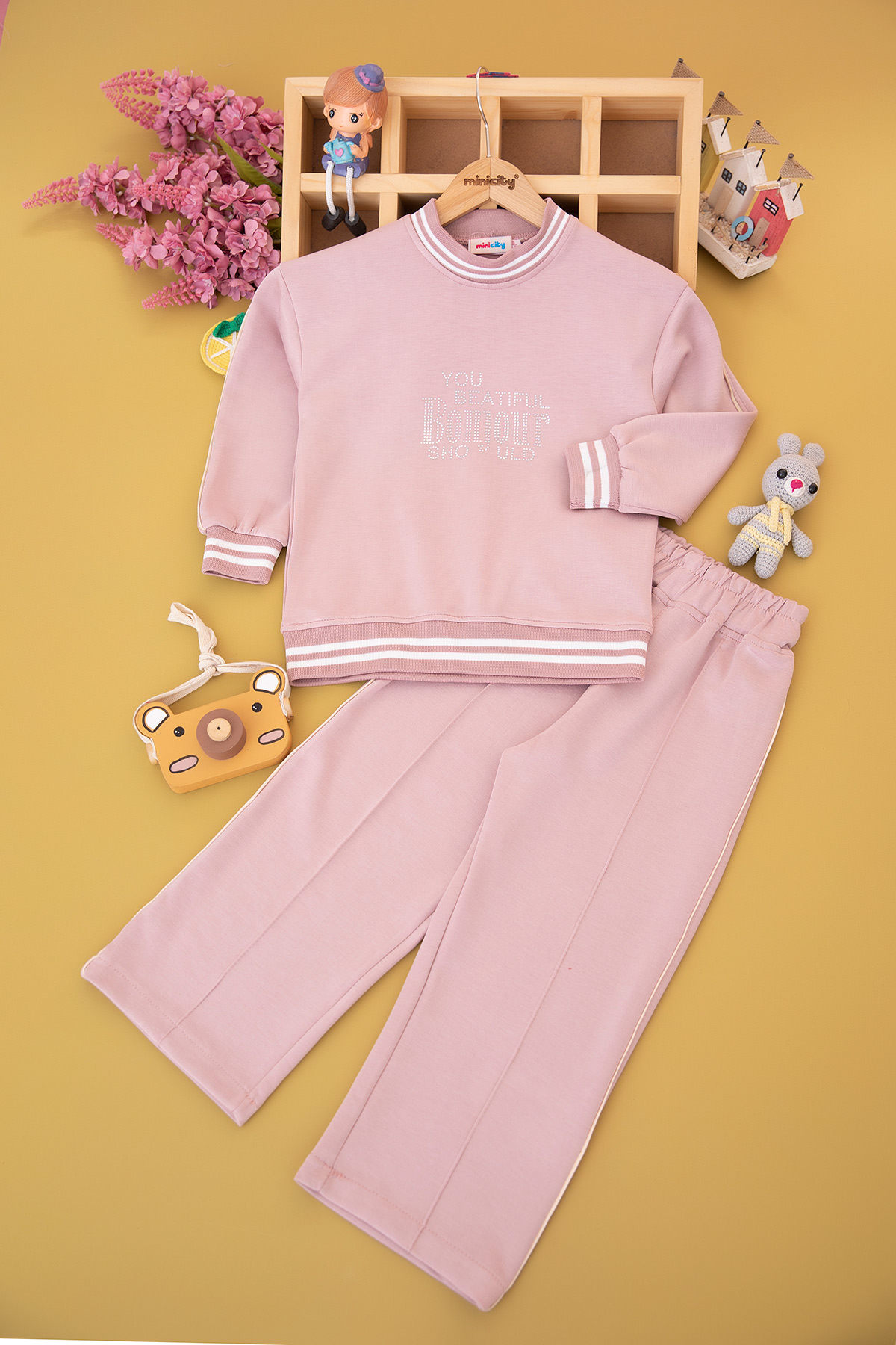 Kız Çocuk Taşlı Bonjour Nakışlı Takım - 70715 (5-12 Yaş)