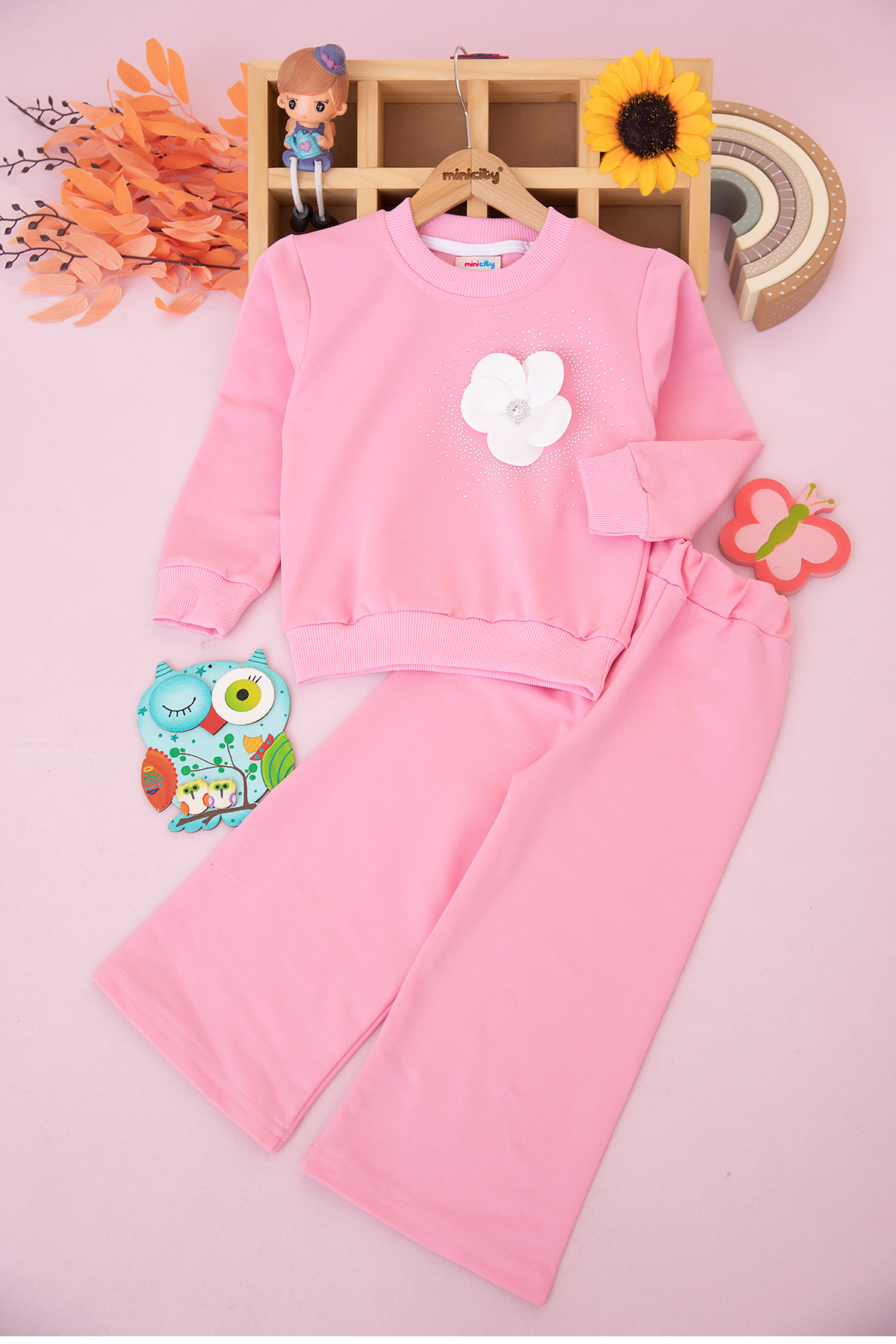 Kız Çocuk Taşlı Çiçek Aksesuarlı Mevsimlik Takım (3-10 Yaş)
