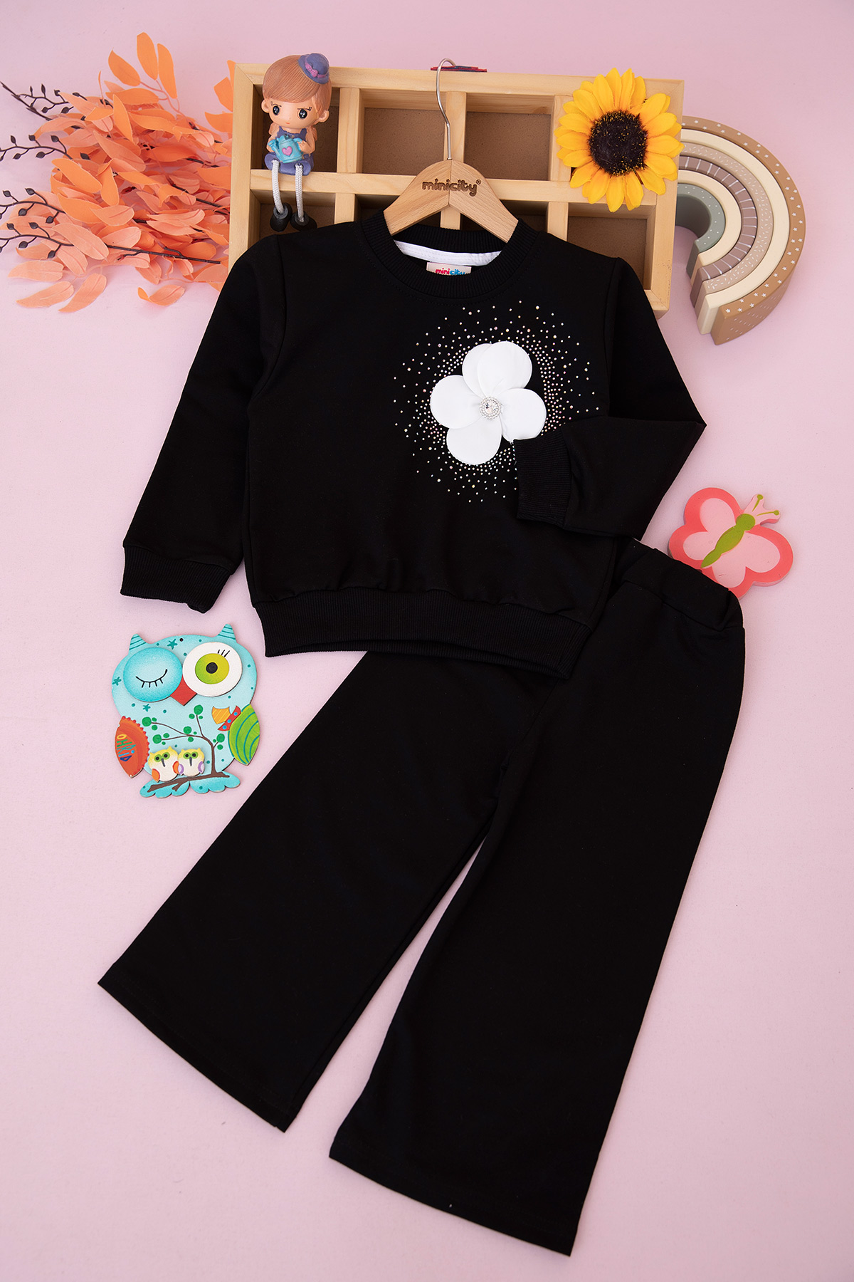 Kız Çocuk Taşlı Çiçek Aksesuarlı Mevsimlik Takım (3-10 Yaş)