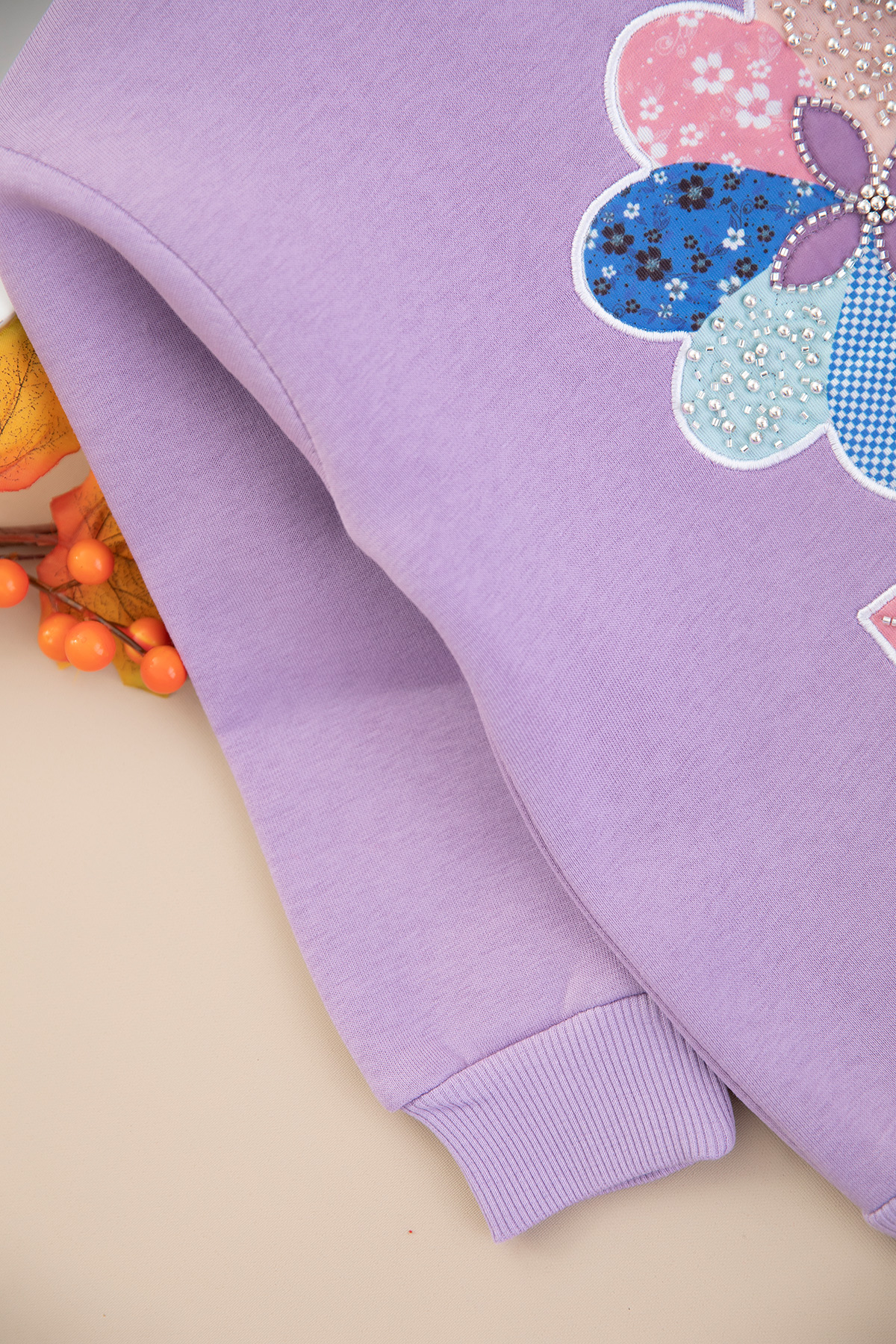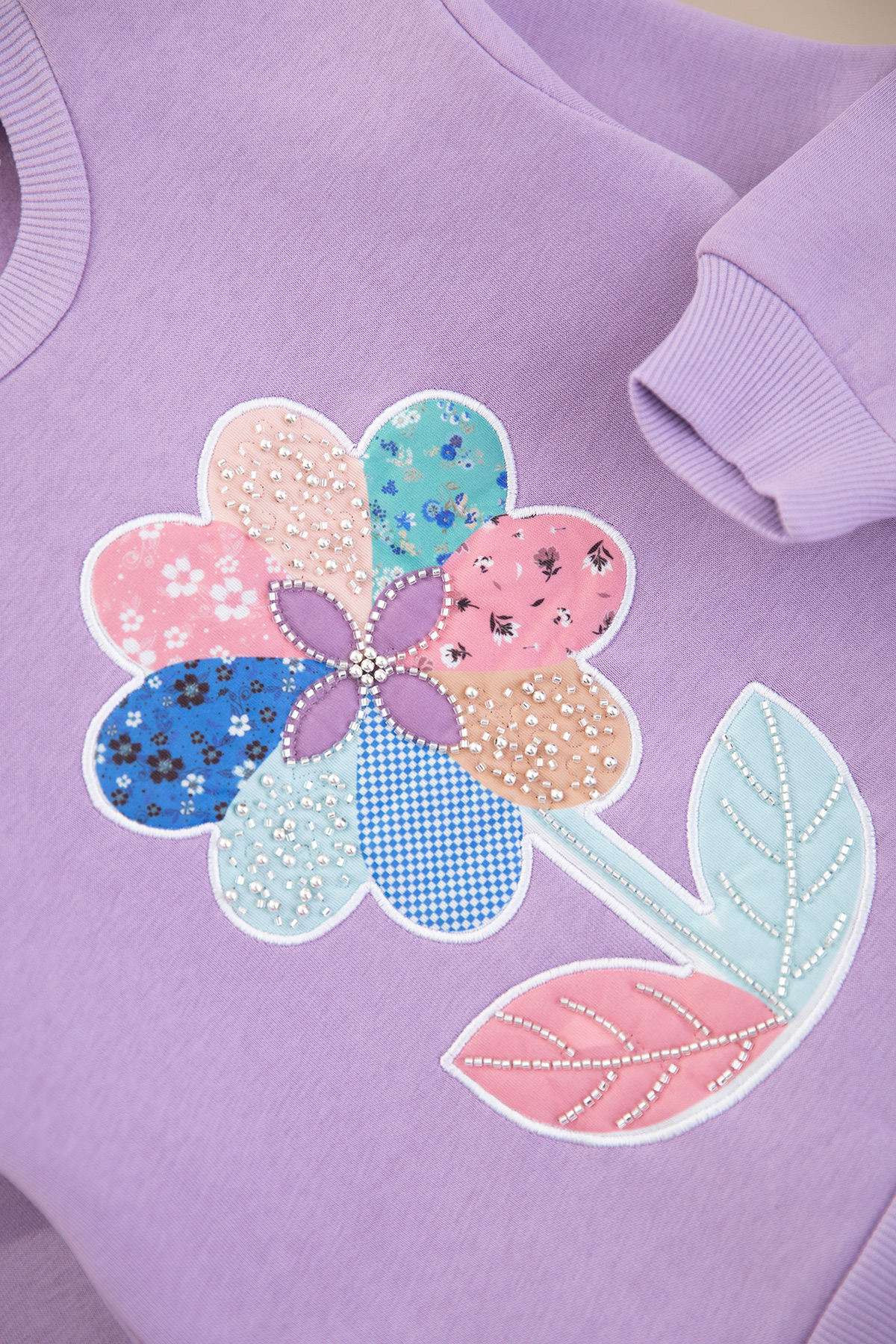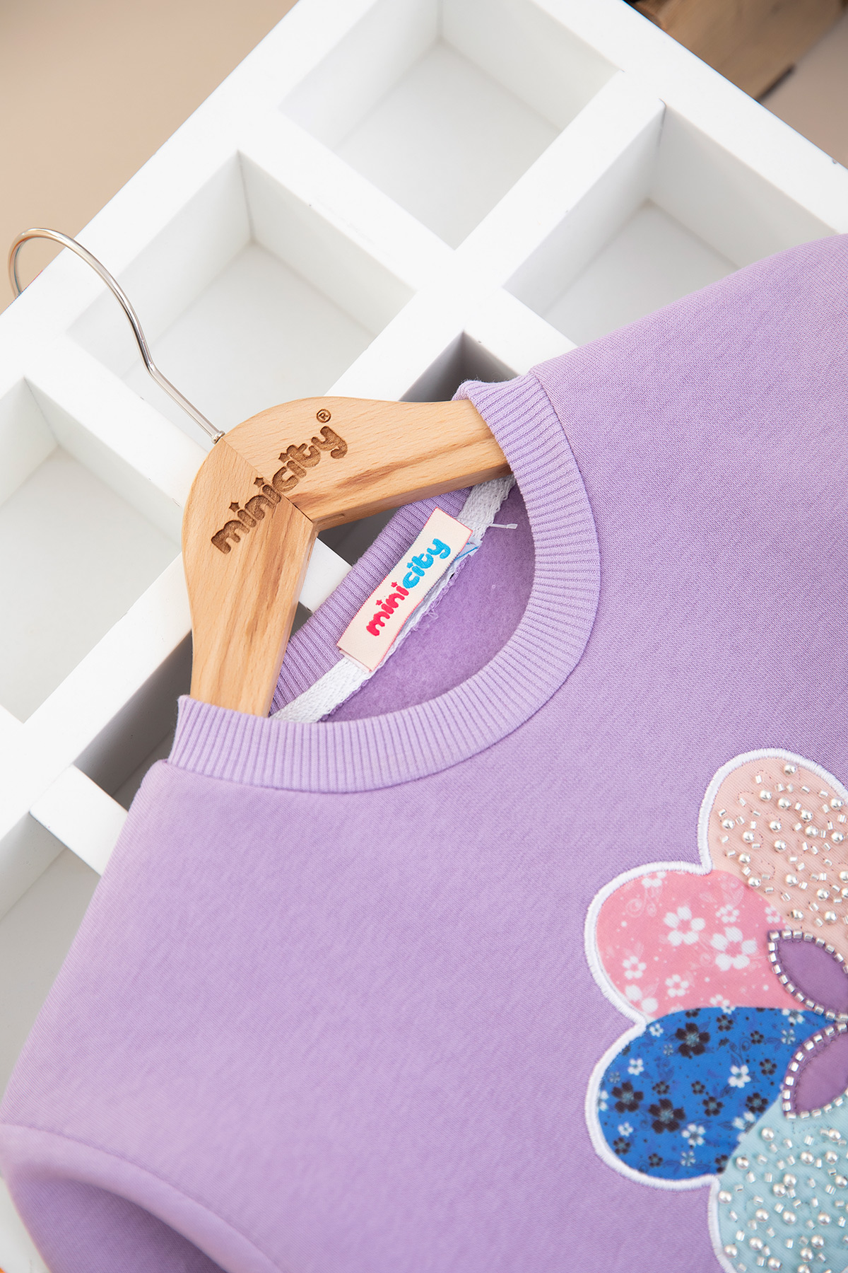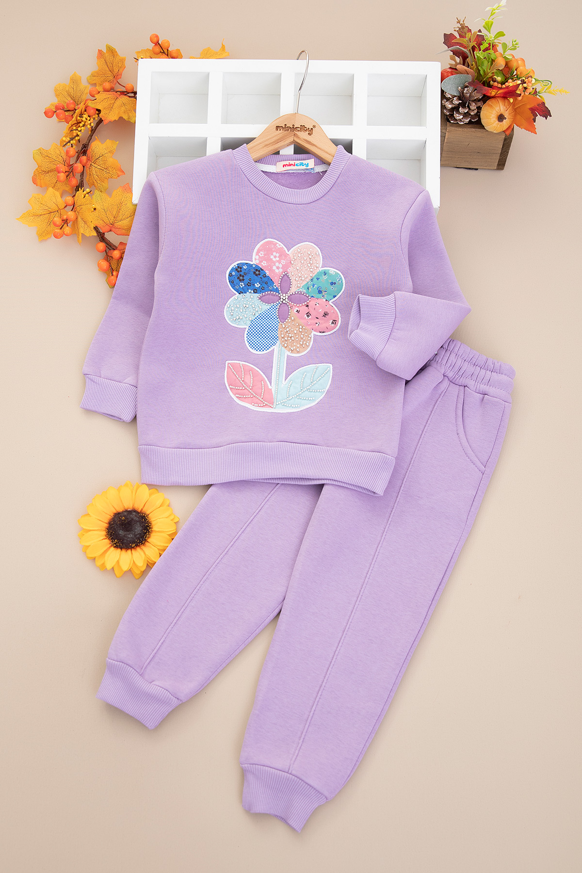 Kız Çocuk Taşlı Çiçek Nakışlı Üçip Takım (3-10 Yaş)