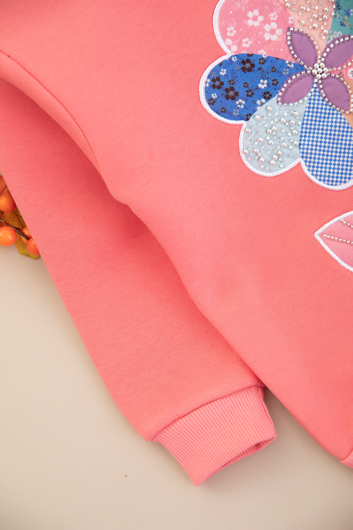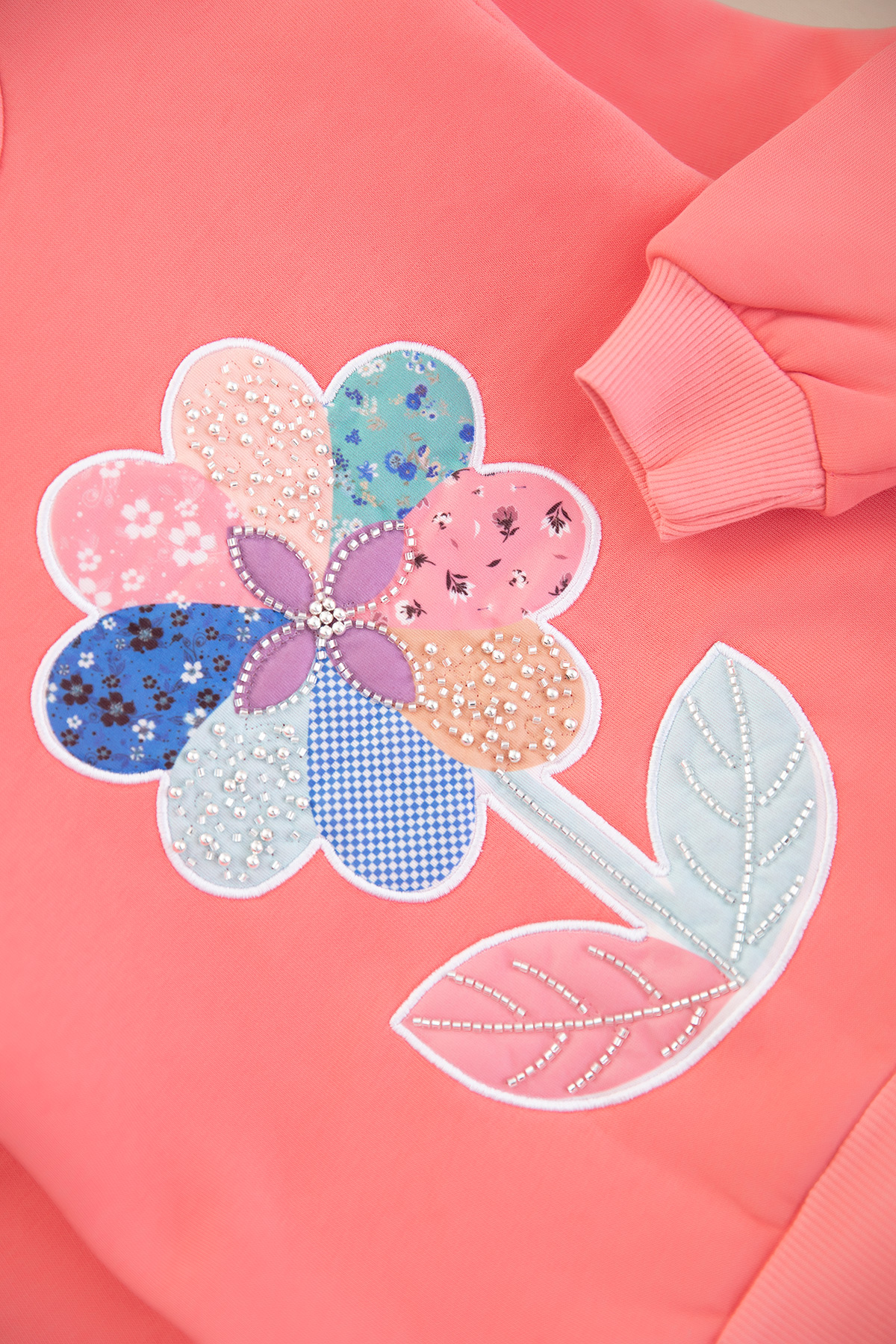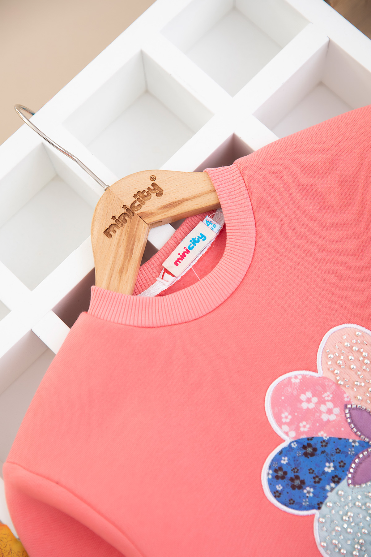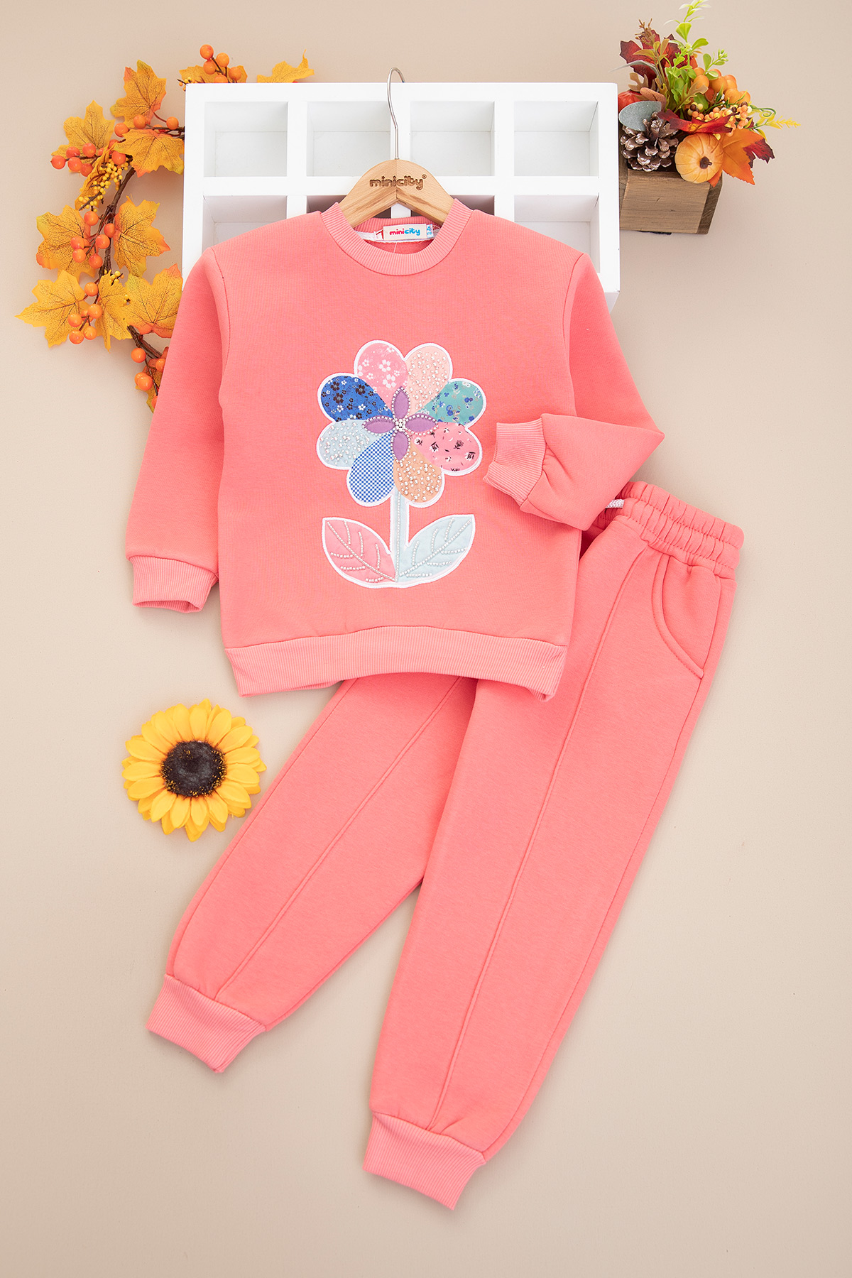 Kız Çocuk Taşlı Çiçek Nakışlı Üçip Takım (3-10 Yaş)