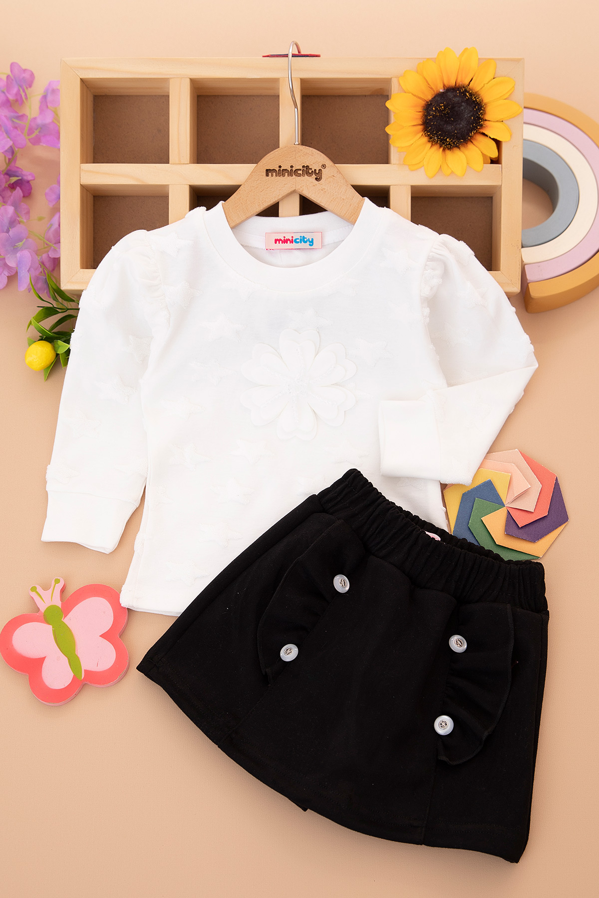 Kız Çocuk Taşlı Çiçekli Şort Etek Takım - 1004 (3-6 Yaş)