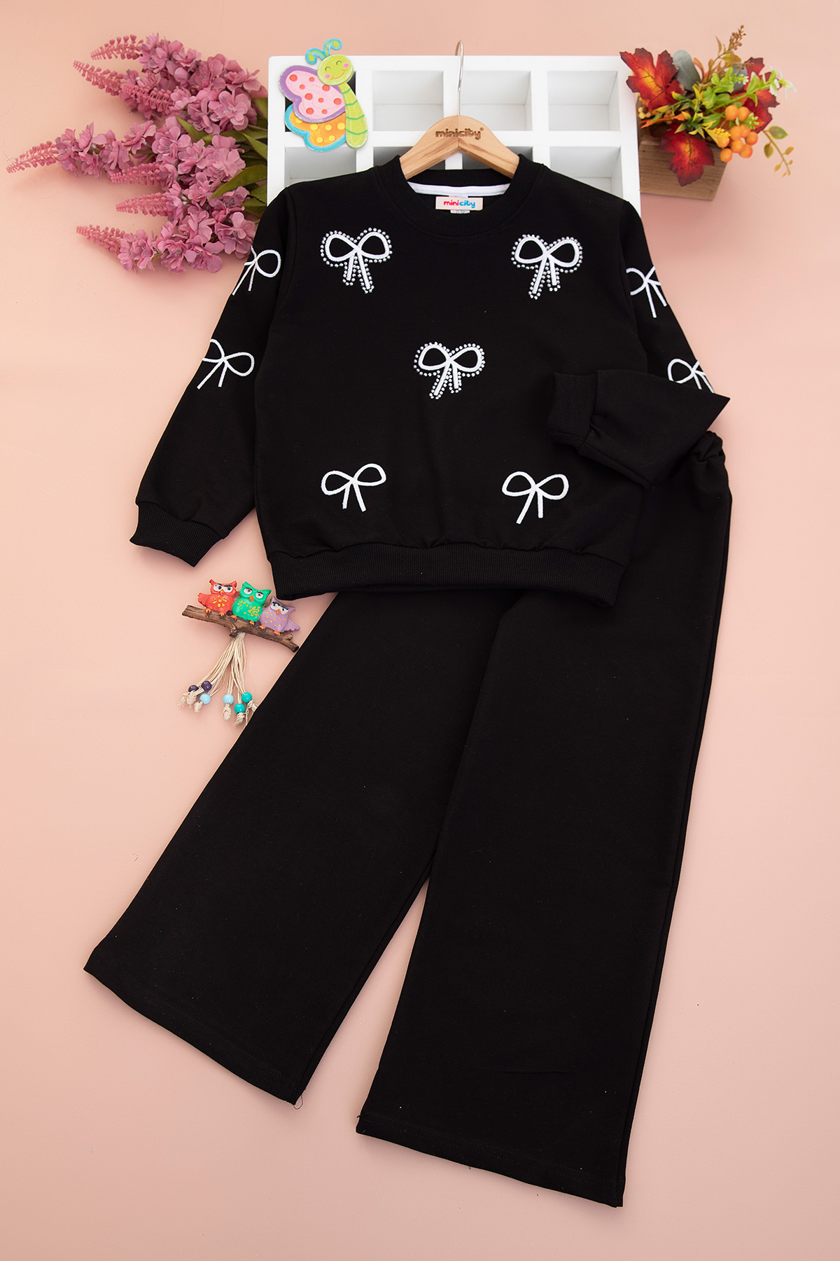Kız Çocuk Taşlı Çoklu Fiyonk Nakışlı Takım (10-14 Yaş)