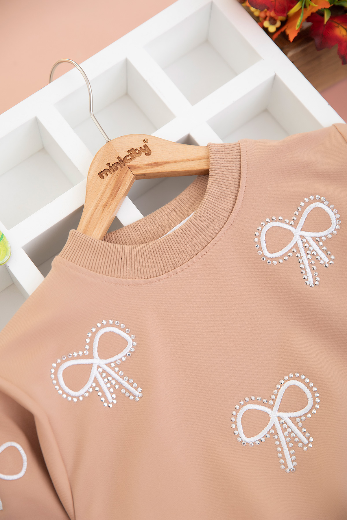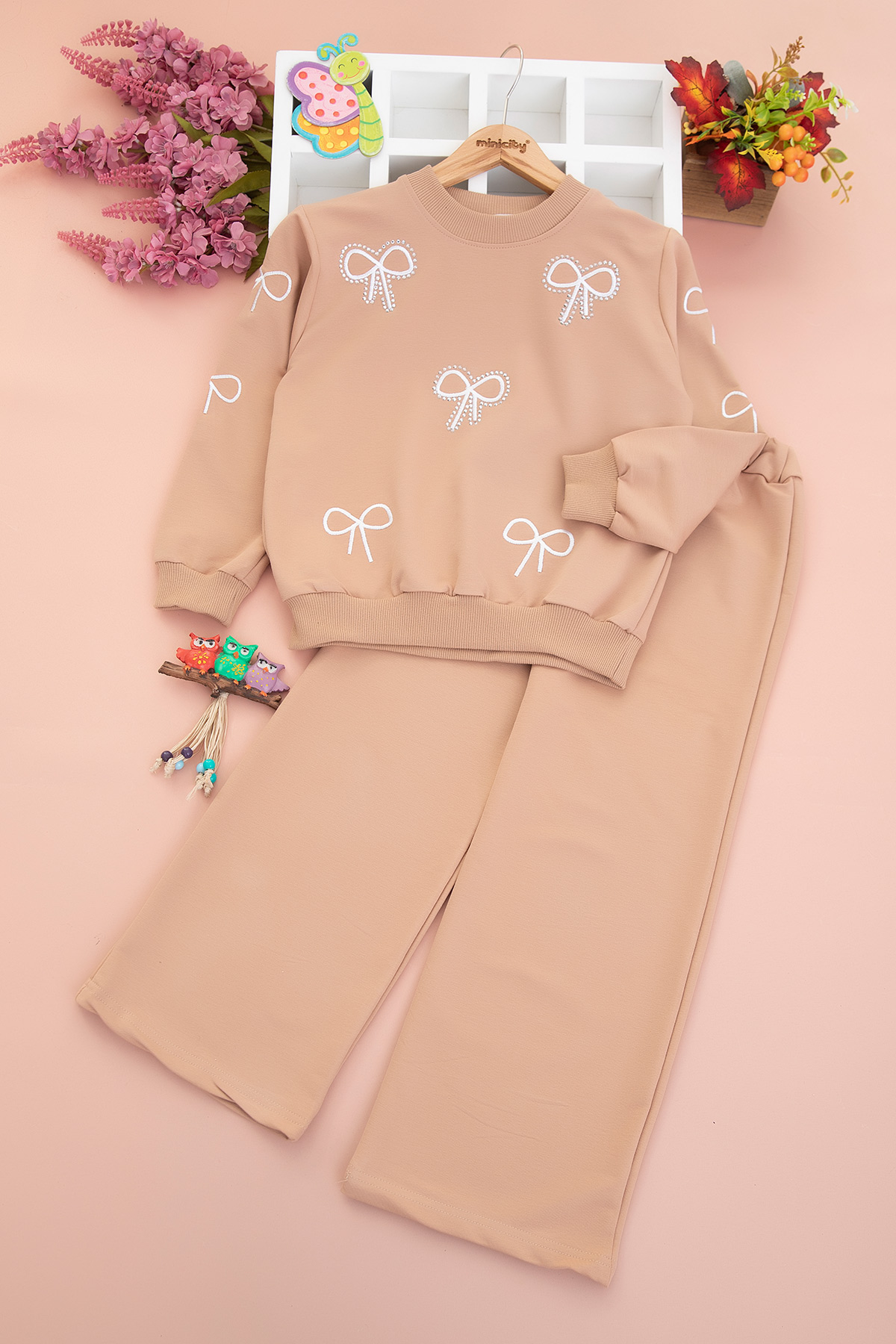 Kız Çocuk Taşlı Çoklu Fiyonk Nakışlı Takım (10-14 Yaş)