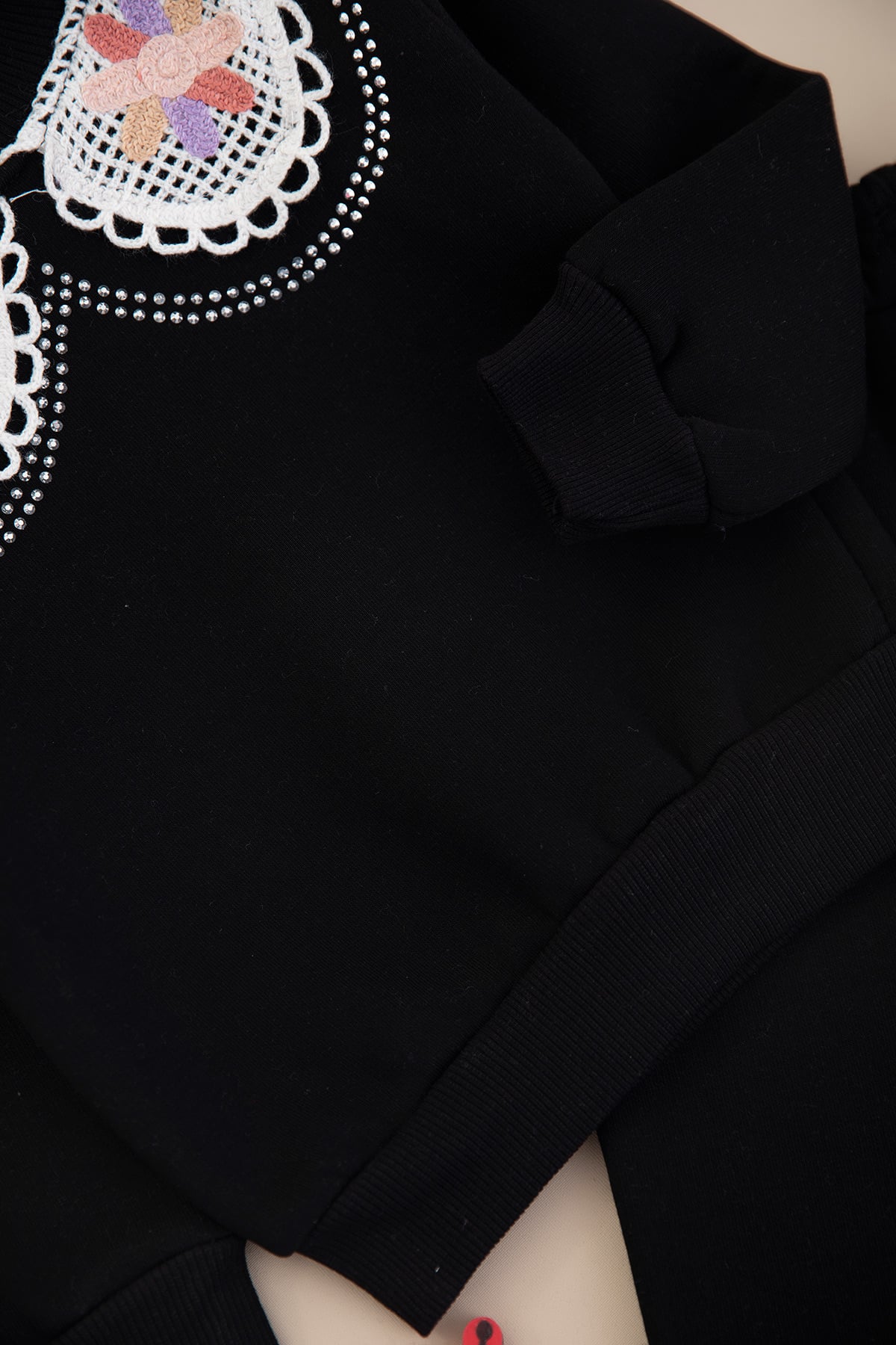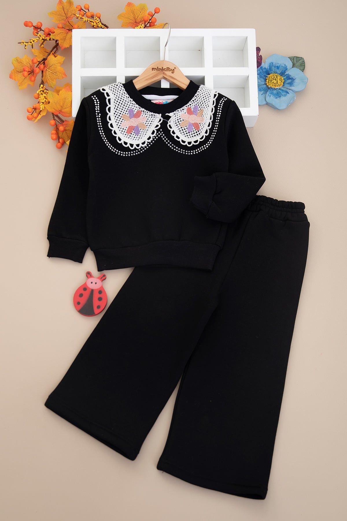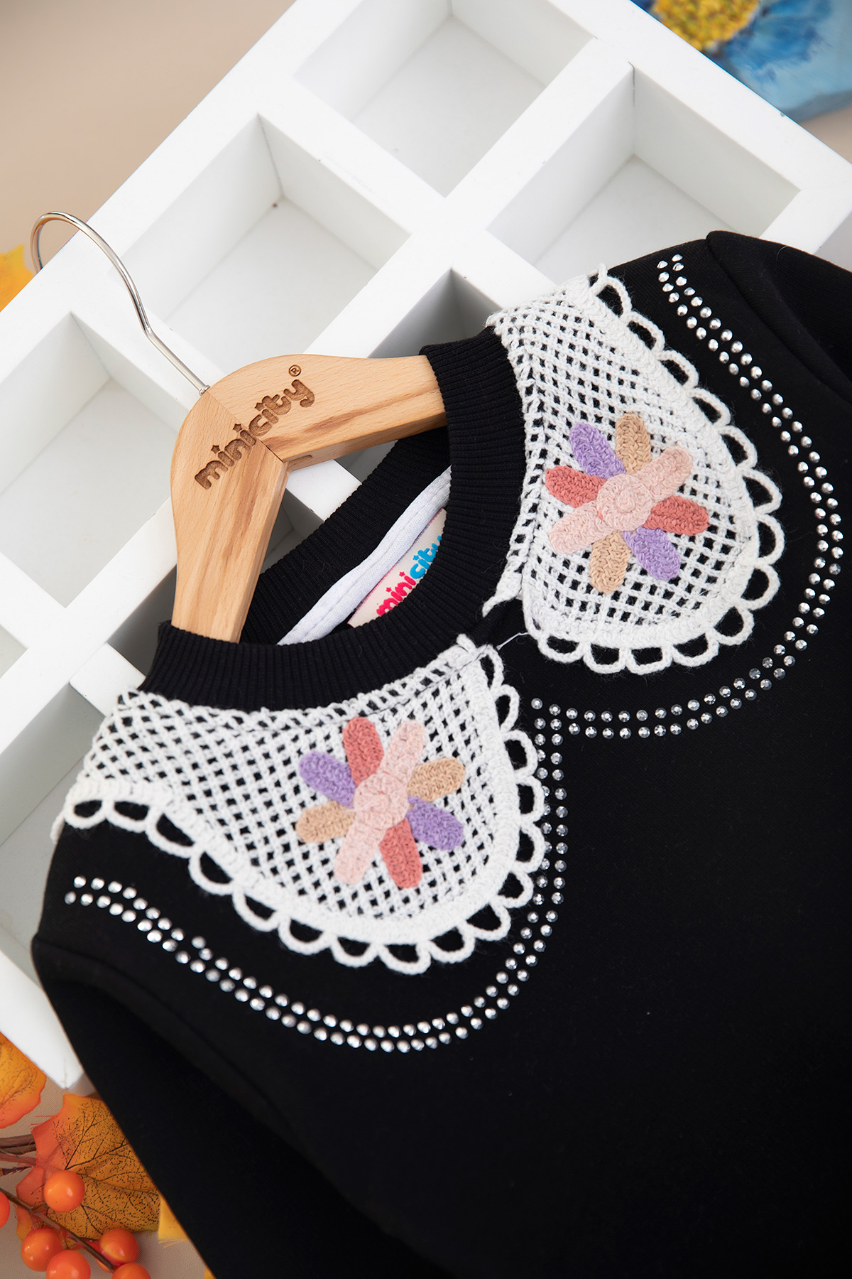 Kız Çocuk Taşlı Dantel Yakalı Üçip Takım (3-10 Yaş)