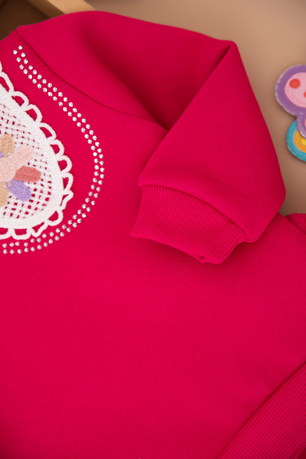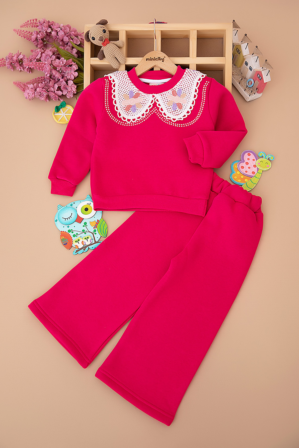 Kız Çocuk Taşlı Dantel Yakalı Üçip Takım (3-10 Yaş)