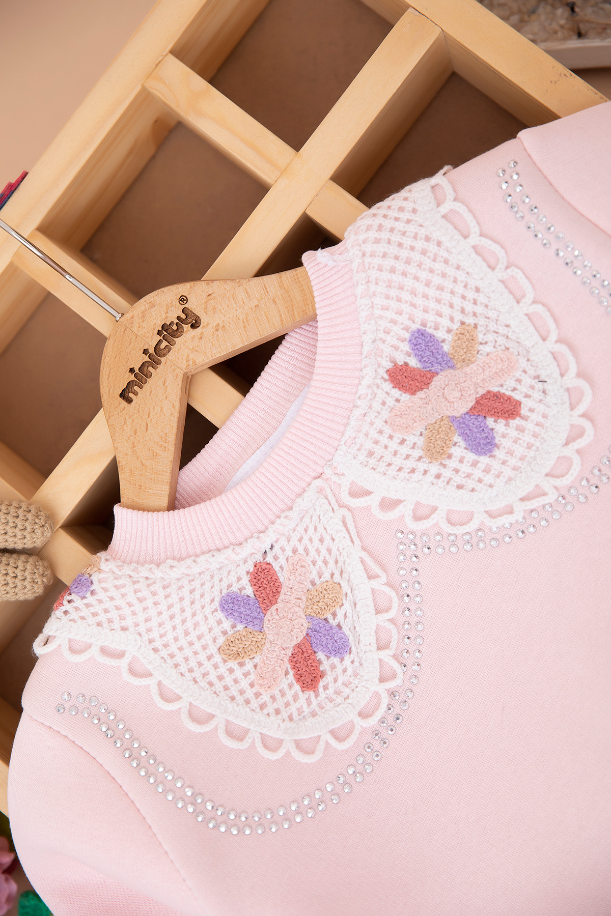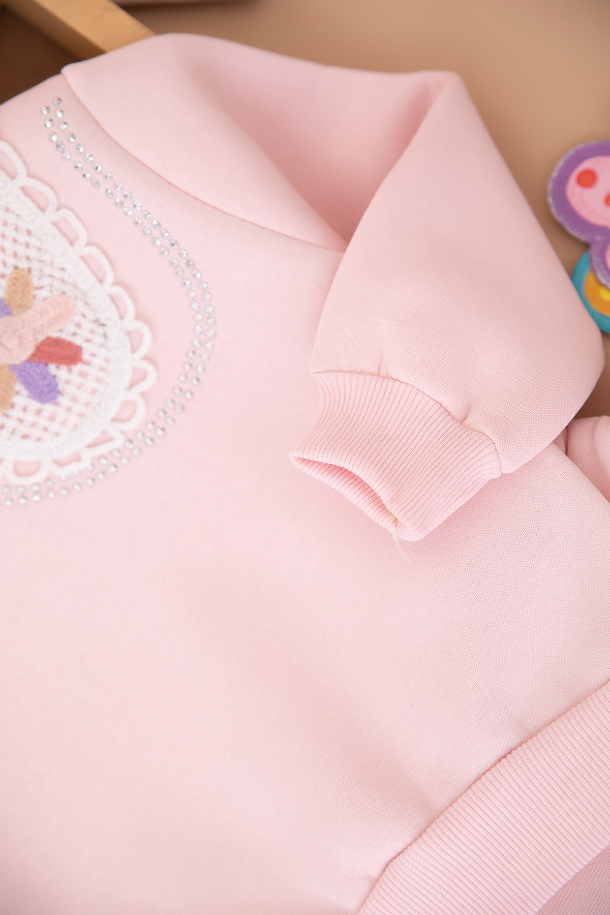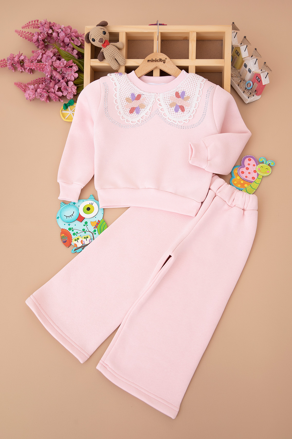 Kız Çocuk Taşlı Dantel Yakalı Üçip Takım (3-10 Yaş)