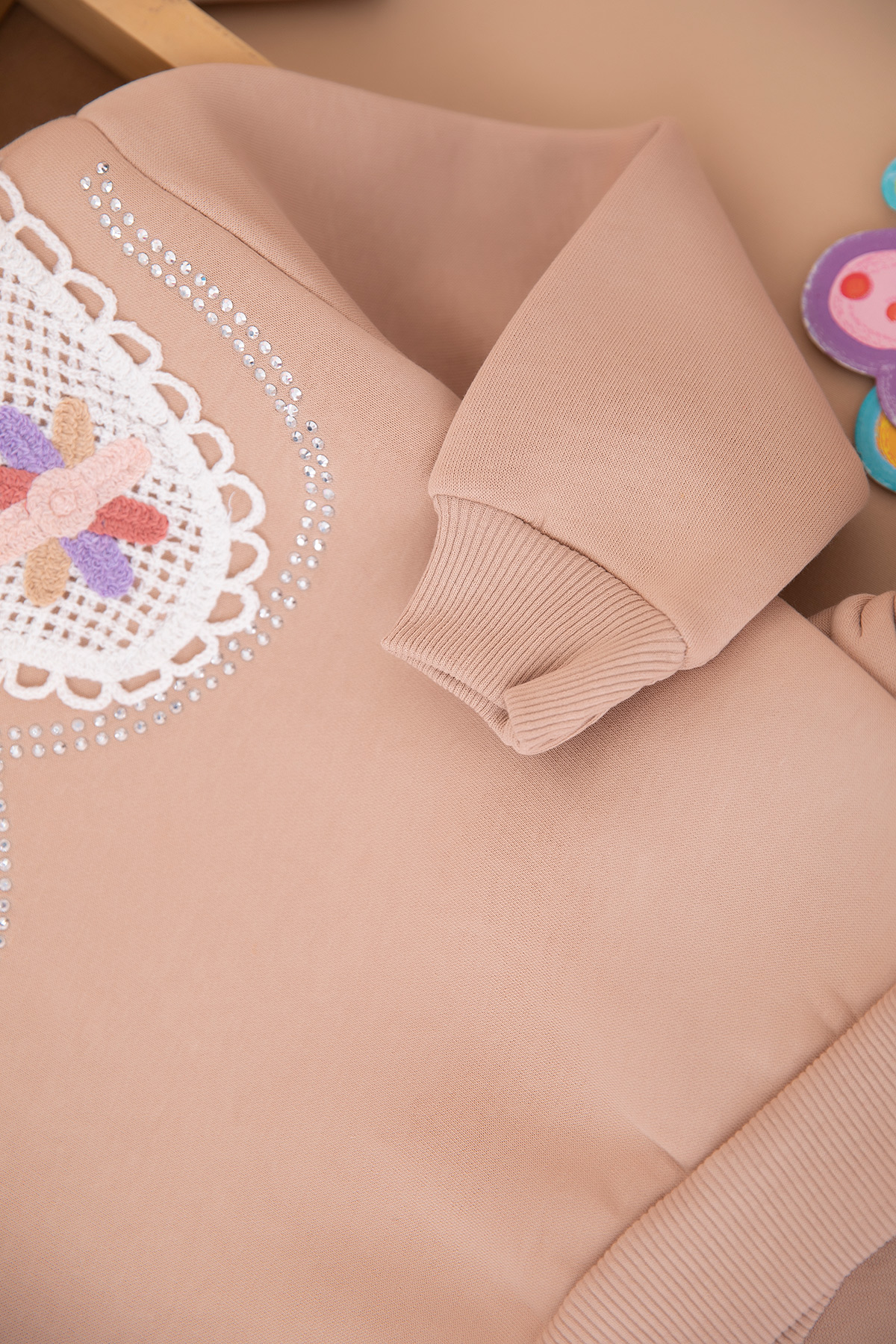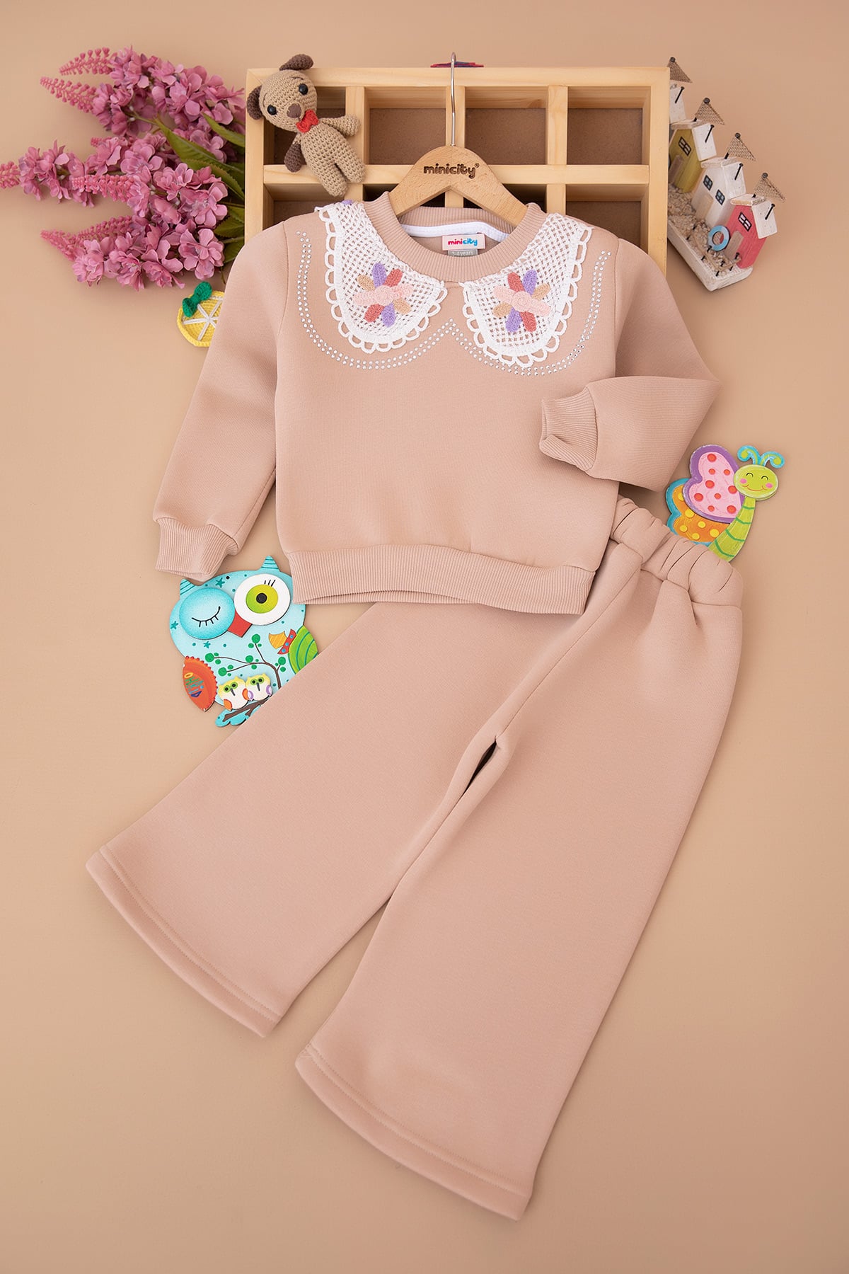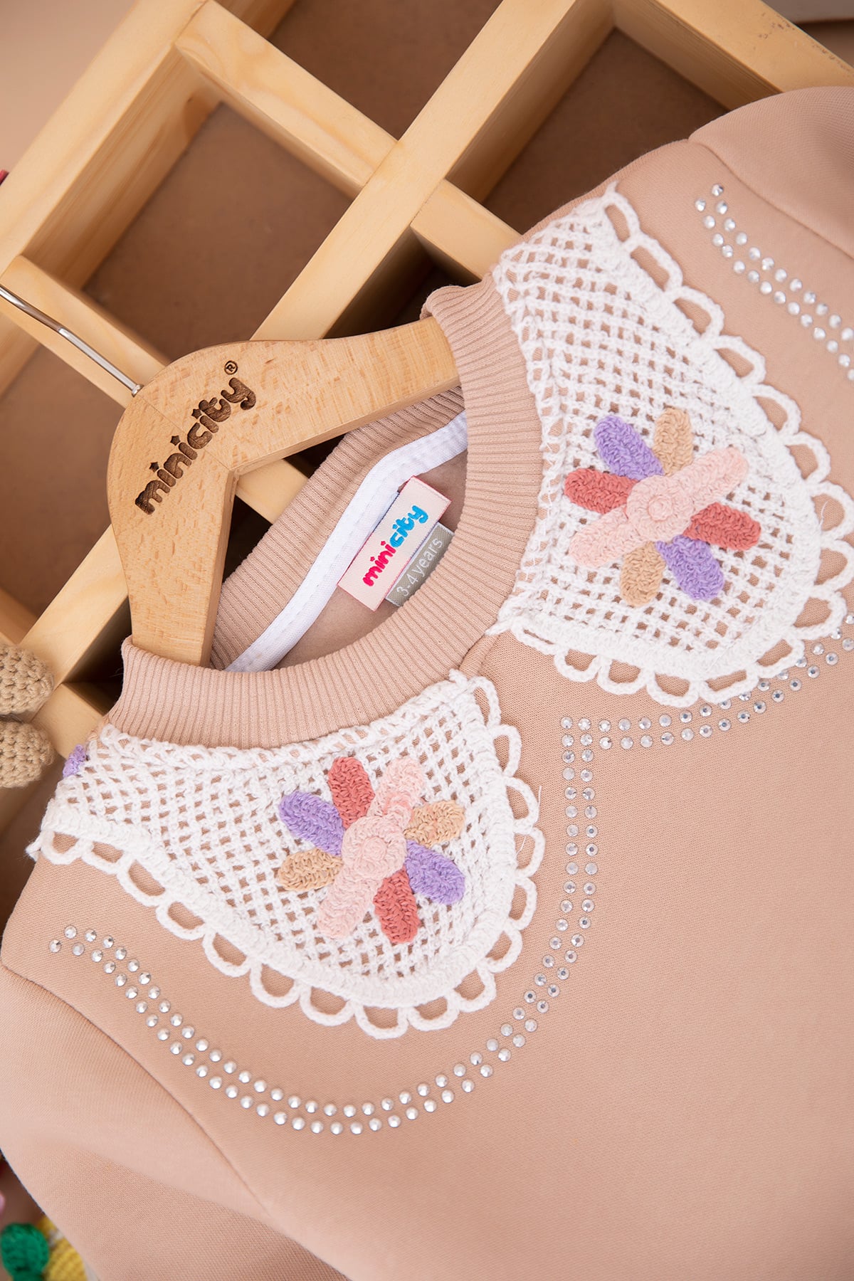 Kız Çocuk Taşlı Dantel Yakalı Üçip Takım (3-10 Yaş)