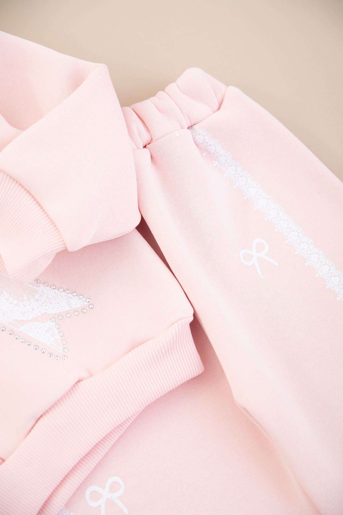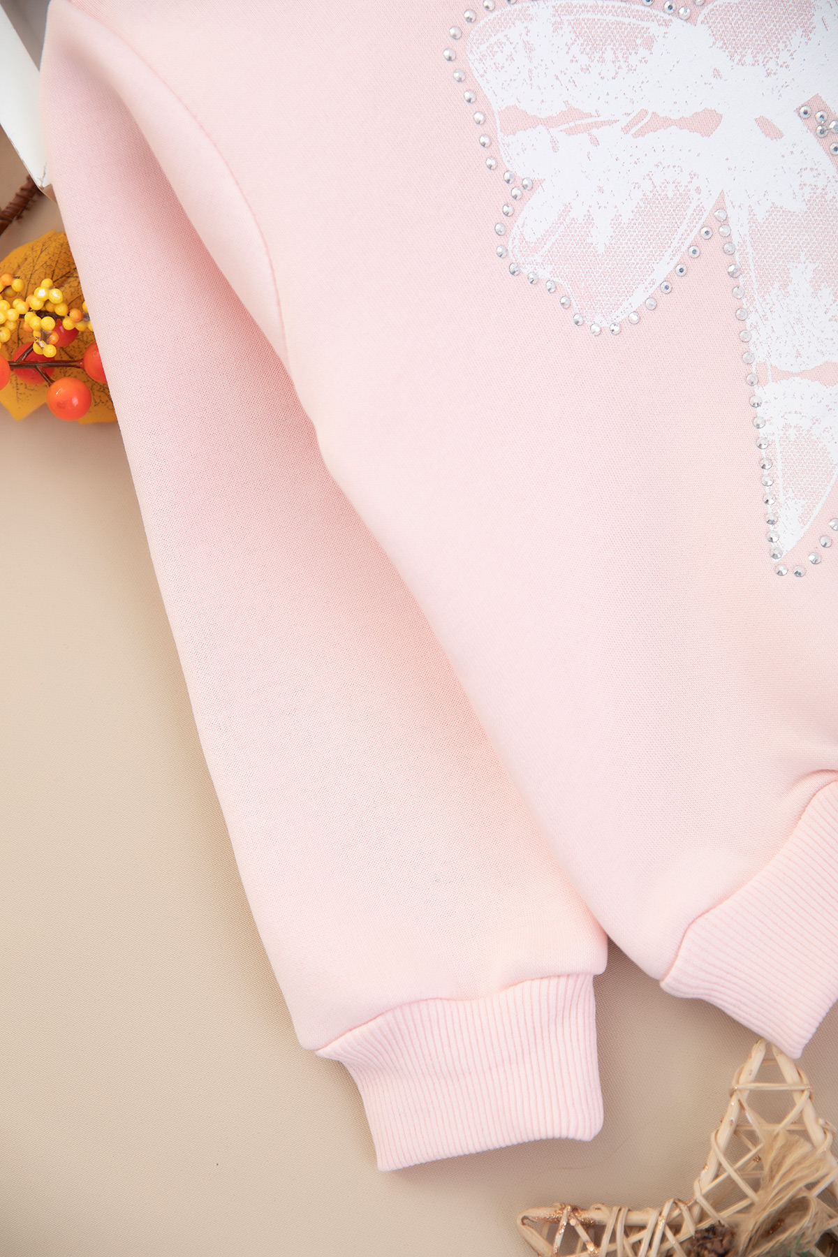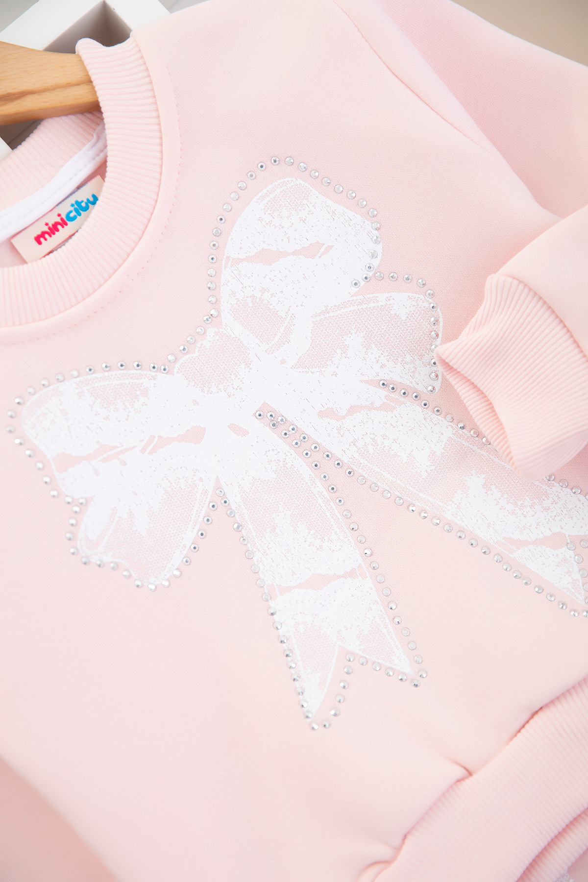 Kız Çocuk Taşlı Fiyonk Baskılı Üçip Takım (3-10 Yaş)