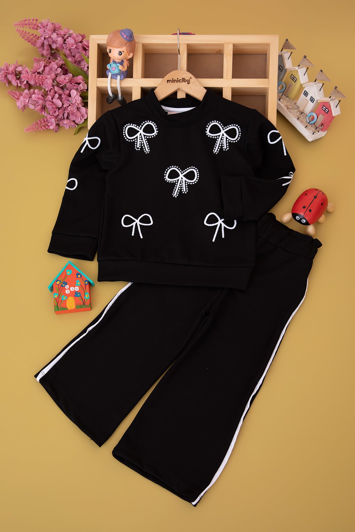Kız Çocuk Taşlı Fiyonk Nakışlı Takım (3-10 Yaş)