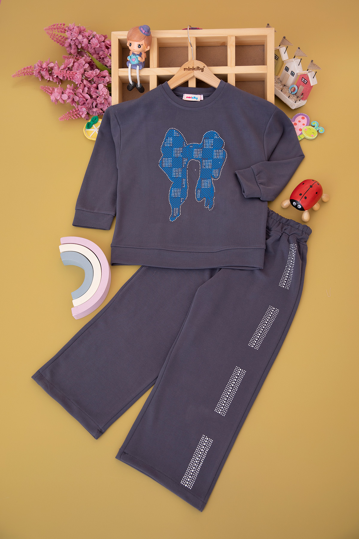 Kız Çocuk Taşlı Fiyonk Nakışlı Takım - 70310 (5-12 Yaş)