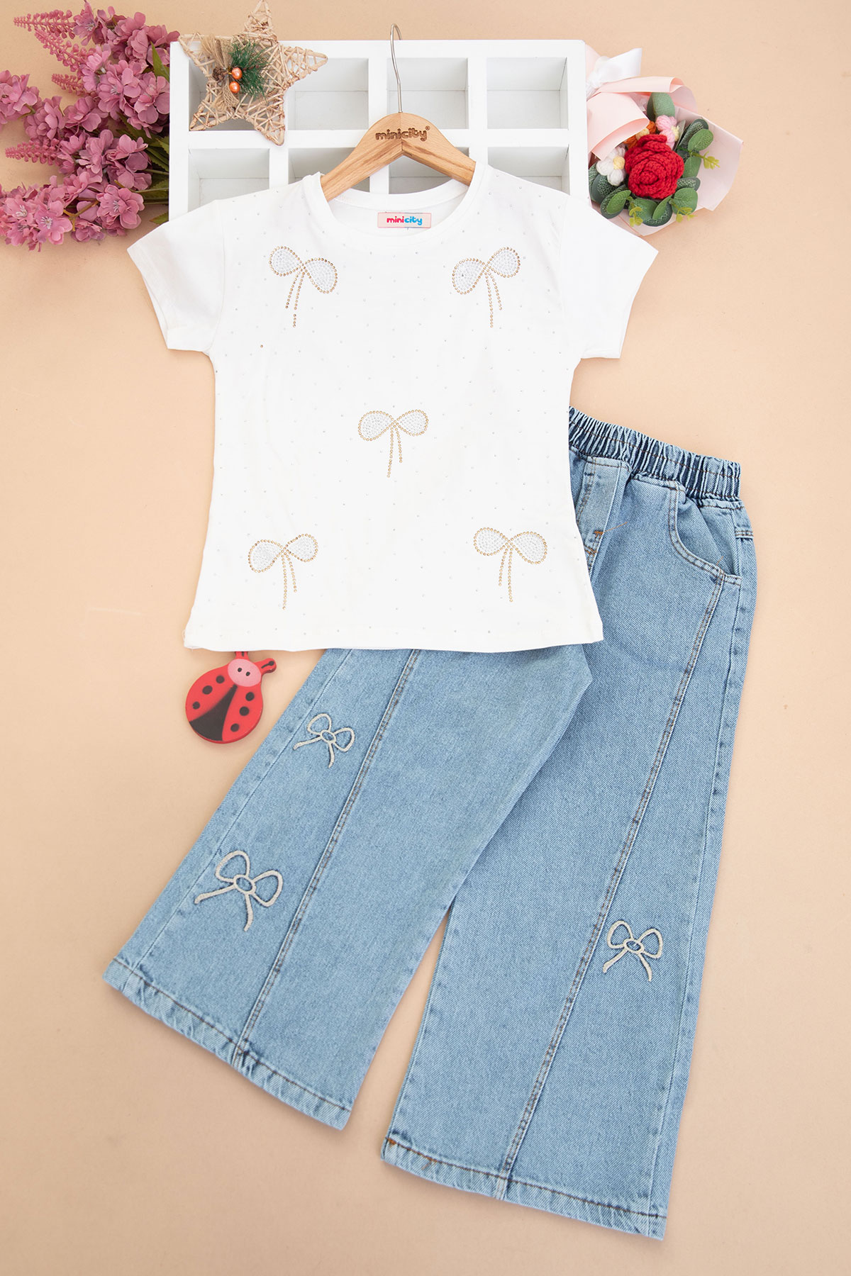 Kız Çocuk Taşlı Fiyonk Pantolon Takım - 1719 (6-10 Yaş)