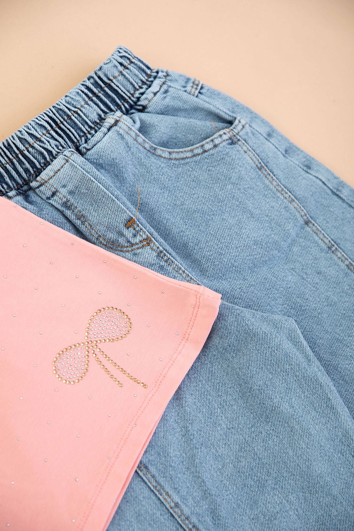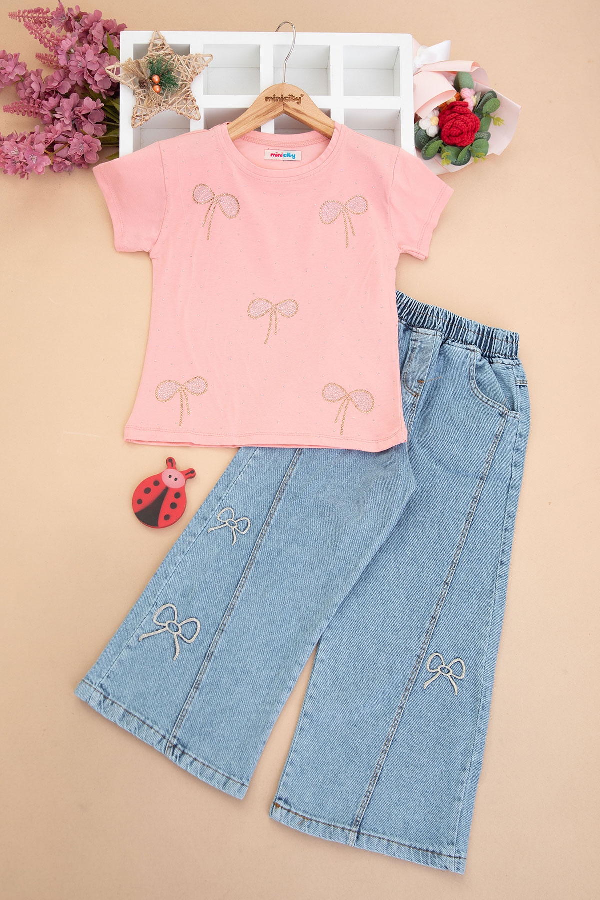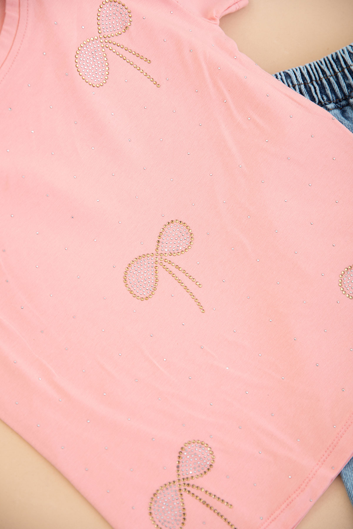 Kız Çocuk Taşlı Fiyonk Pantolon Takım - 1719 (6-10 Yaş)