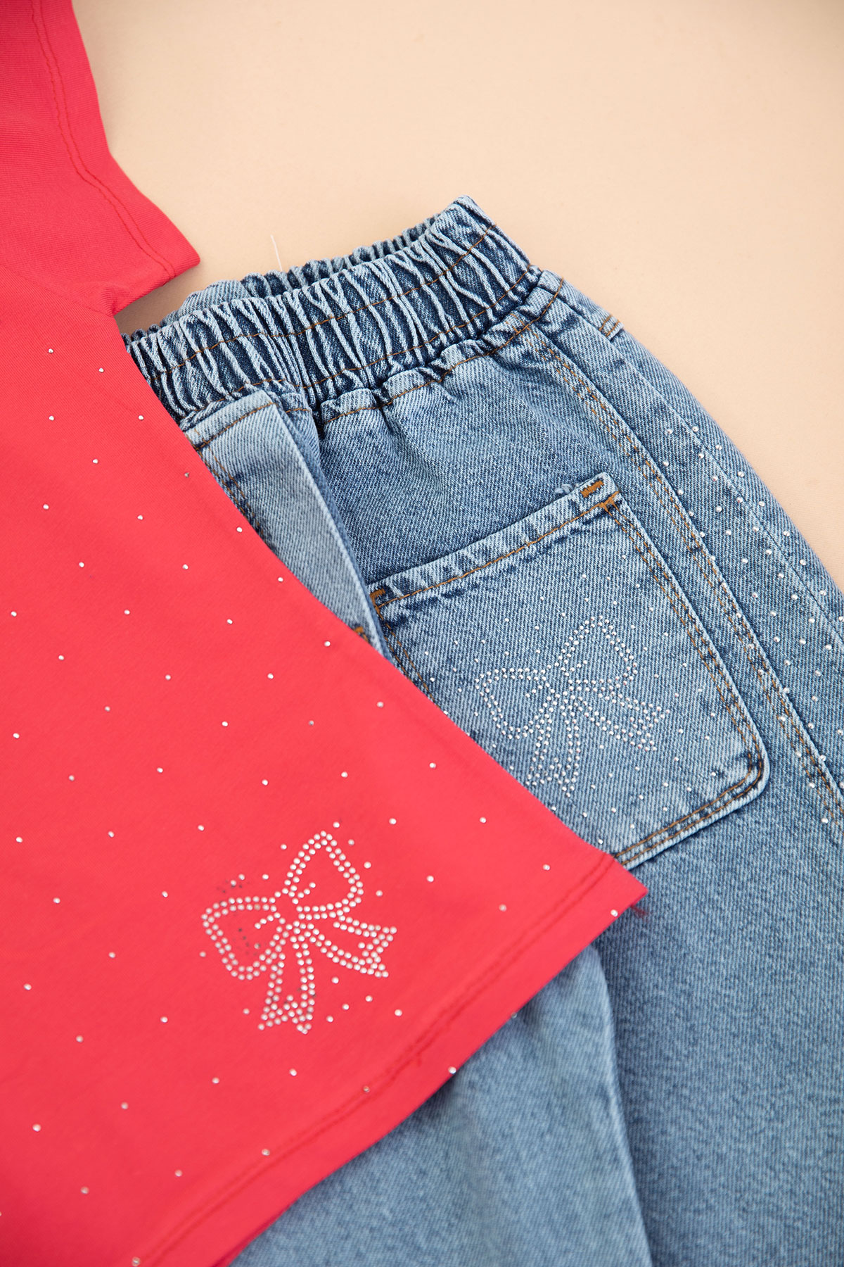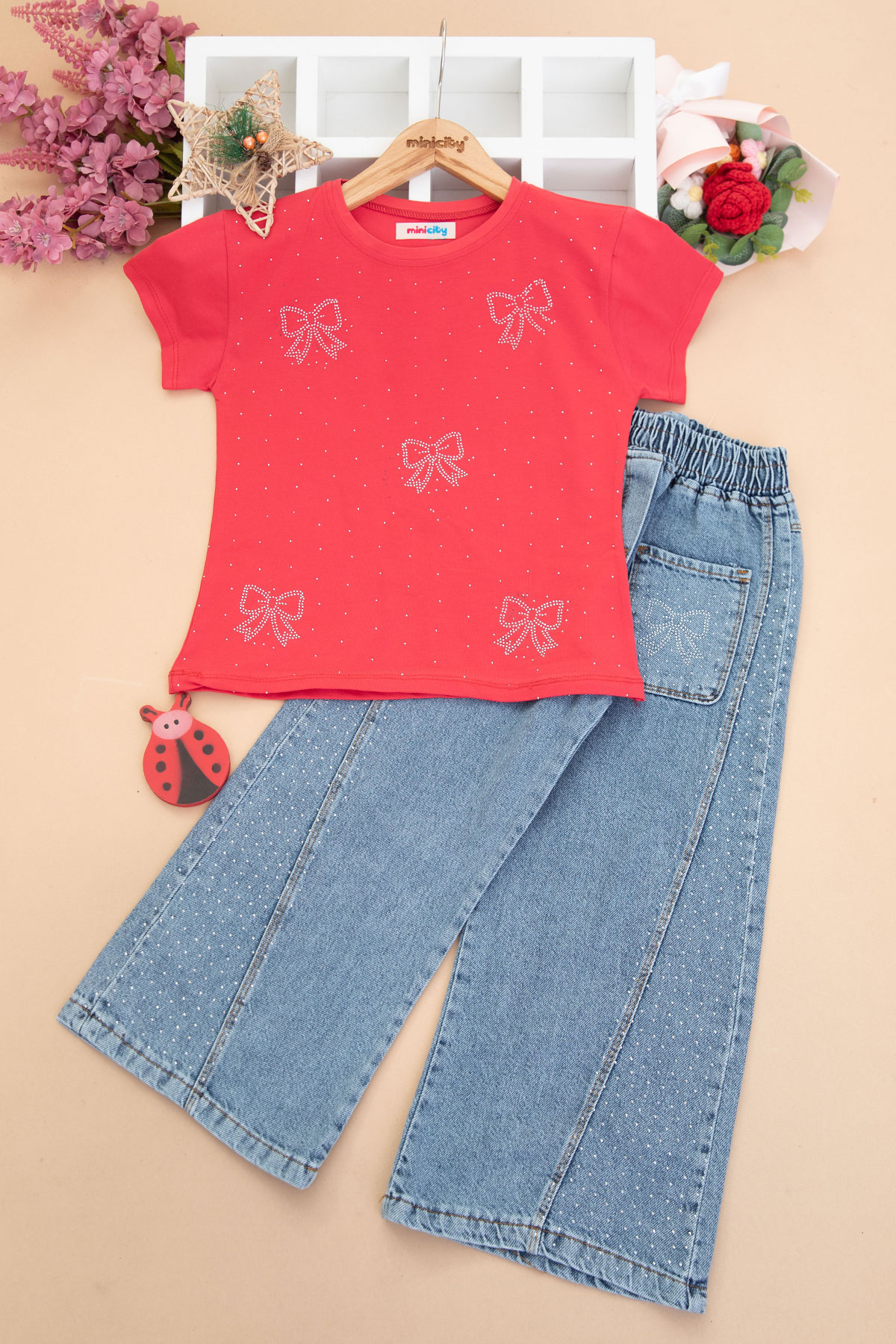 Kız Çocuk Taşlı Fiyonk Takım - 1718 (6-10 Yaş)