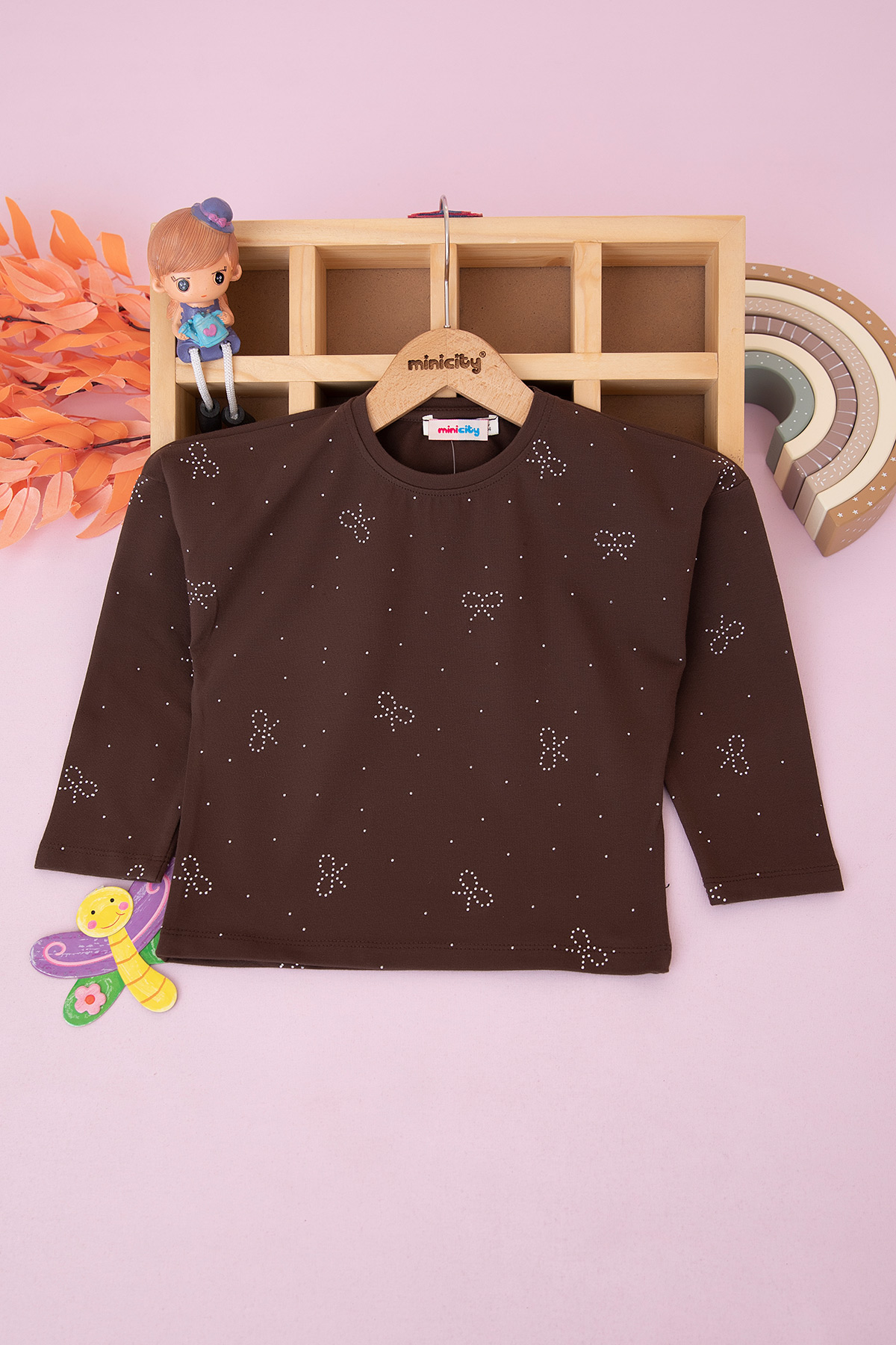 Kız Çocuk Taşlı Fiyonklu Body - 1828-1 (4-12 Yaş)