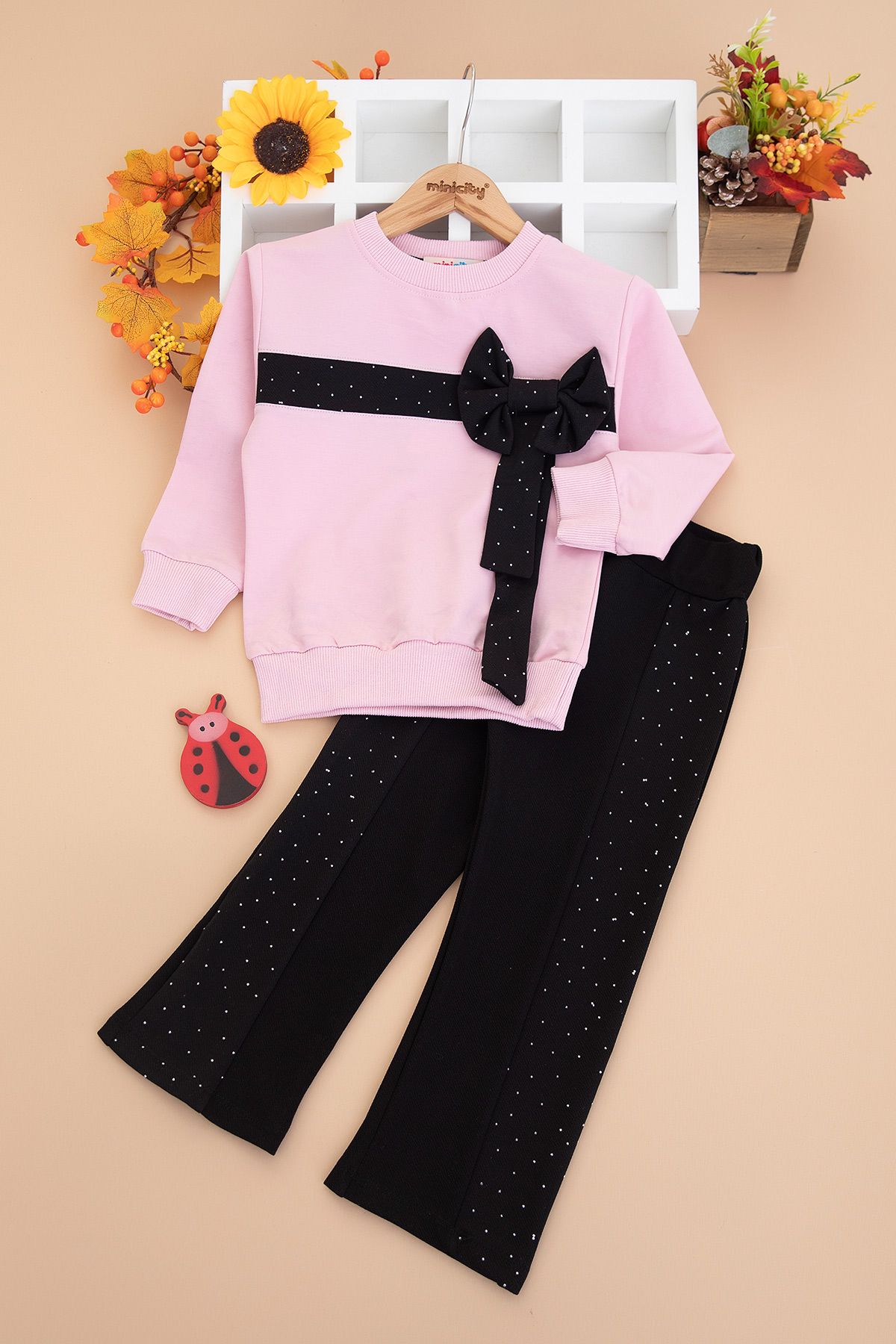 Kız Çocuk Taşlı Fiyonklu Takım (3-10 Yaş)