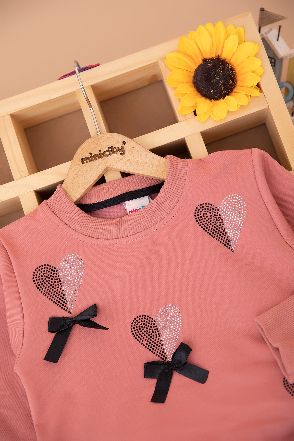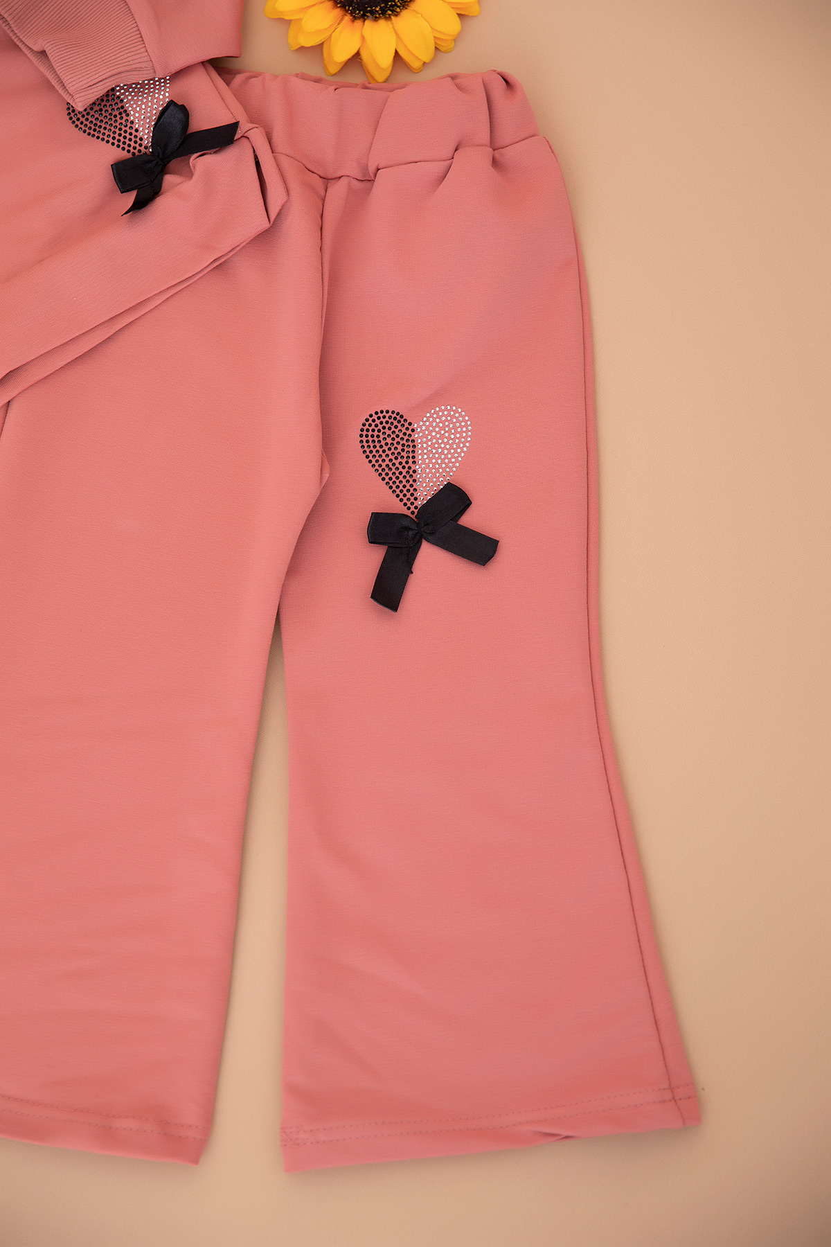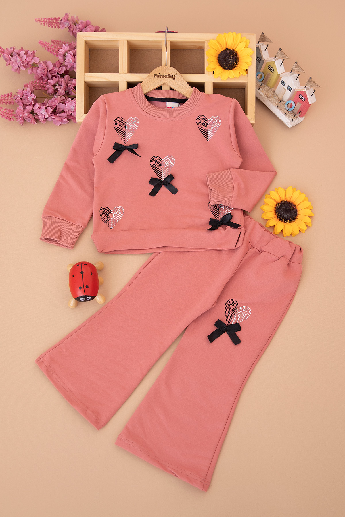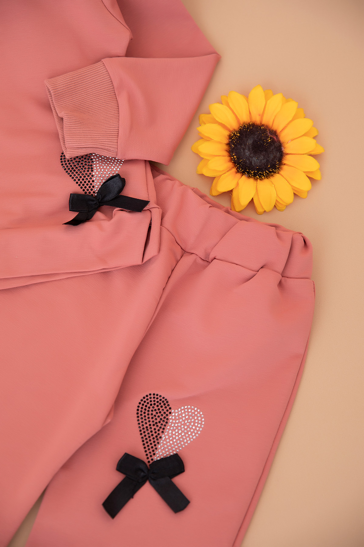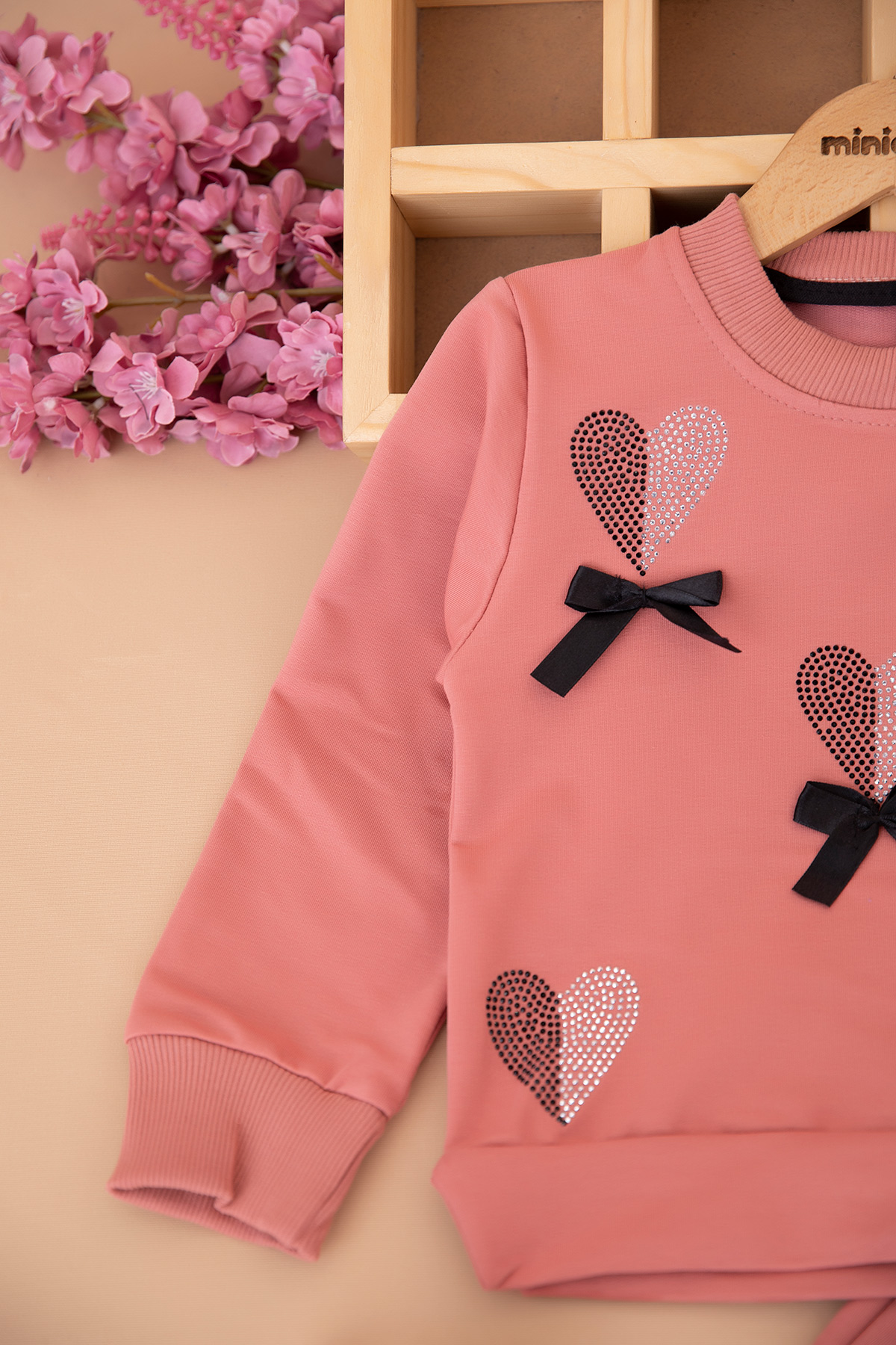 Kız Çocuk Taşlı Kalp Baskılı Takım (2-10 Yaş)