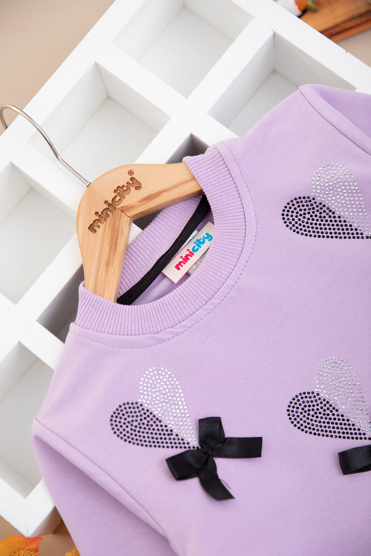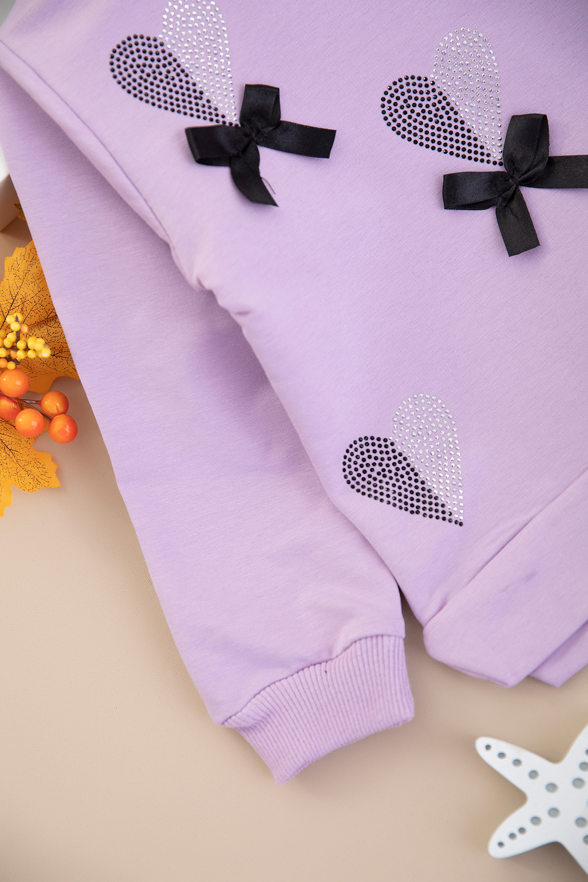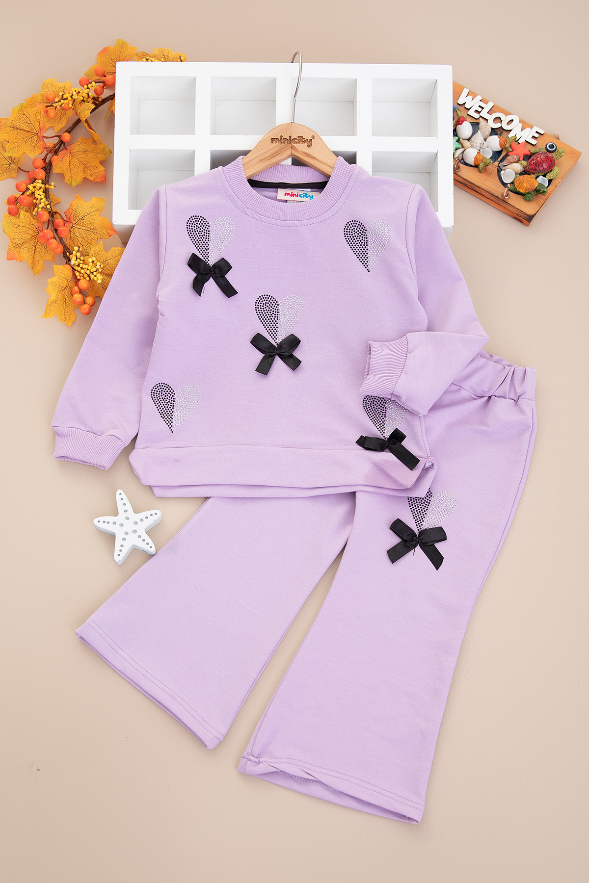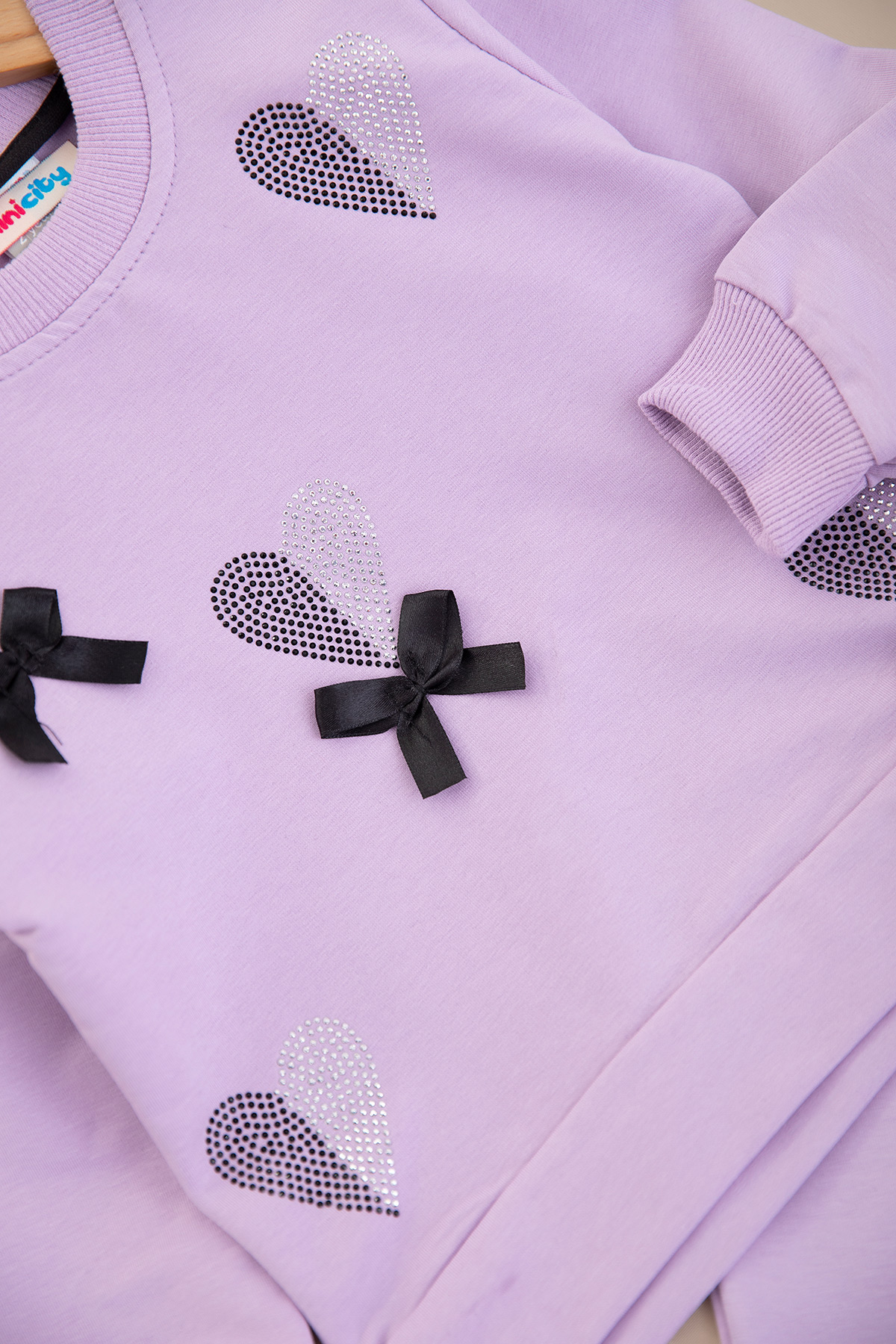 Kız Çocuk Taşlı Kalp Baskılı Takım (2-10 Yaş)