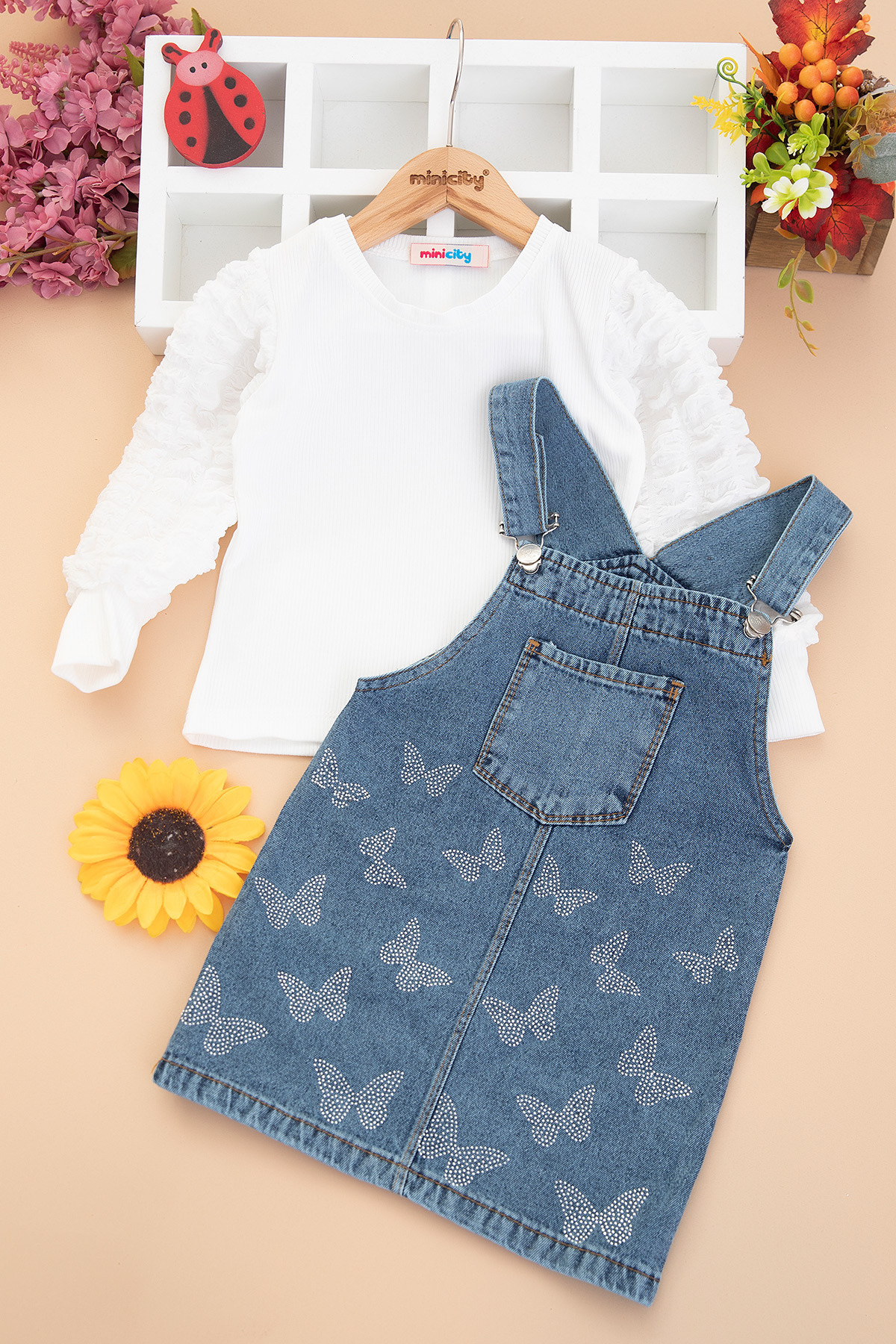 Kız Çocuk Taşlı Kelebek Badili Kot Jile - 2692 (3-7 Yaş)
