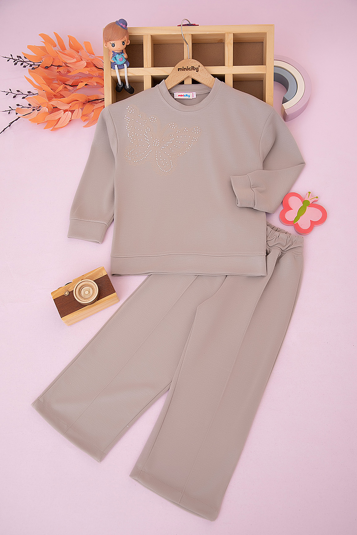 Kız Çocuk Taşlı Kelebek Nakışlı Takım - 70305 (5-12 Yaş)