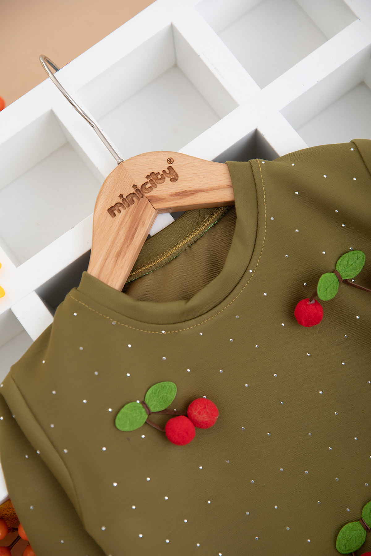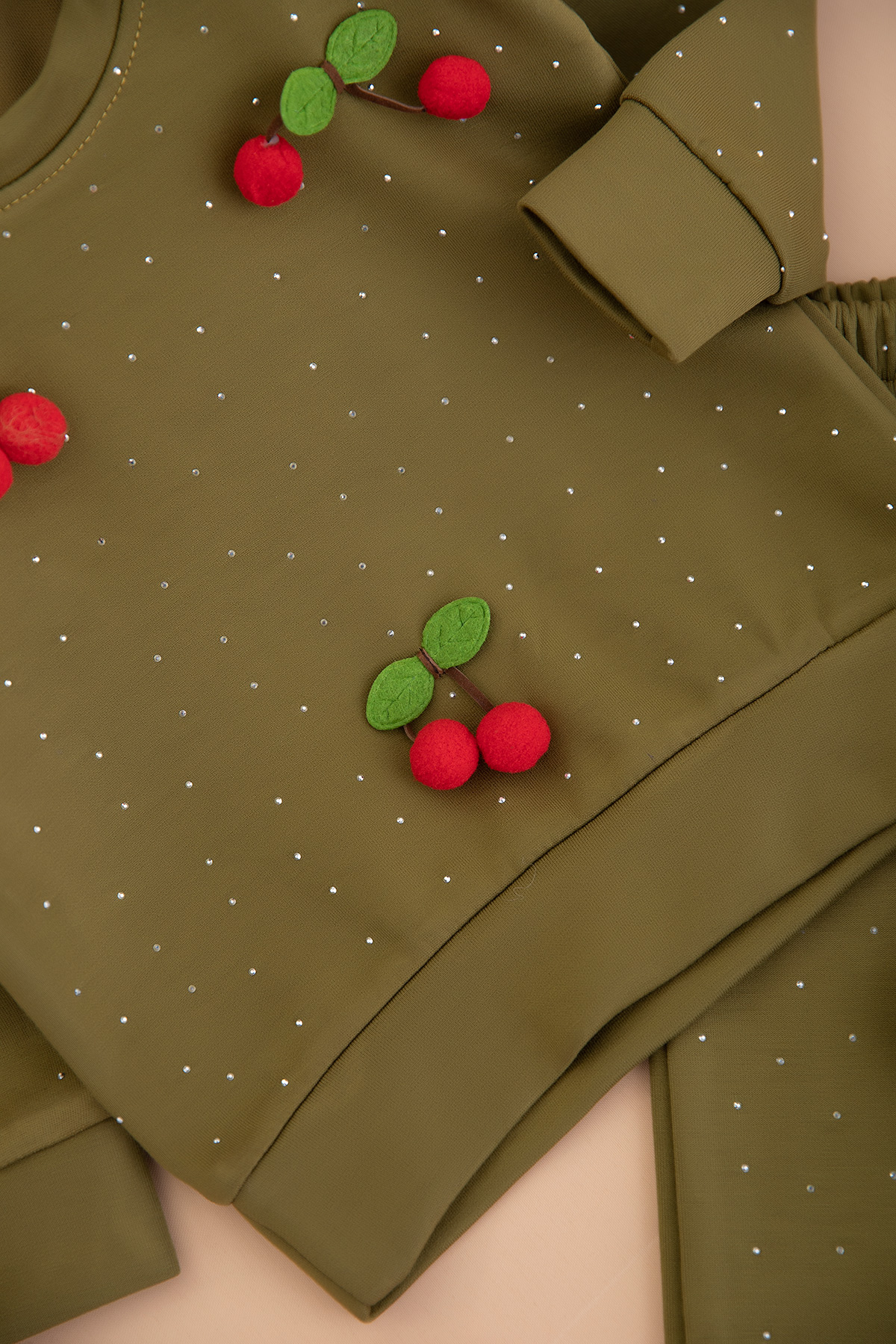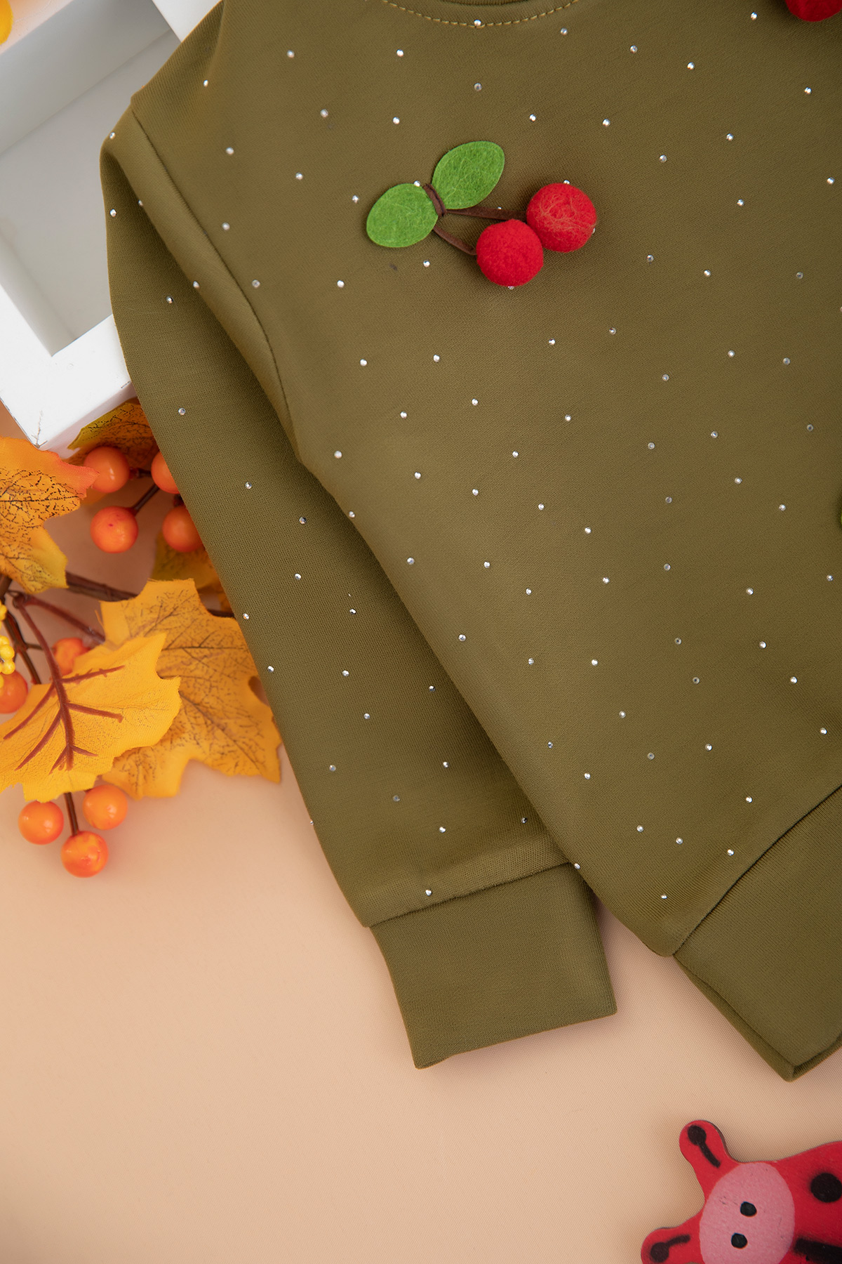 Kız Çocuk Taşlı Kiraz Aksesuarlı Takım (1-4 Yaş)