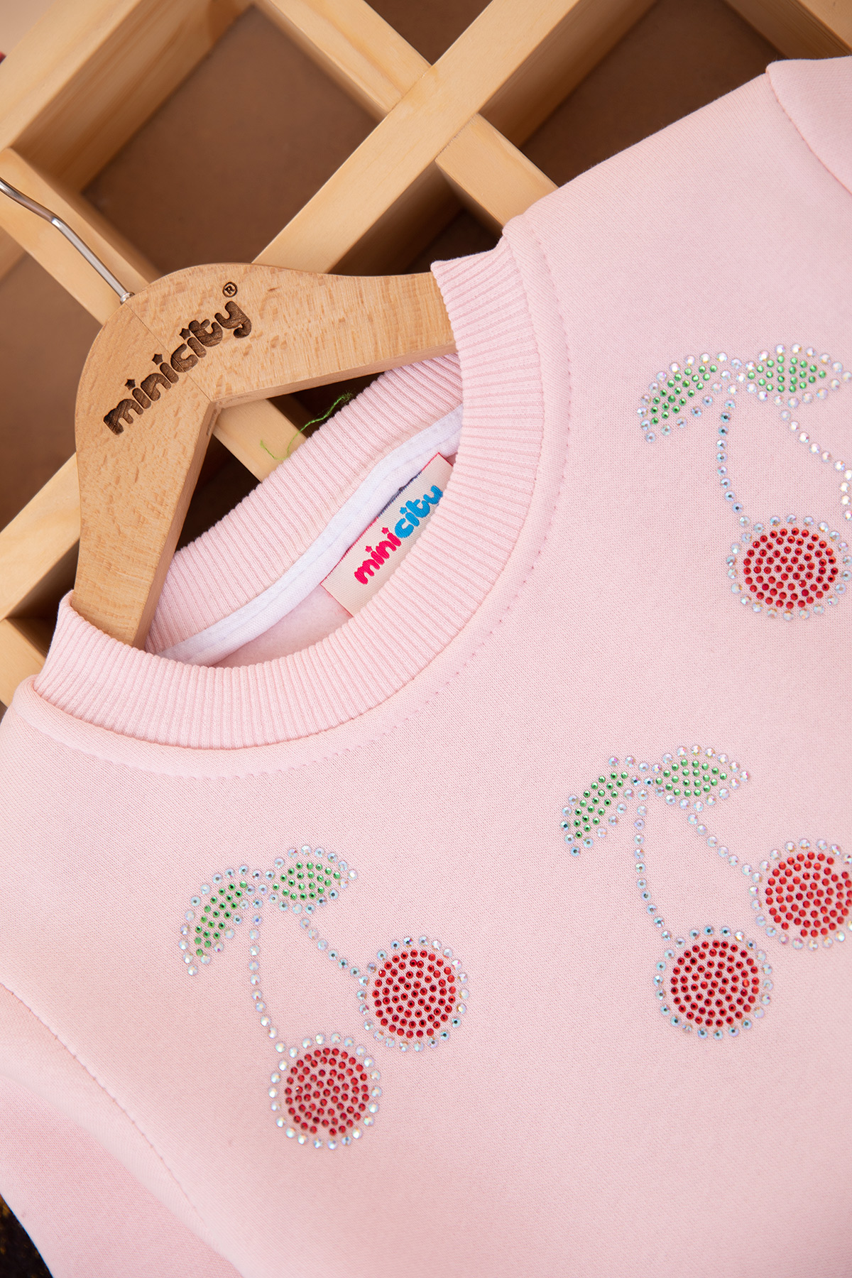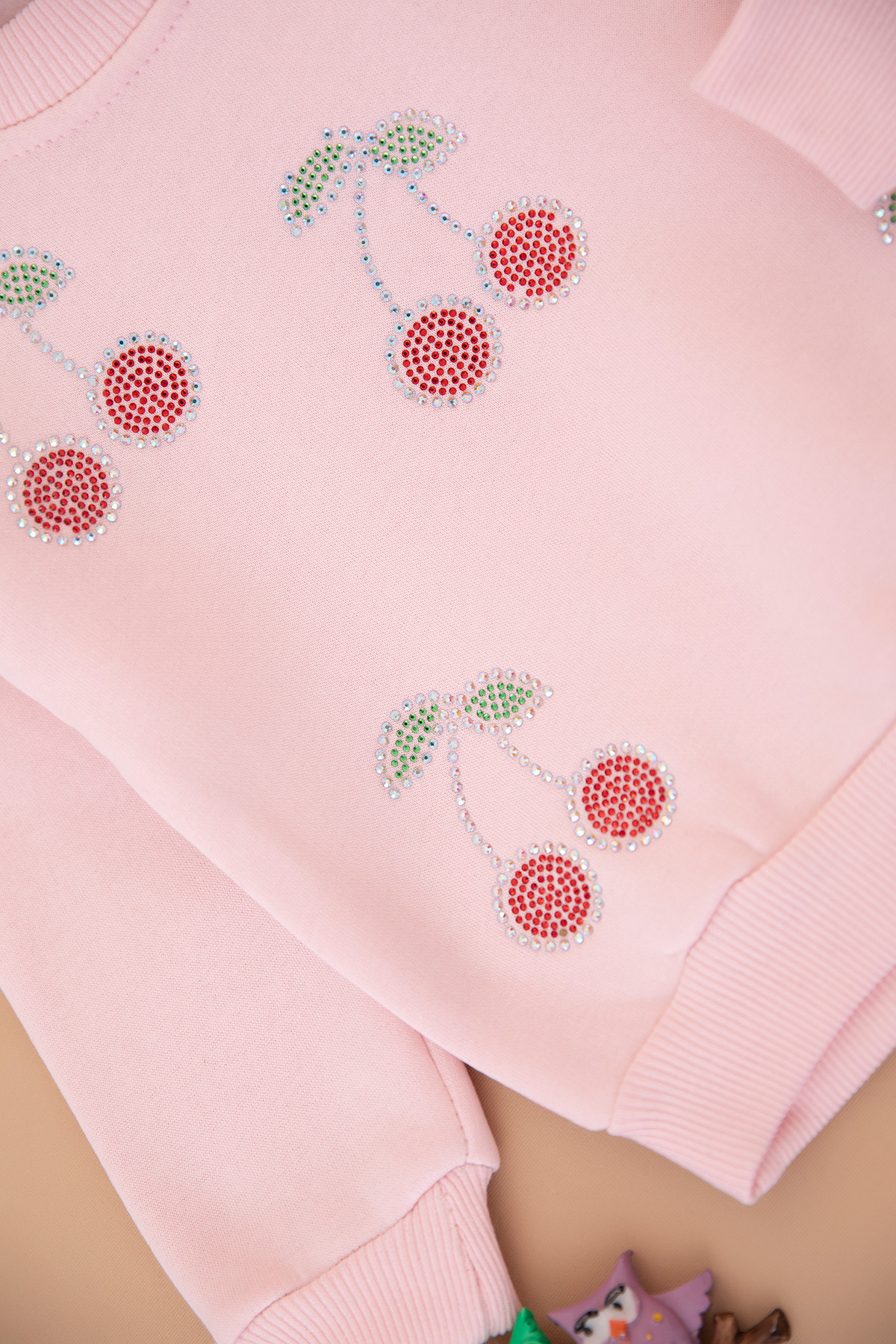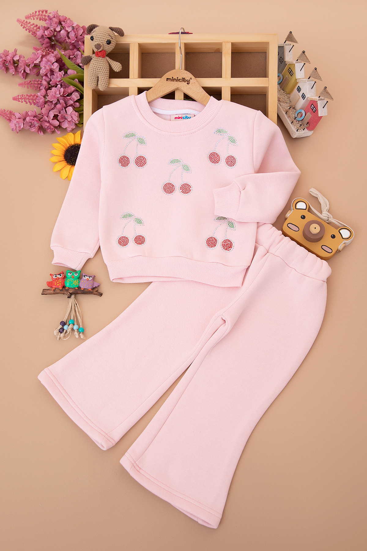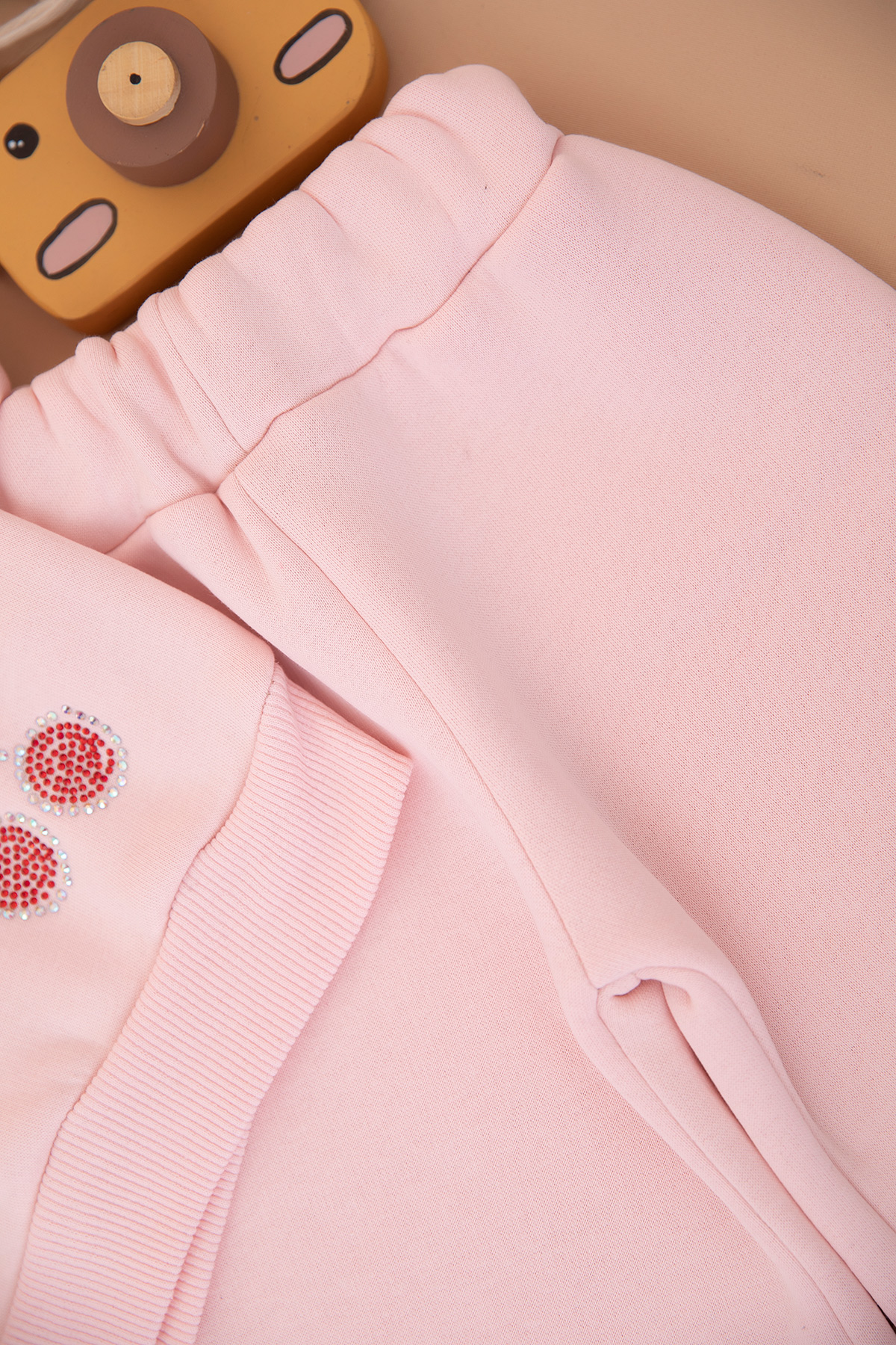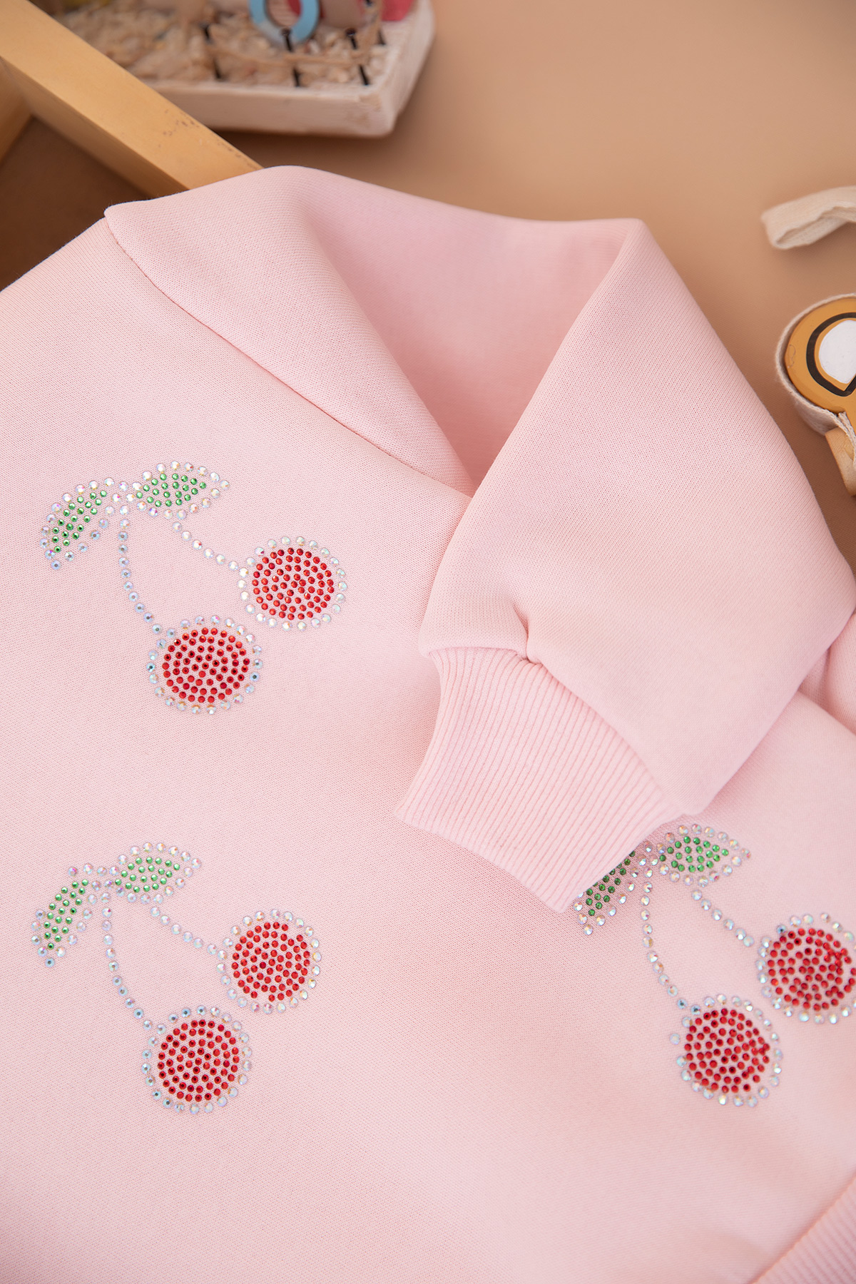 Kız Çocuk Taşlı Kiraz Nakışlıı Üçip Takım (3-10 Yaş)