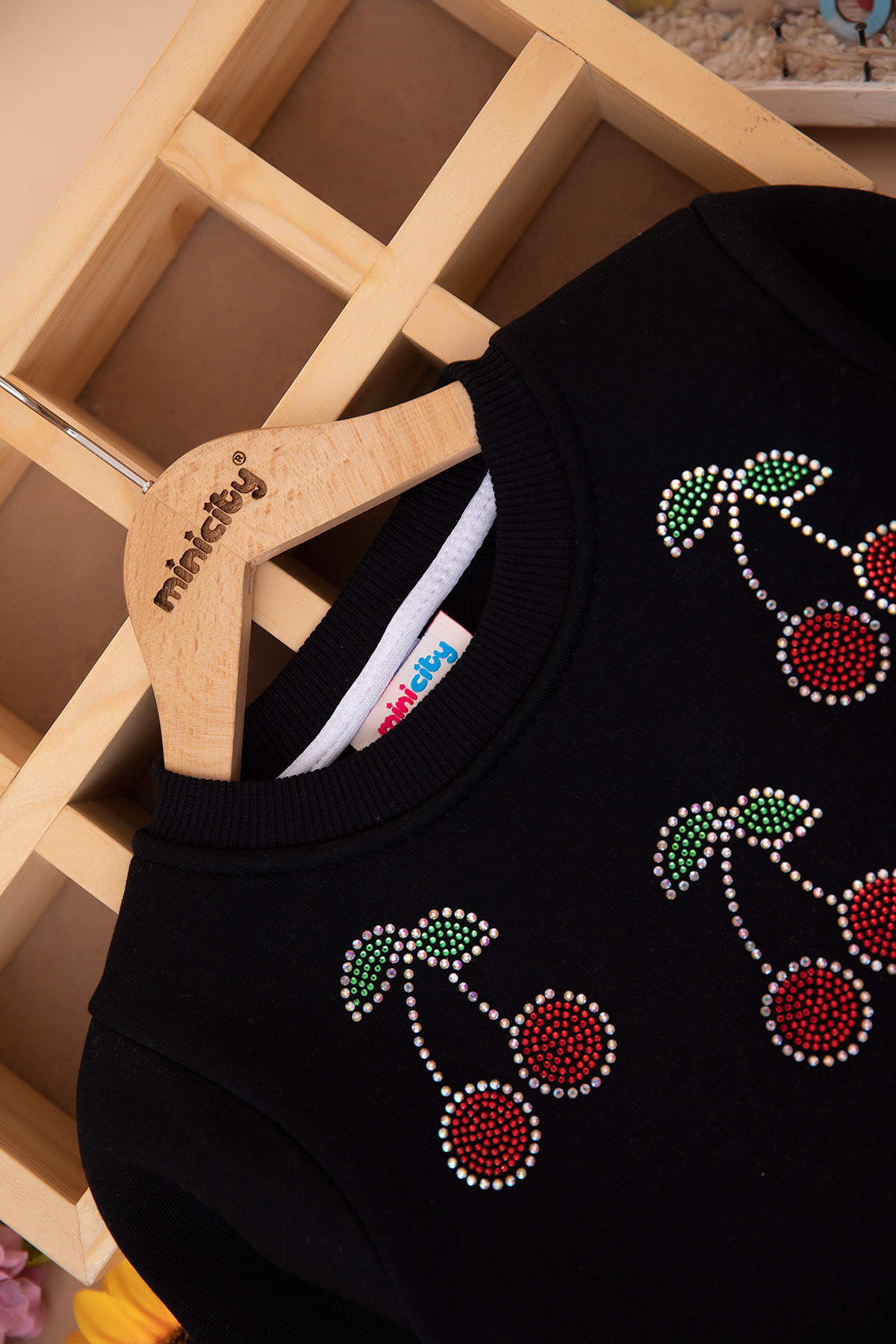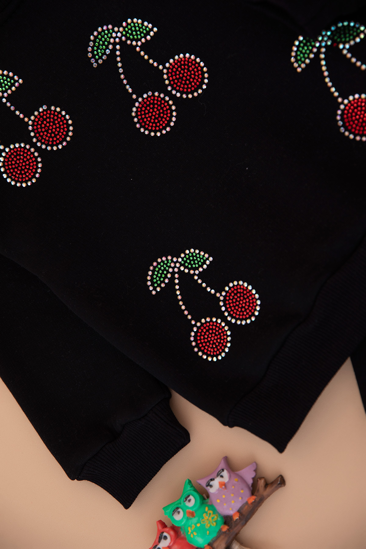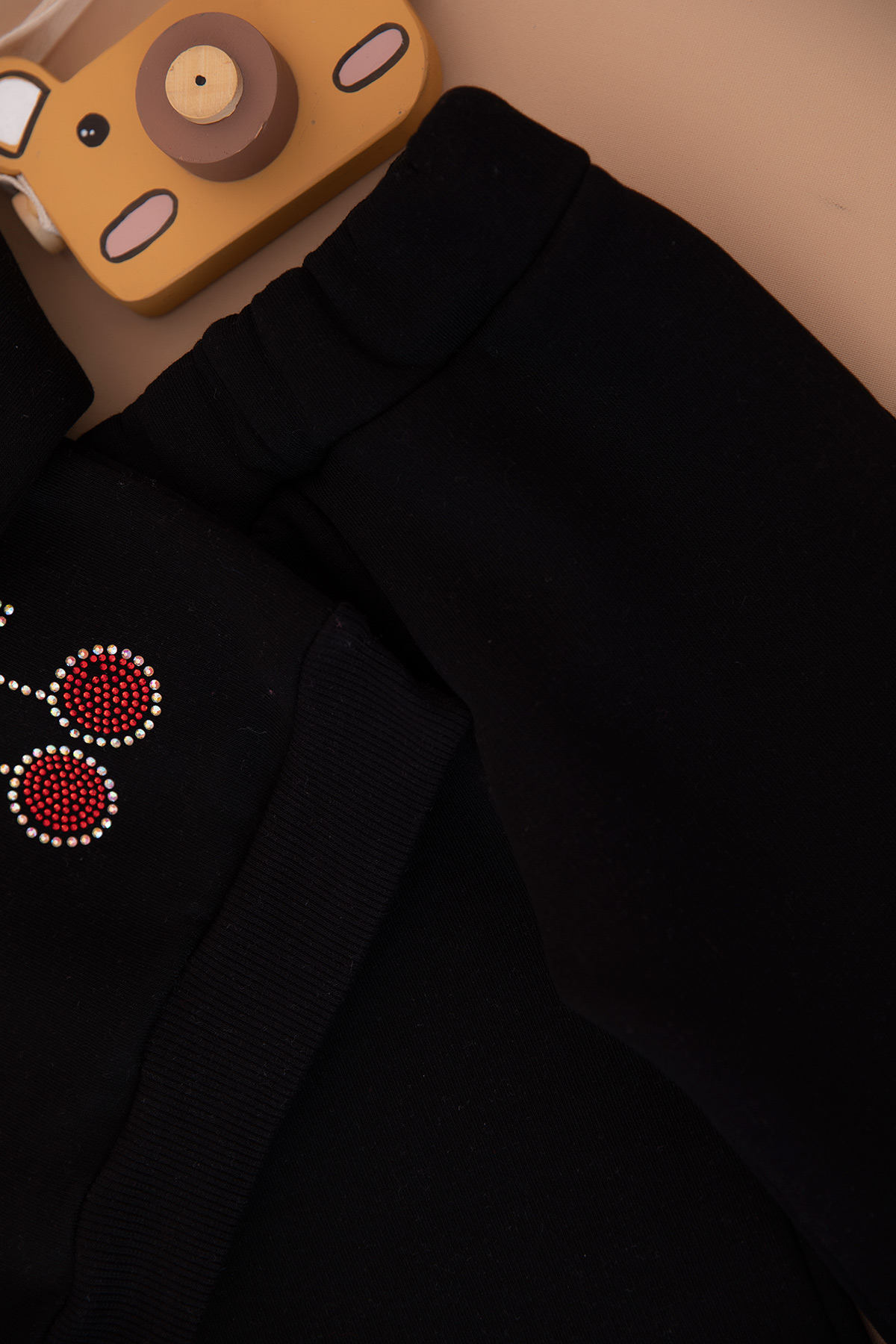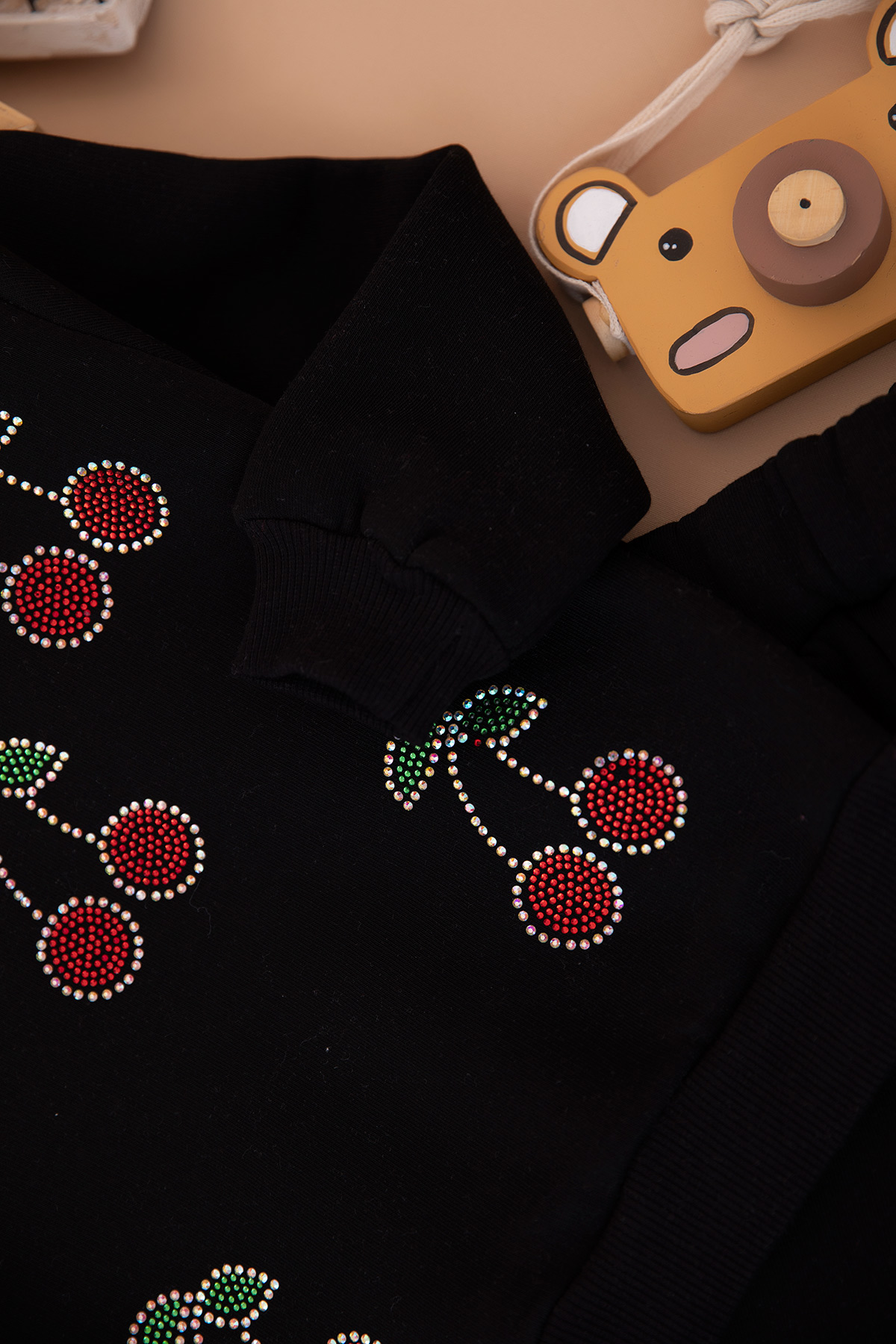Kız Çocuk Taşlı Kiraz Nakışlıı Üçip Takım (3-10 Yaş)