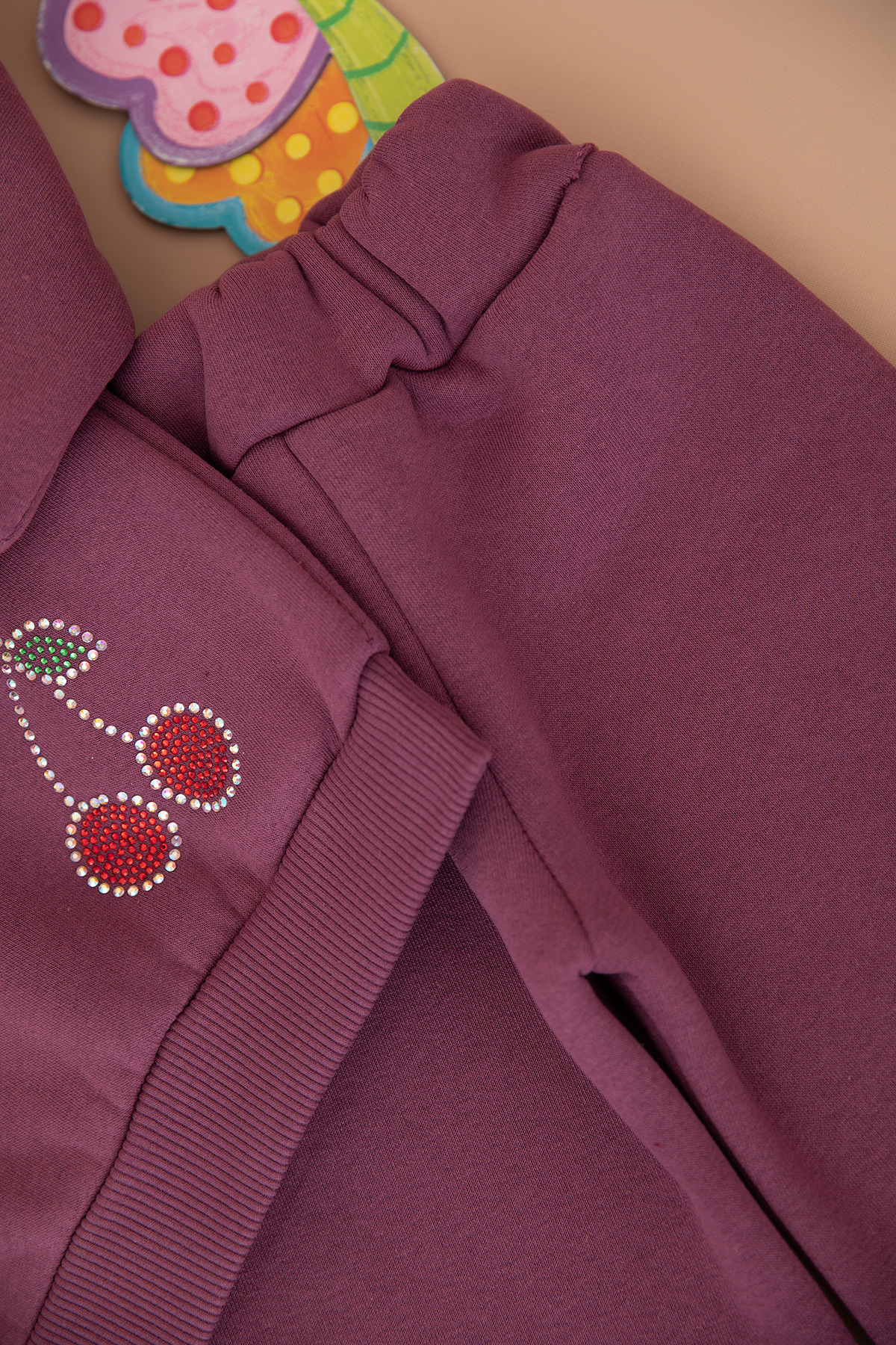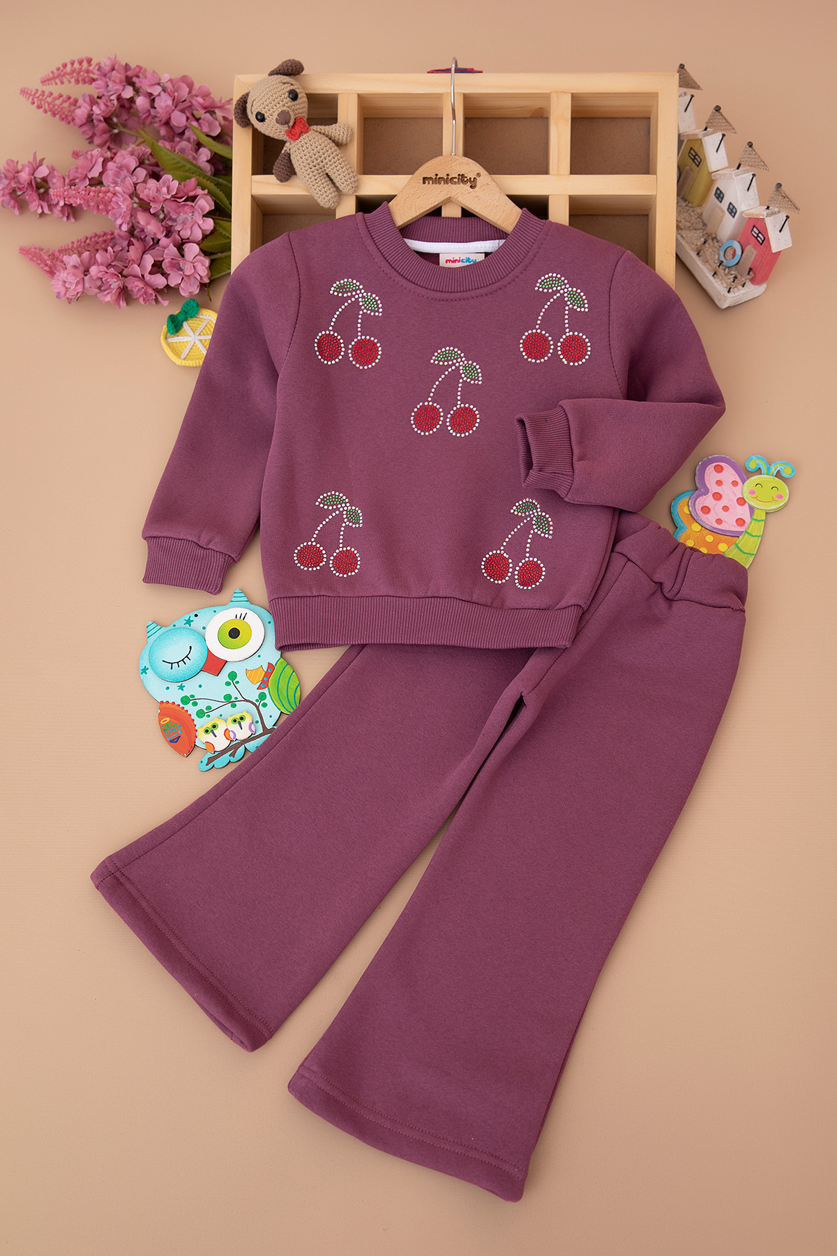 Kız Çocuk Taşlı Kiraz Nakışlıı Üçip Takım (3-10 Yaş)