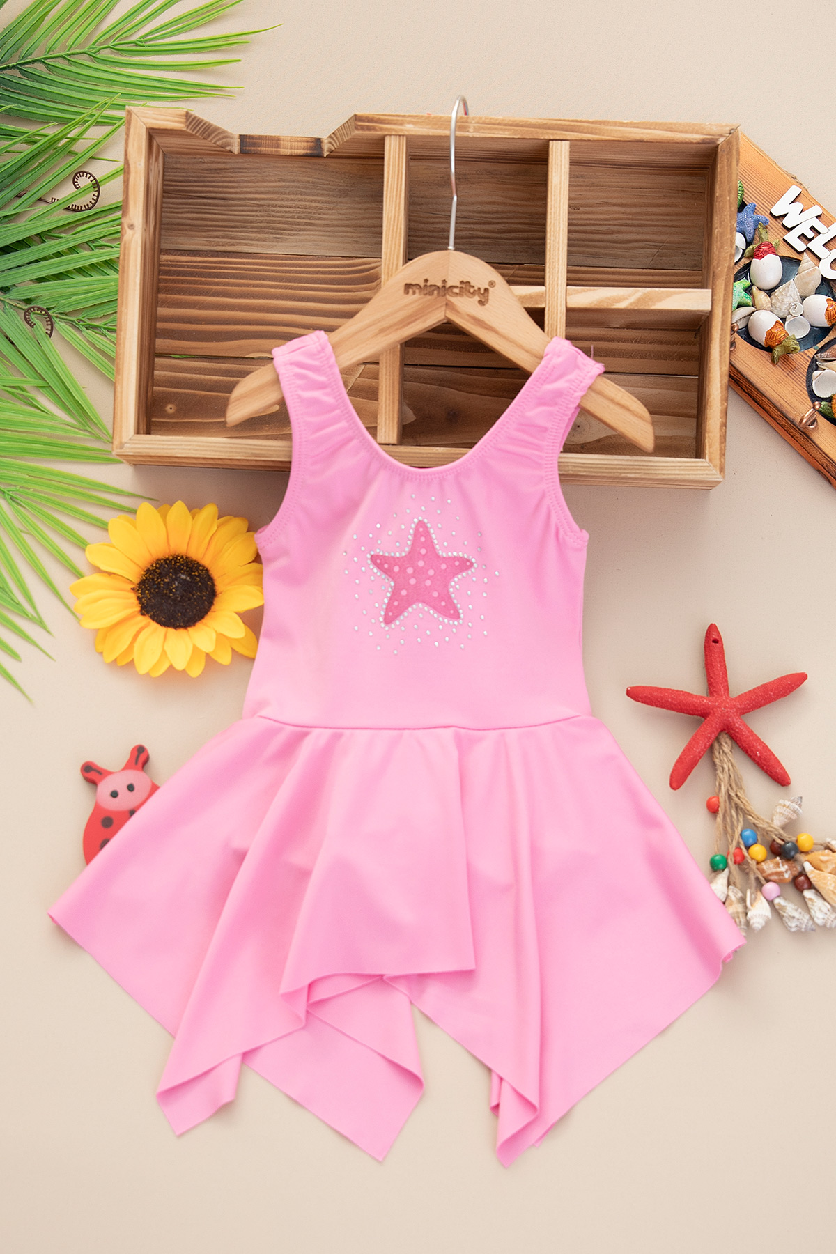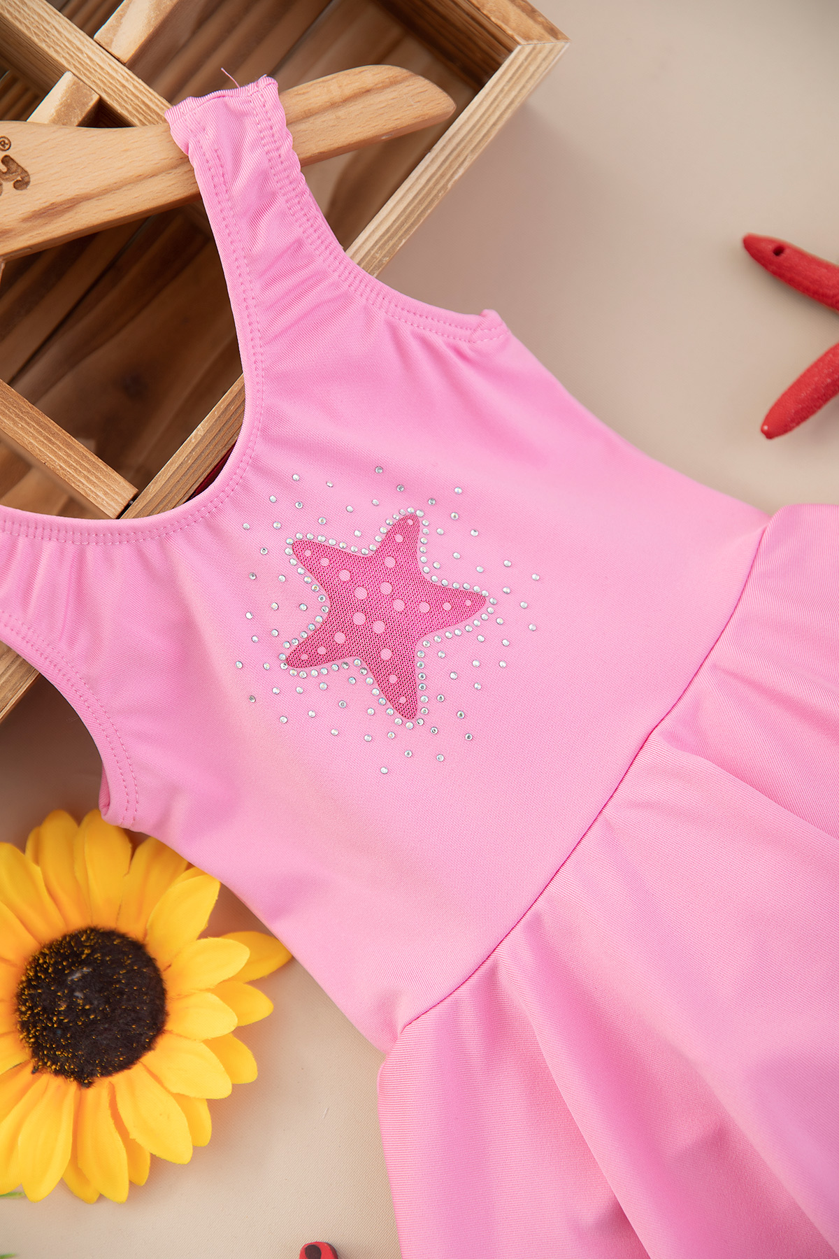 Kız Çocuk Taşlı Yıldız Etekli Mayo - 4301 (1-6 Yaş)