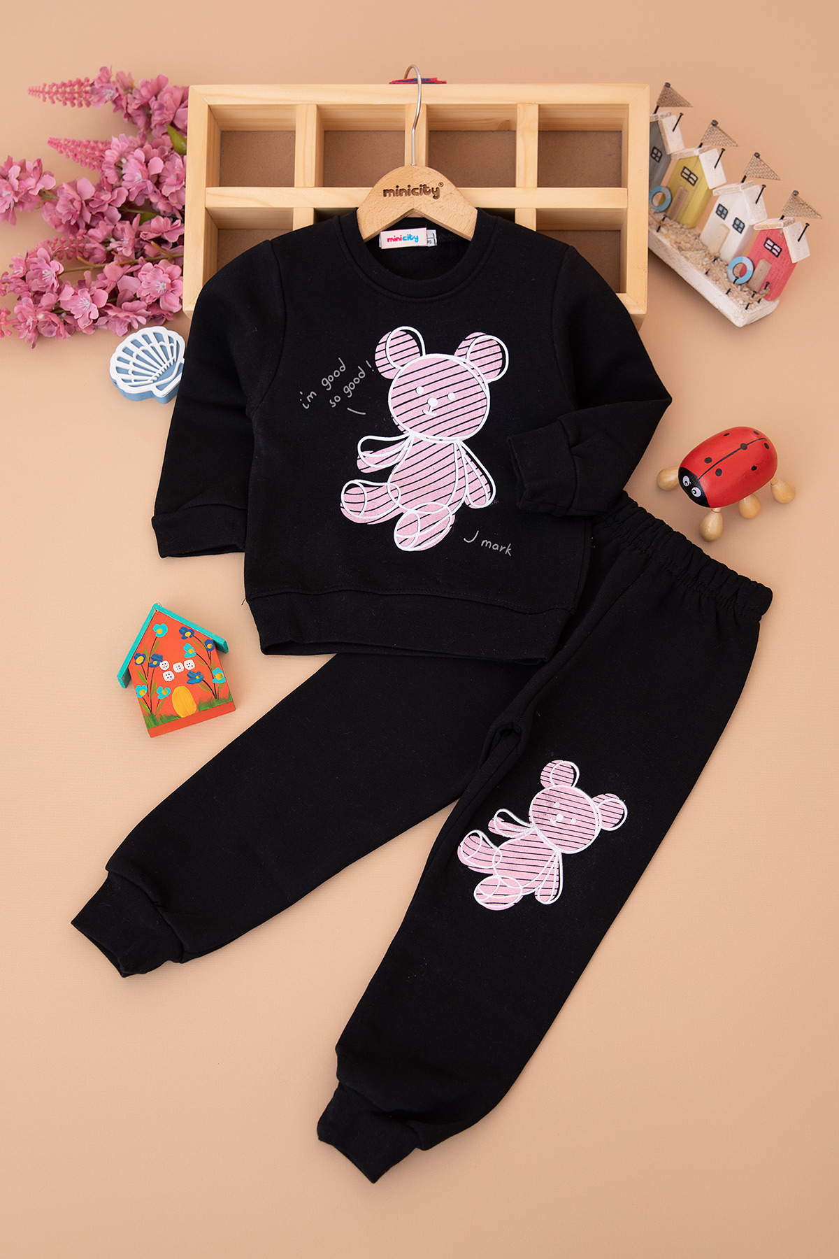 Kız Çocuk Tavşan Baskılı Üçip Takım - 50900 (3-7 Yaş)